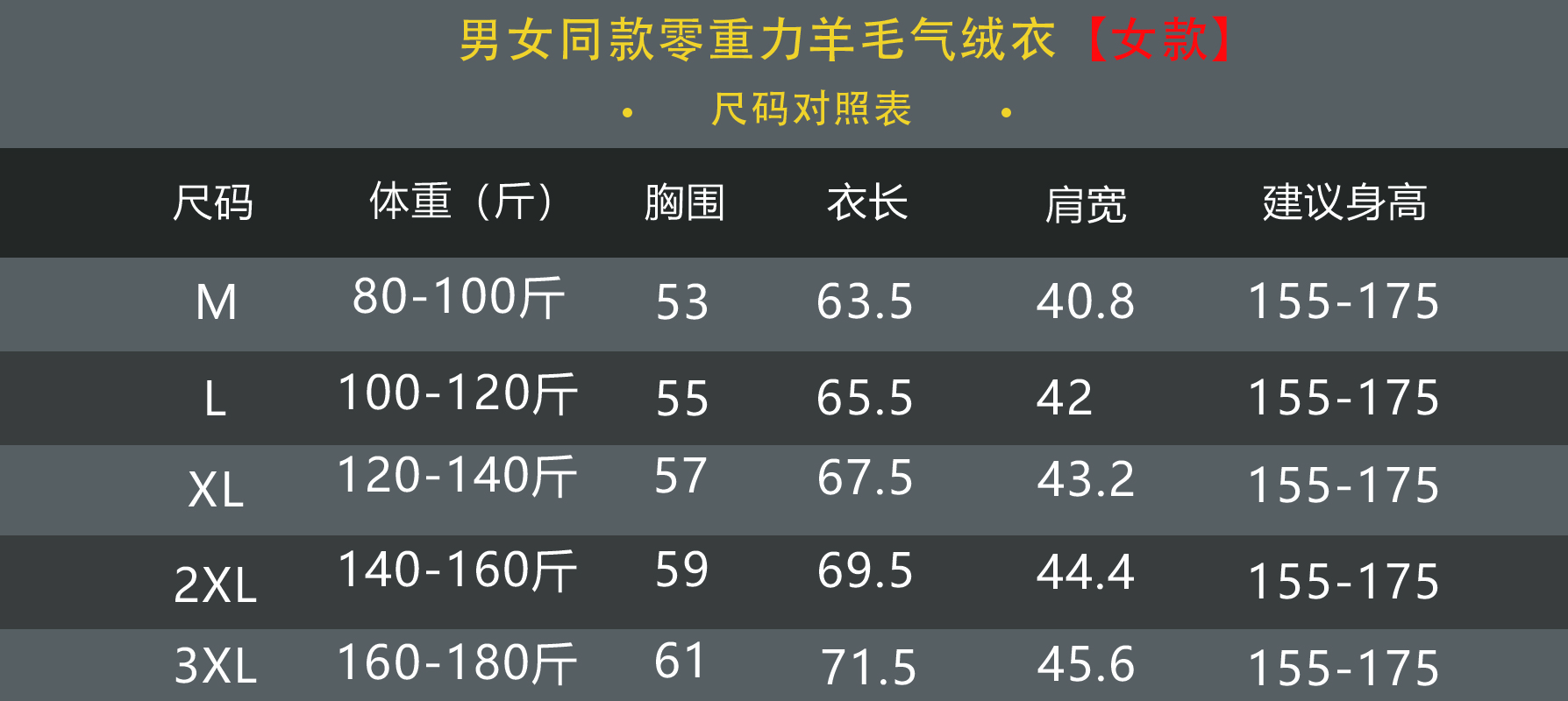 【尺码】女款:M 80-100 L 100-120 XL 120-140 2XL 140-160 3XL 160-180