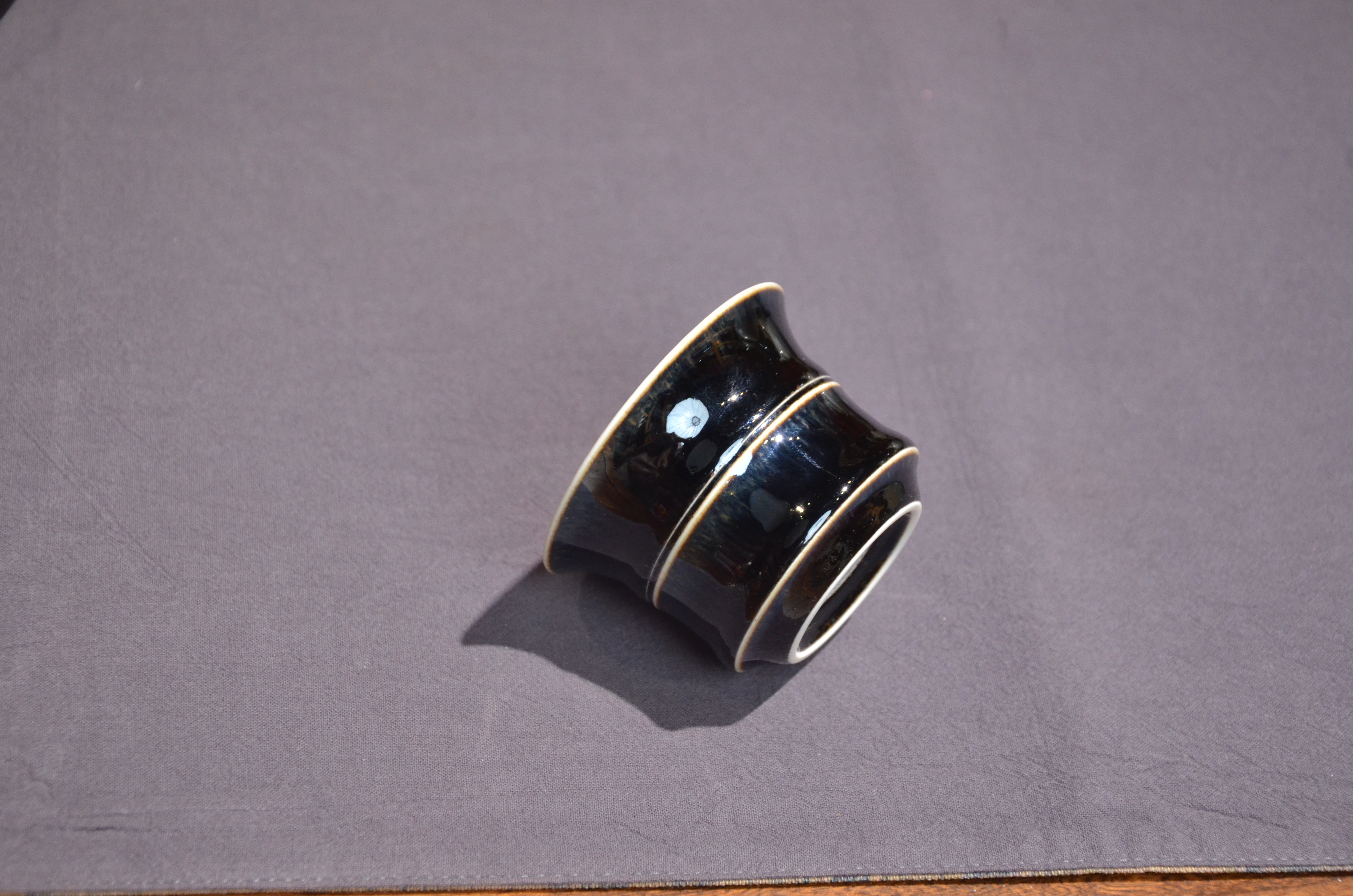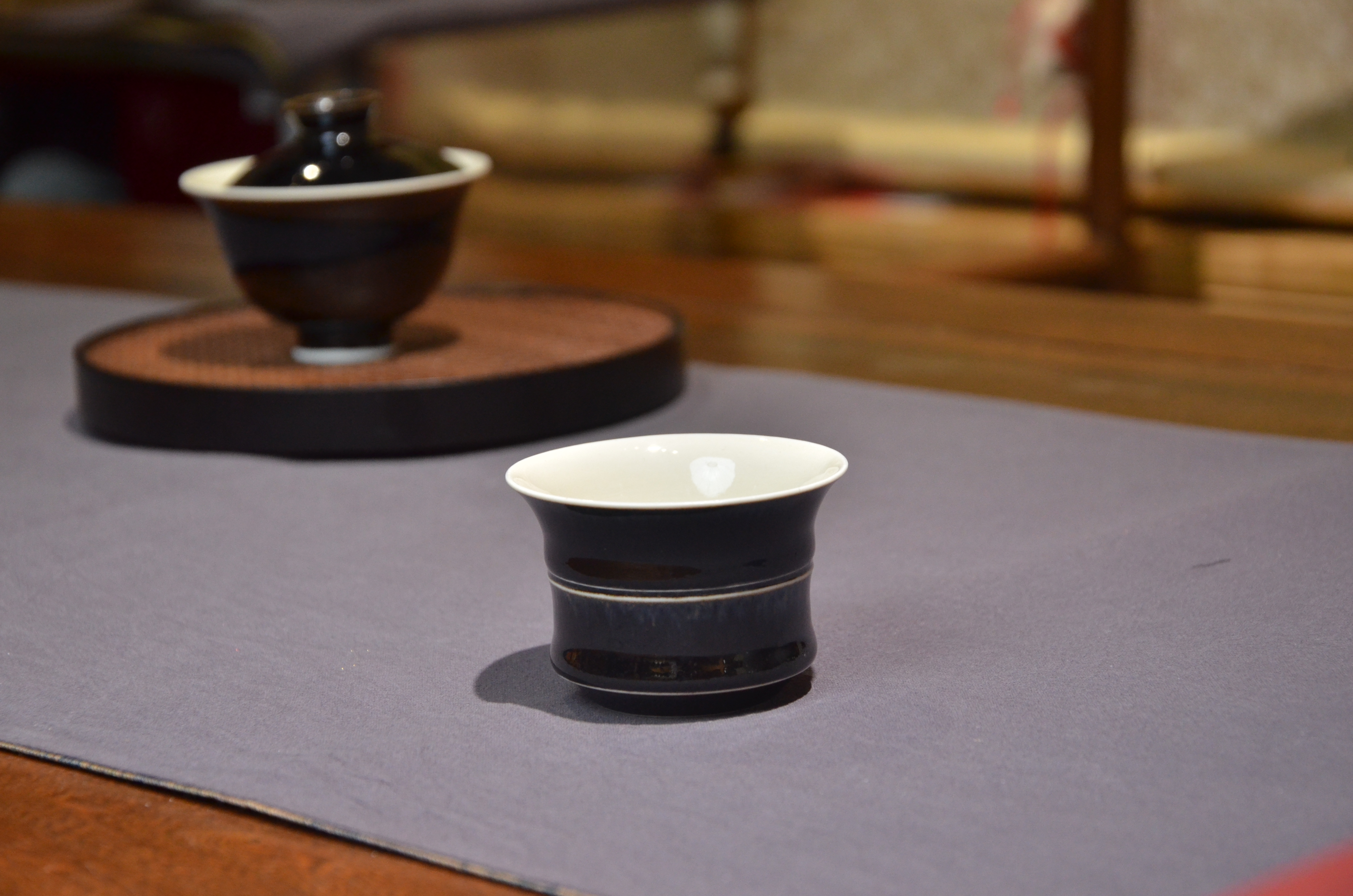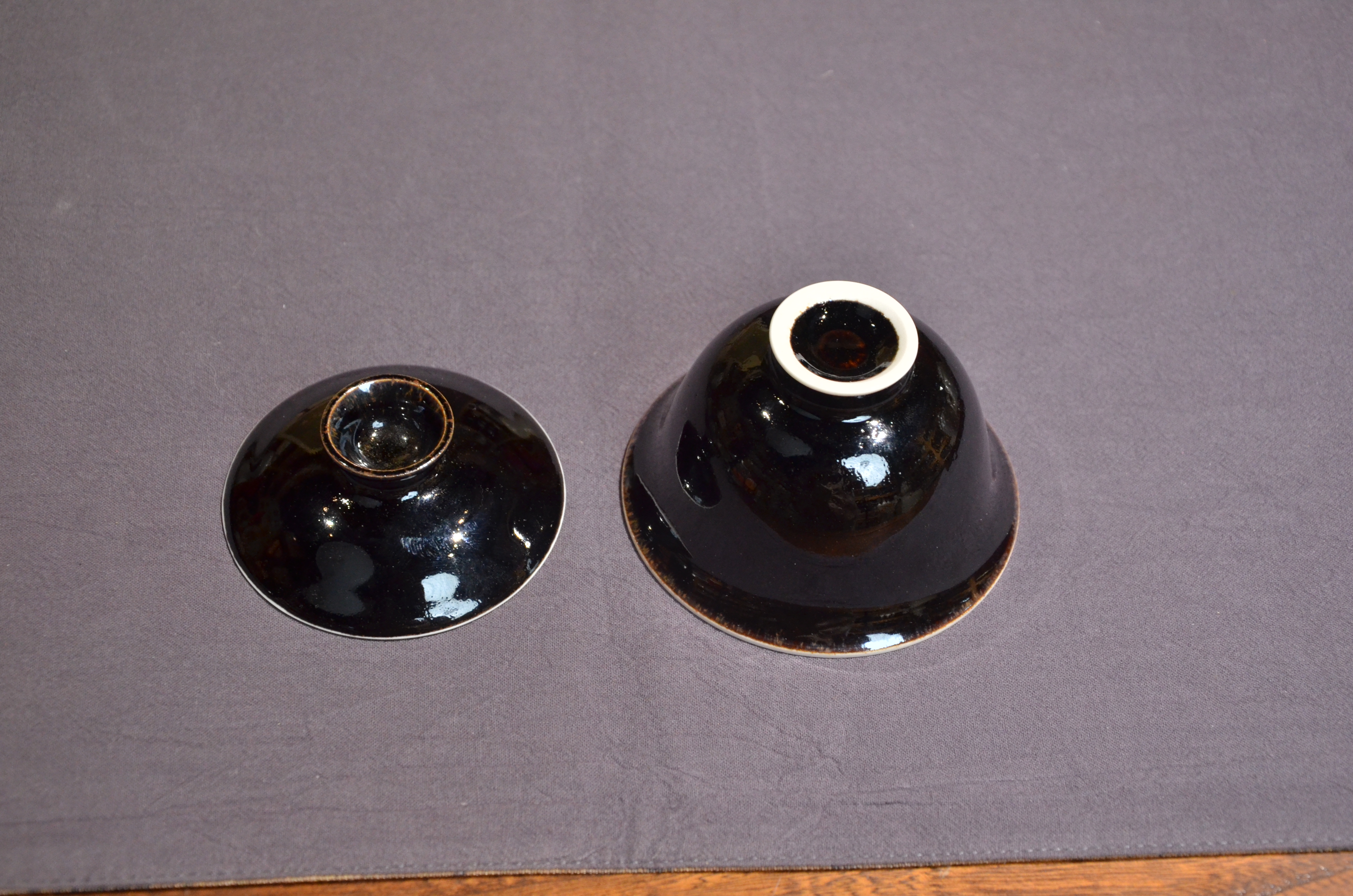 定窑 墨白内白外黑手工盖碗 手工品名杯