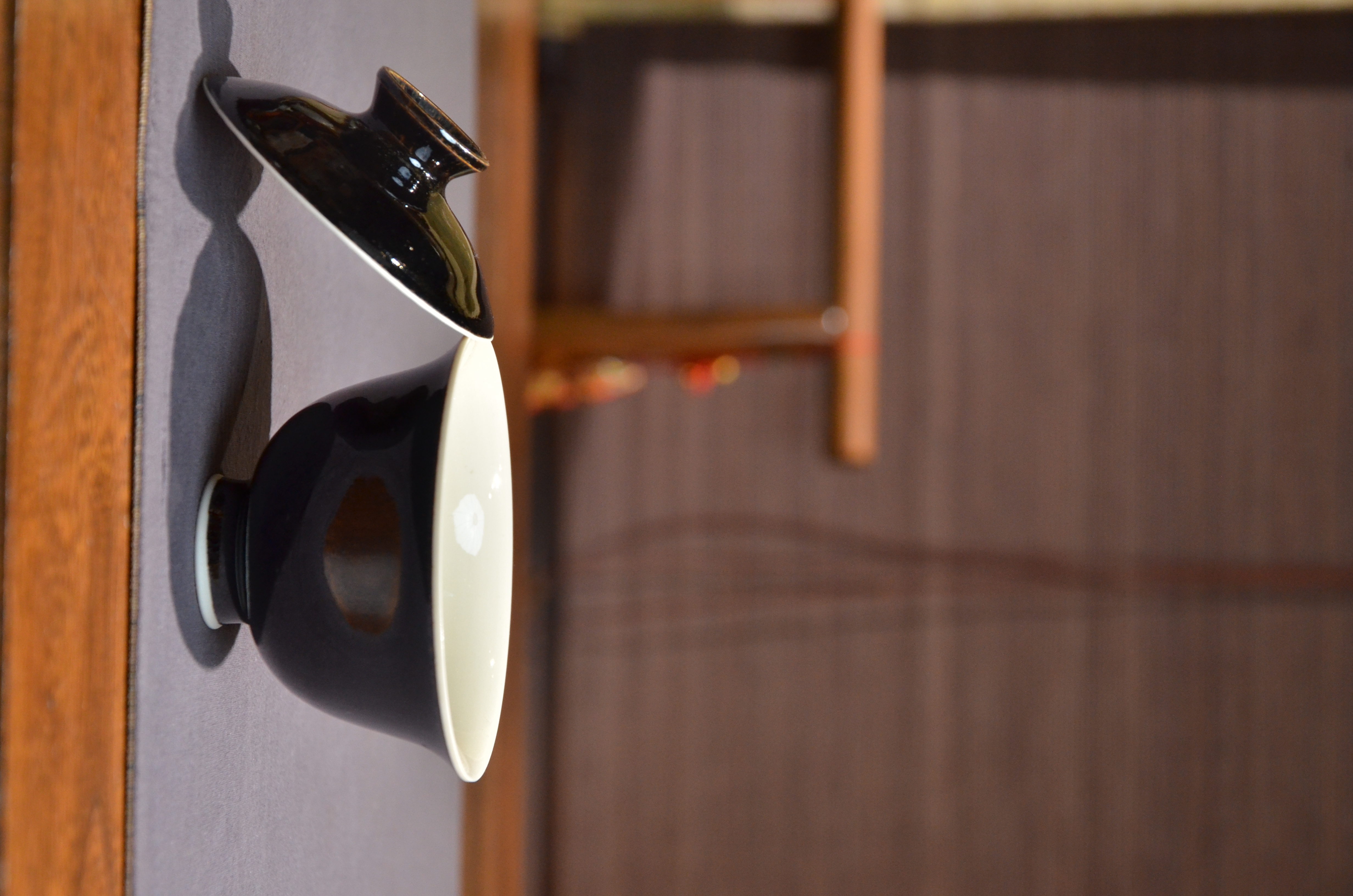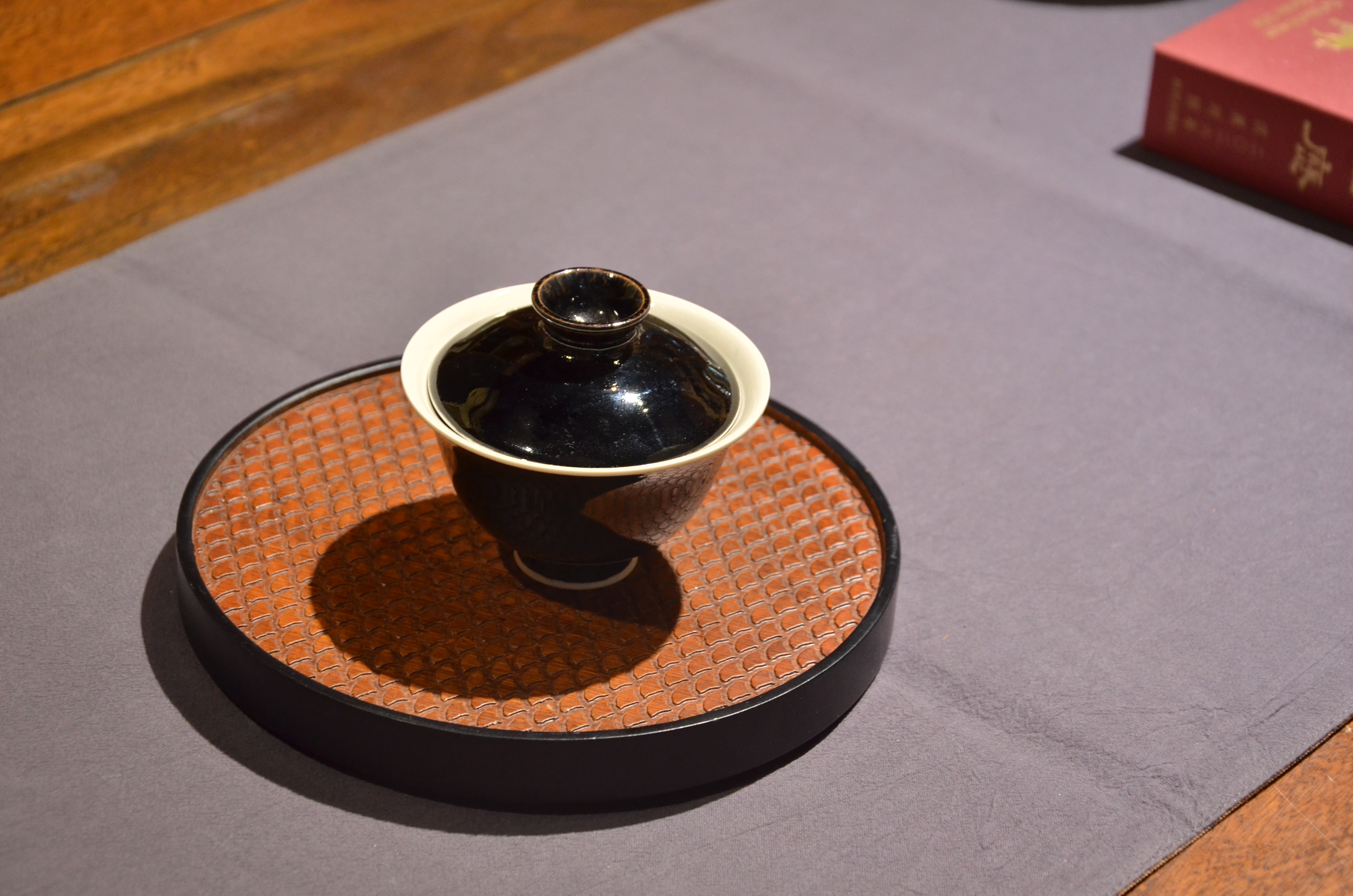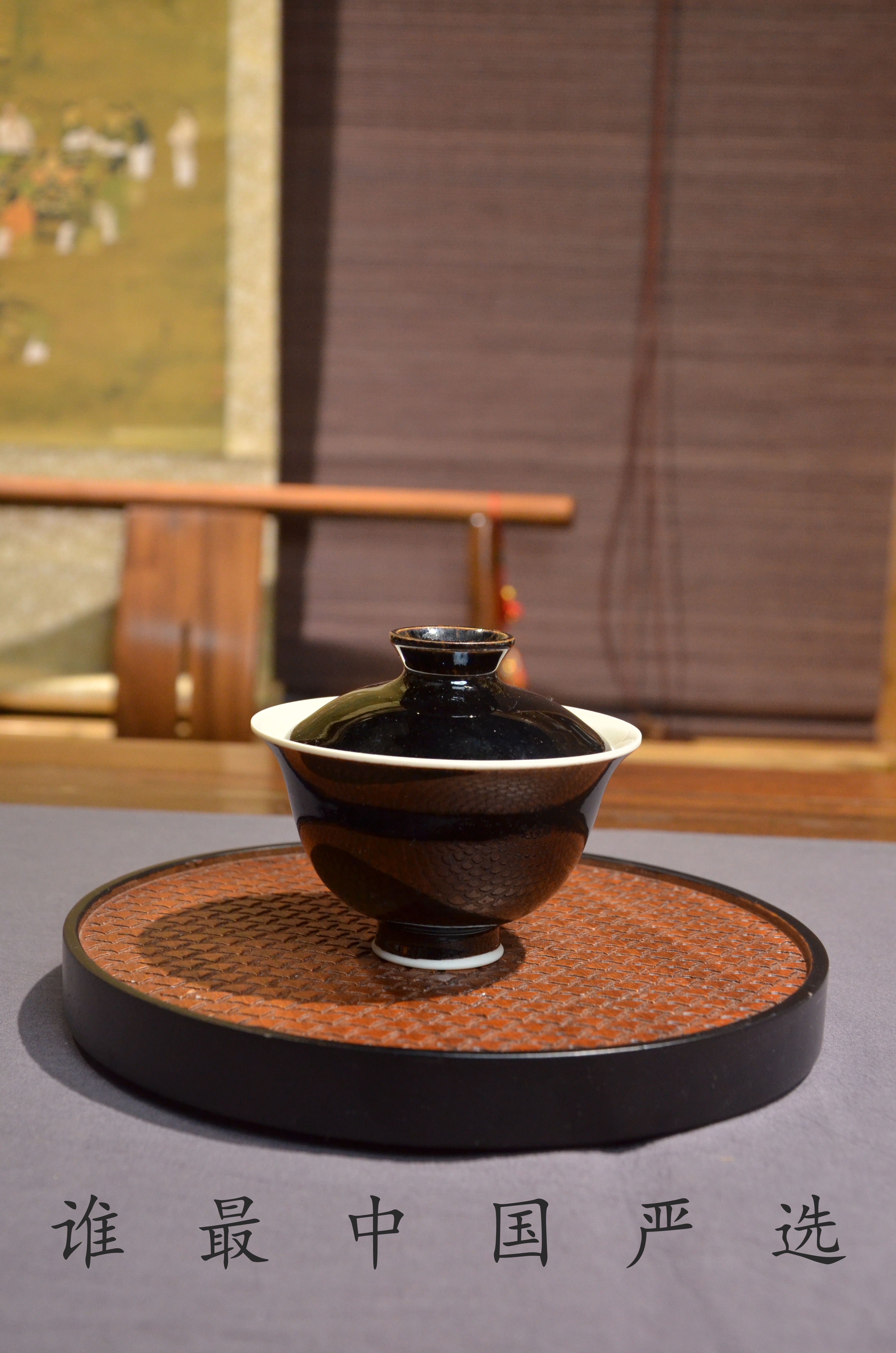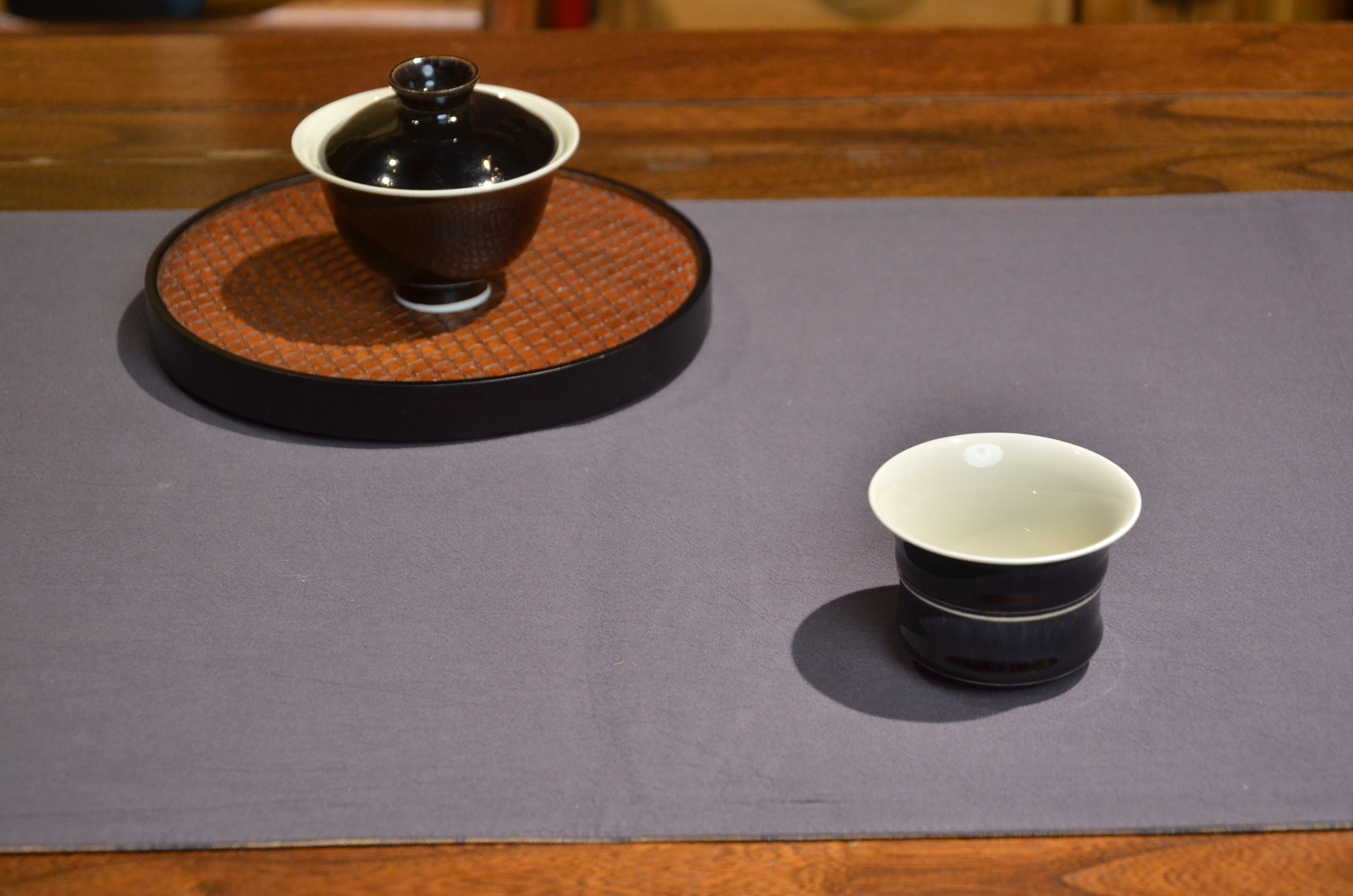 定窑 墨白内白外黑手工盖碗 手工品名杯