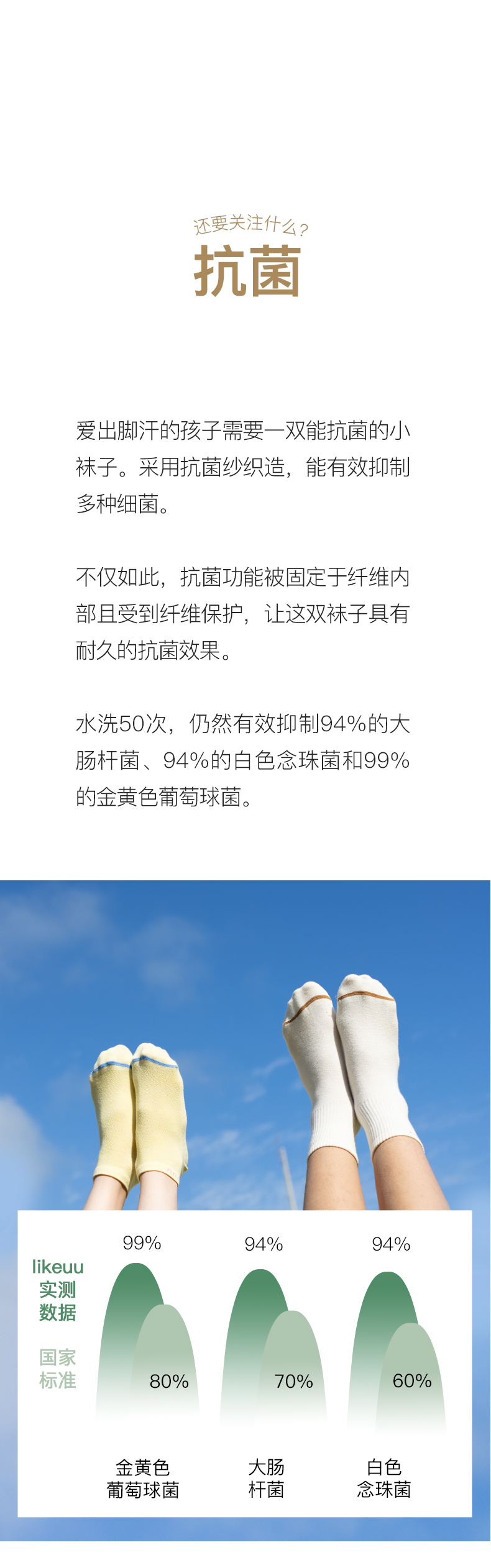 ubras旗下likeuu儿童袜子抗菌透气男女童短筒中筒袜春季新款5双装