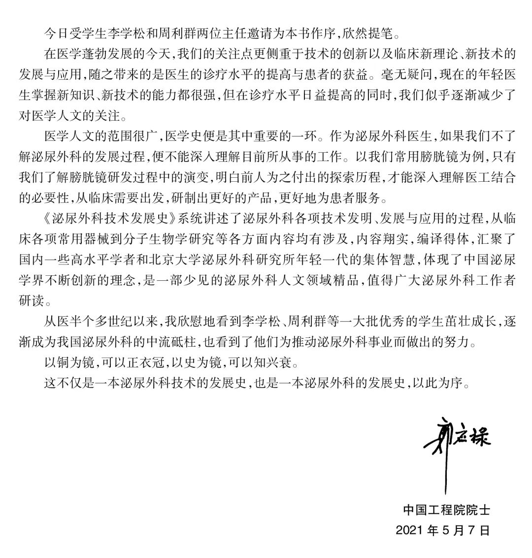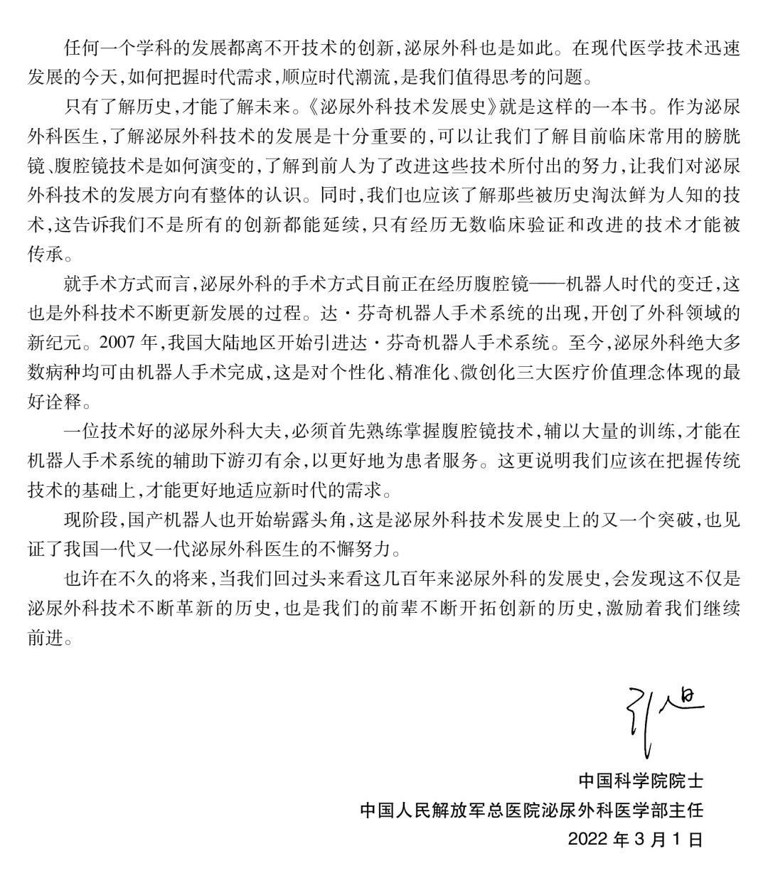 “你能看到多远的历史,就能看到多远的未来。”望本书所述能成为读者今后前进的铺垫与基石,助力泌尿外科医生不断续写更加辉煌的未来新篇章。
