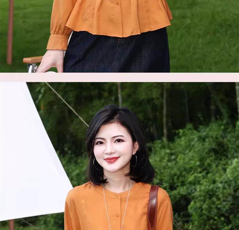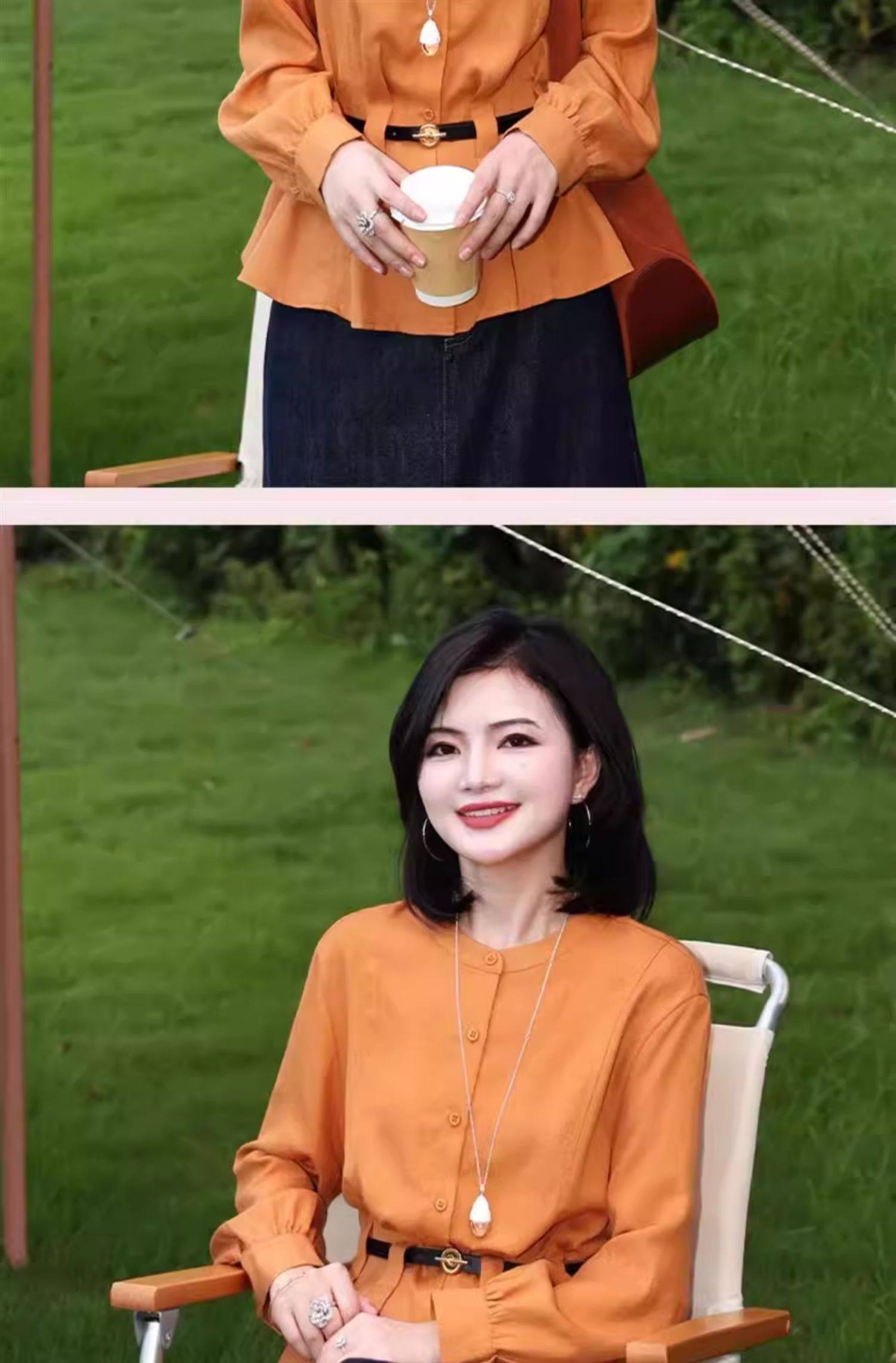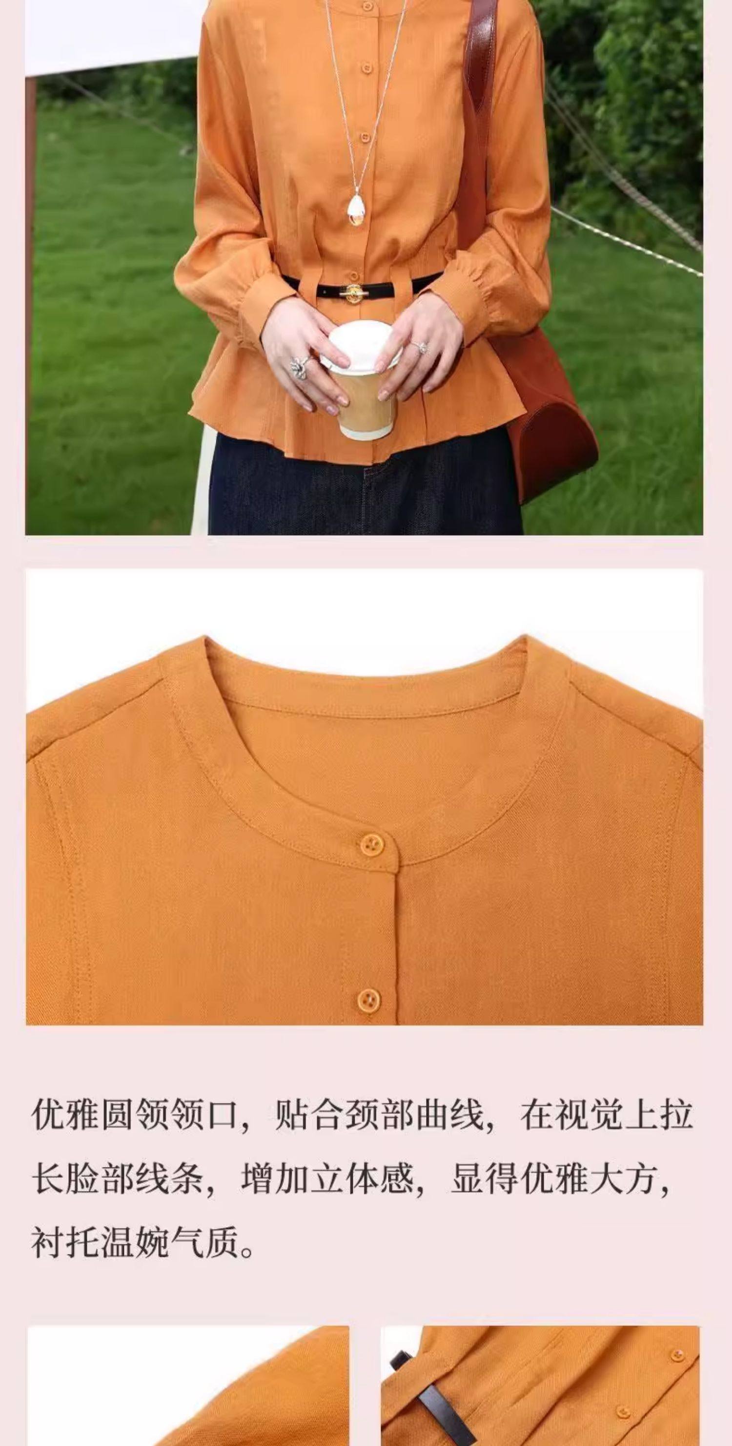 法式圆领收腰压褶长袖衬衫女2025秋季气质减龄独特漂亮衬衣