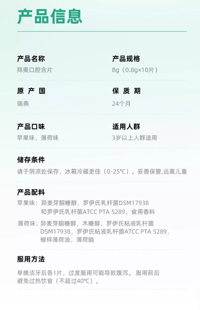 拜奥口腔益生菌含片口气清新儿童成人肠胃罗伊氏乳杆菌