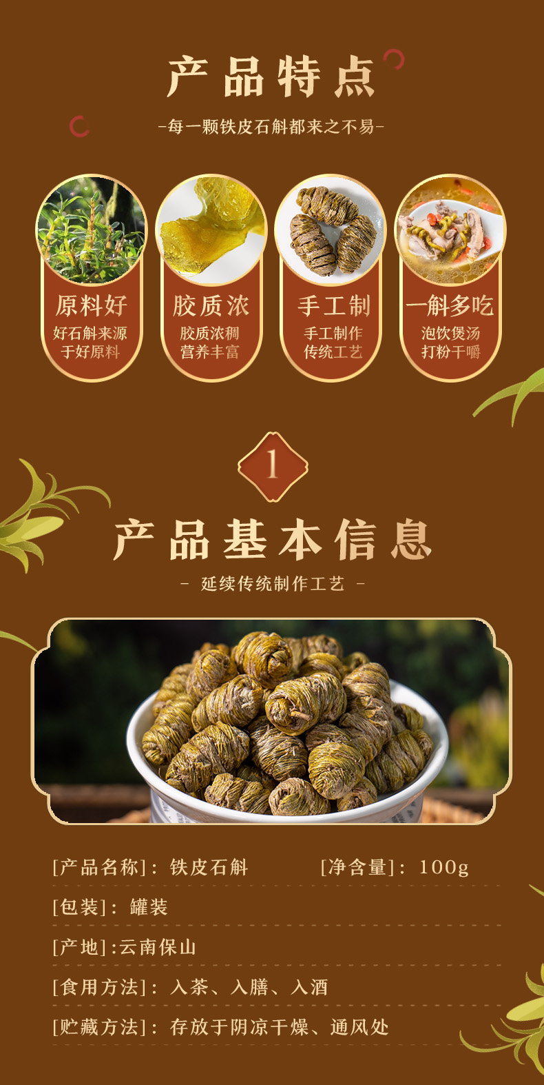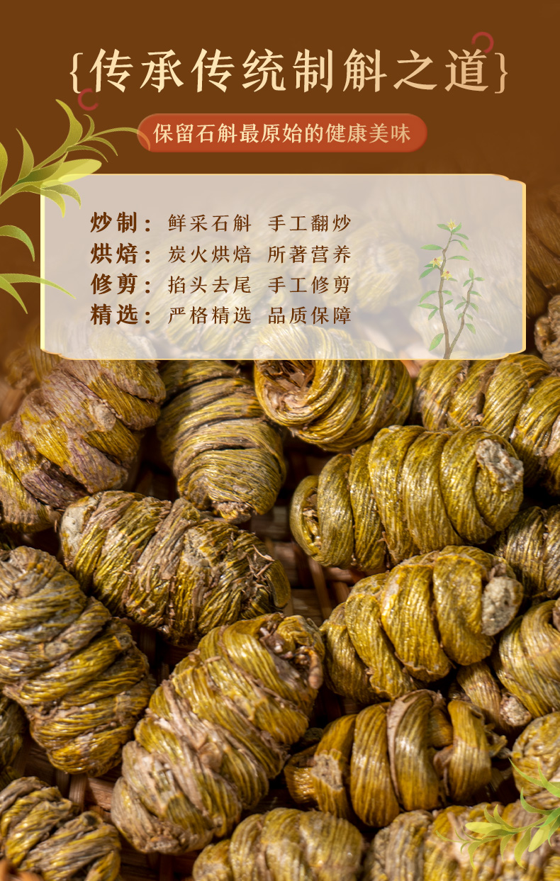 【云南保山铁皮石斛】颗粒饱满 胶质浓厚 手工缠绕 纹理清晰 紧实饱满 手工翻炒 保留石斛本味 100g/瓶