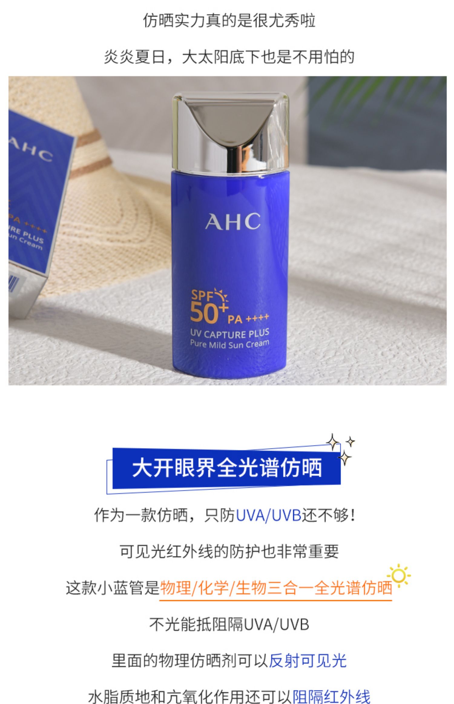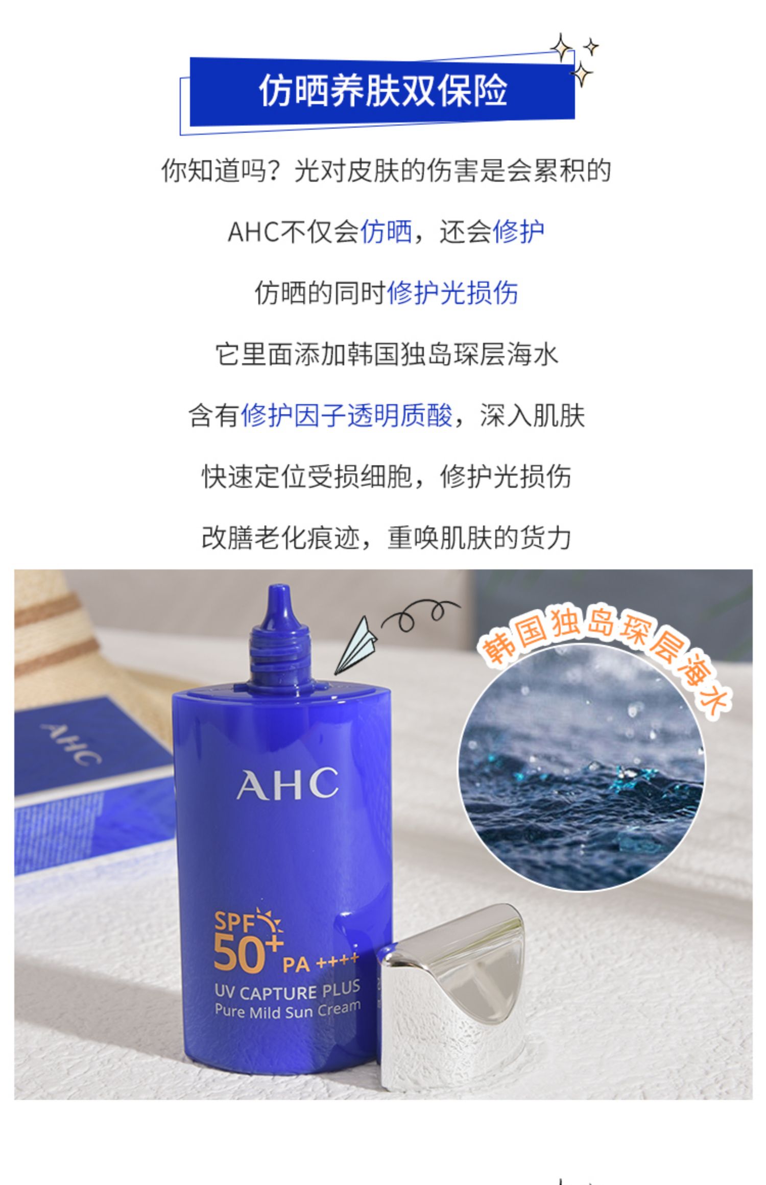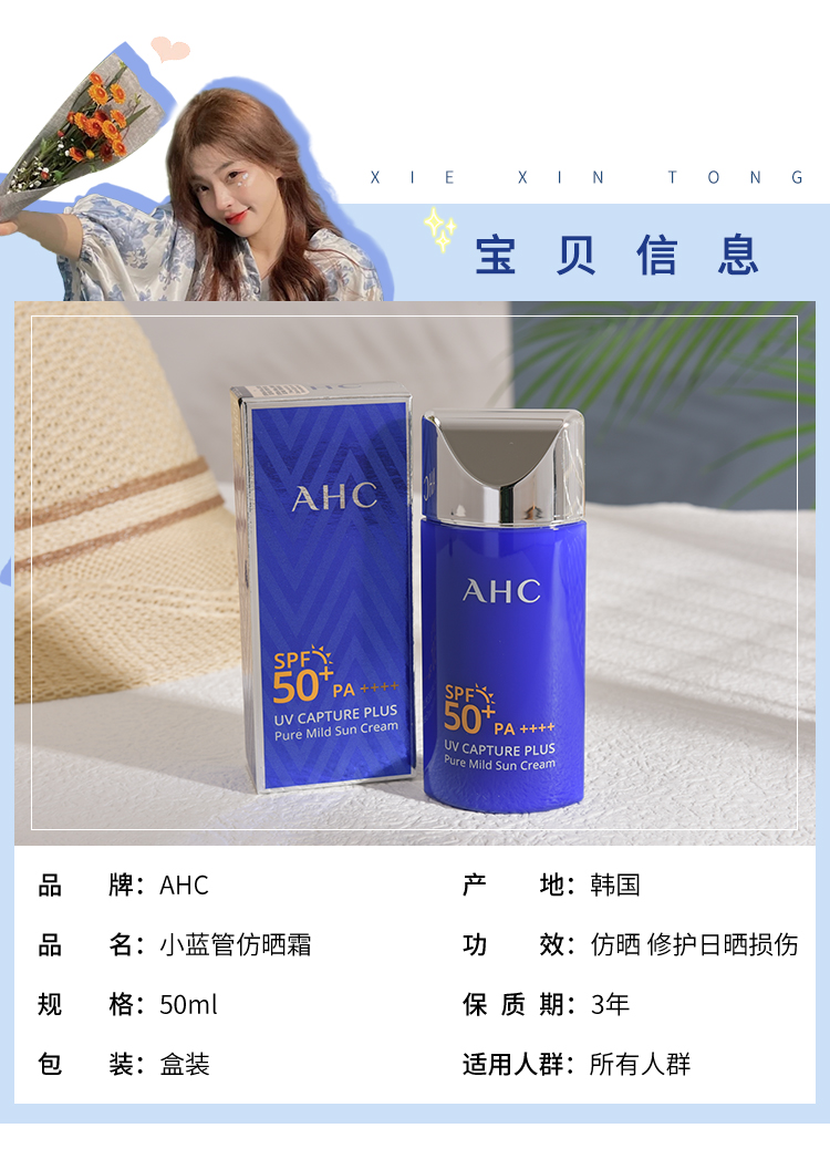 韩国AHC爱和纯纯净温和防晒霜SPF50+