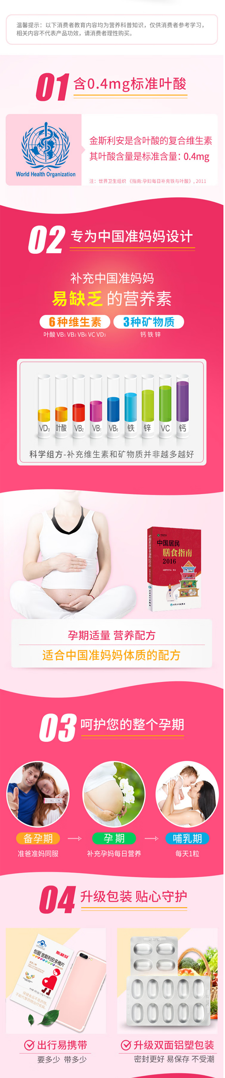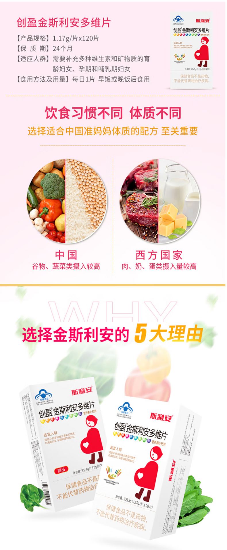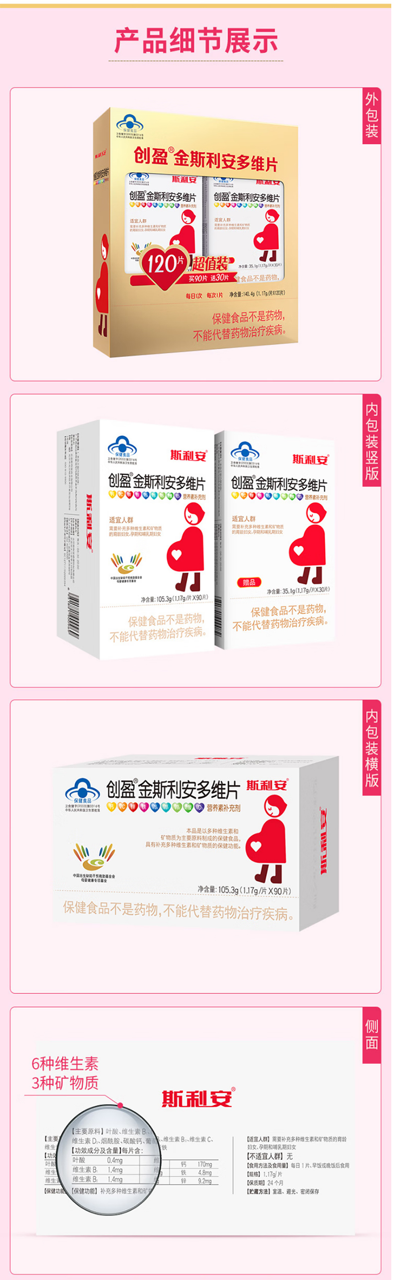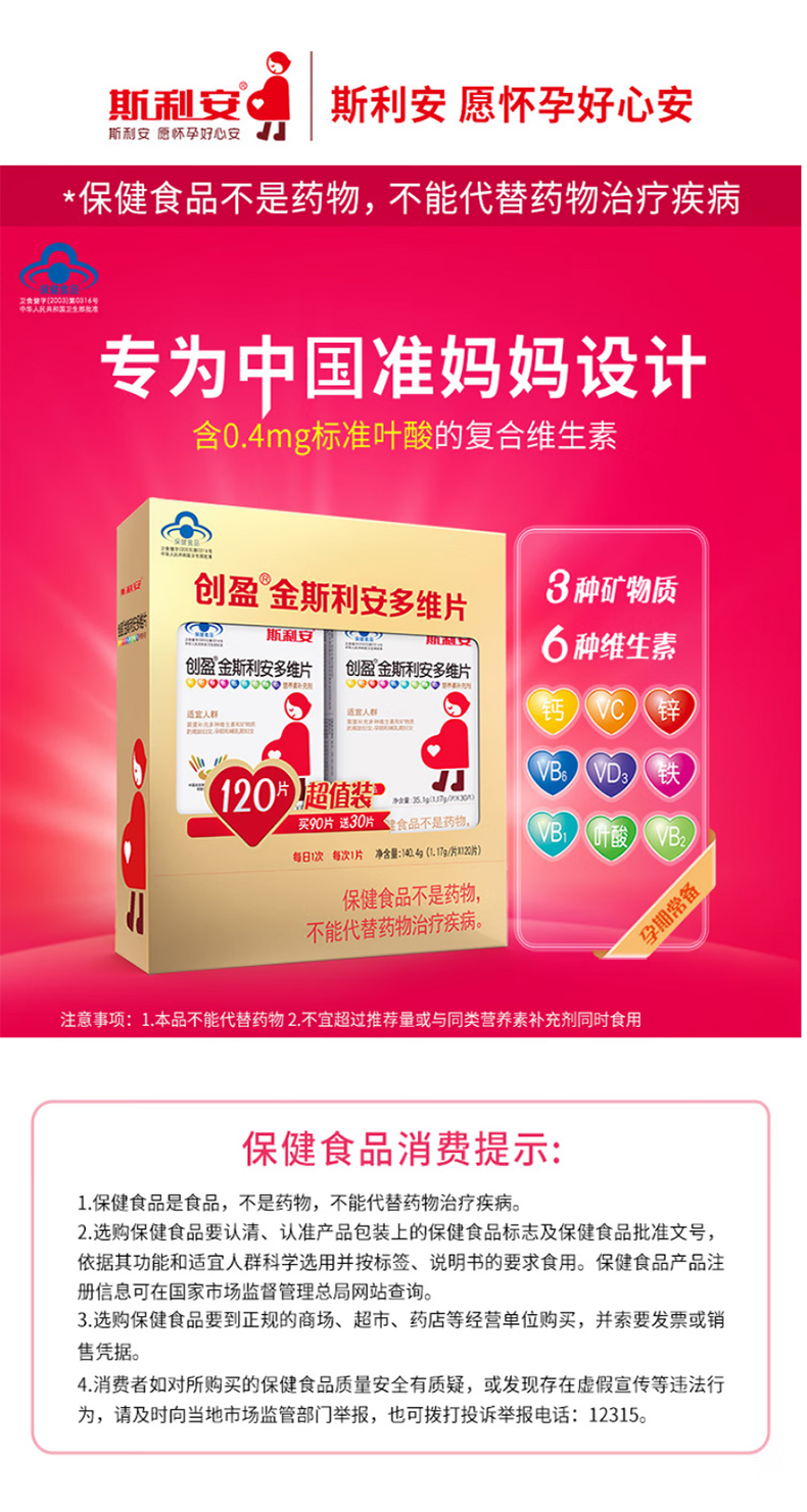 斯利安叶酸复合维生素超值装 孕妇备孕 金斯利安多维片礼盒装 1.17g*120片