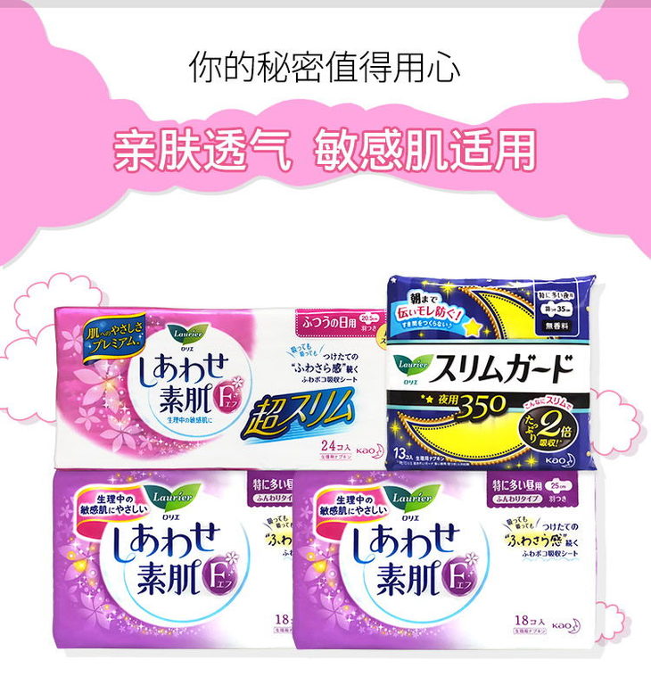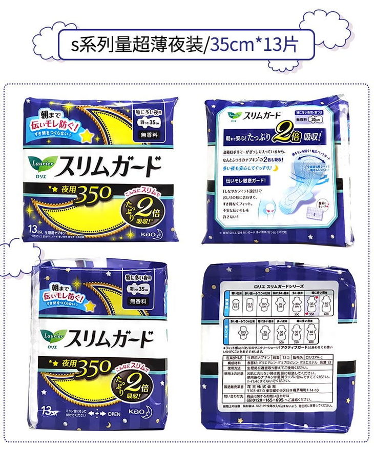 日本花王卫生巾/护垫系列 日用/夜用护翼型/瞬吸超薄1mm*无荧光剂 17/20.5/22.5/35/41CM