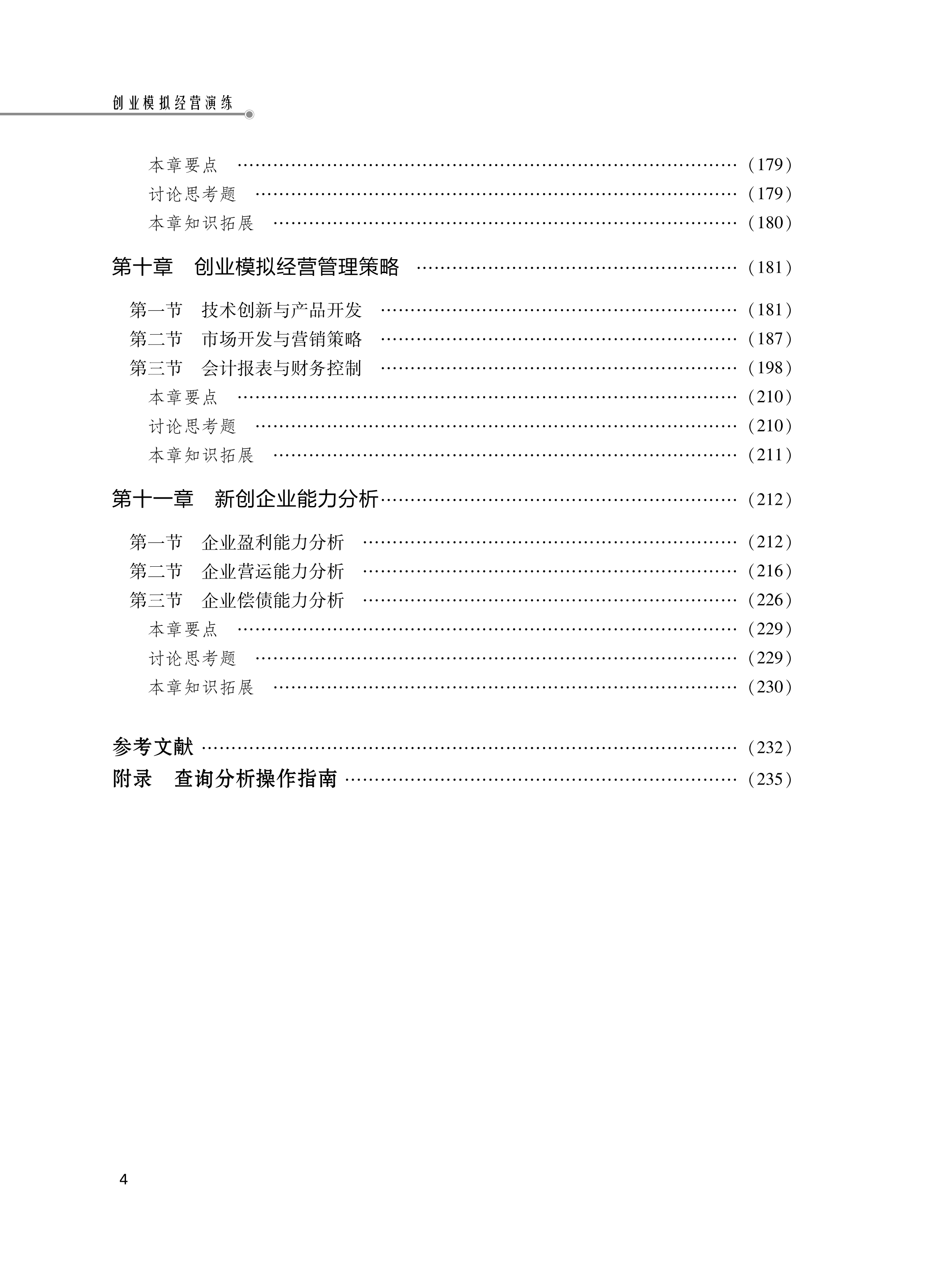 本教材是省级一流课程和省级精品资源共享课的配套教材,共分为三个部分——创业启航篇、创业准备篇和创业实验篇,循序渐进引导学生深入了解创业的各个方面。从创业的基本概念和过程,到创业计划的撰写,再到创业团队的组建与管理,特别关注创业过程中的数据分析与决策制定,通过对企业盈利能力、营运能力、偿债能力的财务分析,学生可以深入了解如何利用报表进行企业健康状况的评估这种科学的数据分析方法,如此不仅可以帮助创业者在创业初期合理规划资源,还可以培养和强化分析与解决问题的能力。