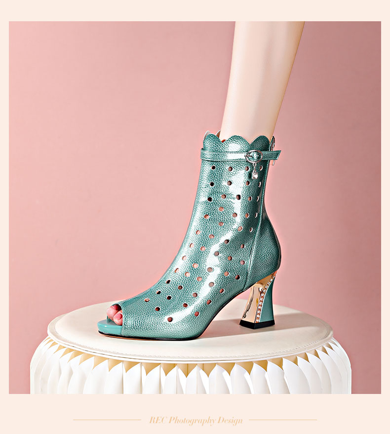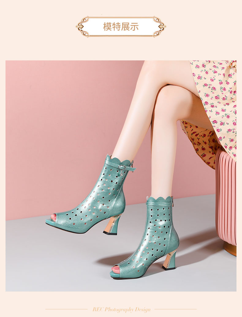 个性百搭,洞洞露趾短筒高跟凉靴YSML-A101-250