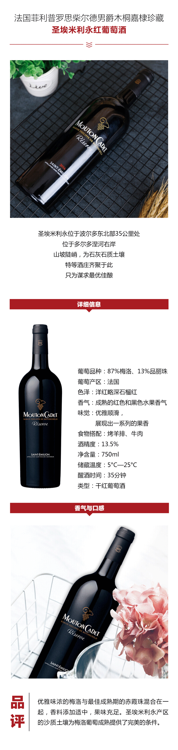 法国菲利普罗思柴尔德男爵木桐嘉棣珍圣埃米利永葡萄酒(1箱6瓶装)