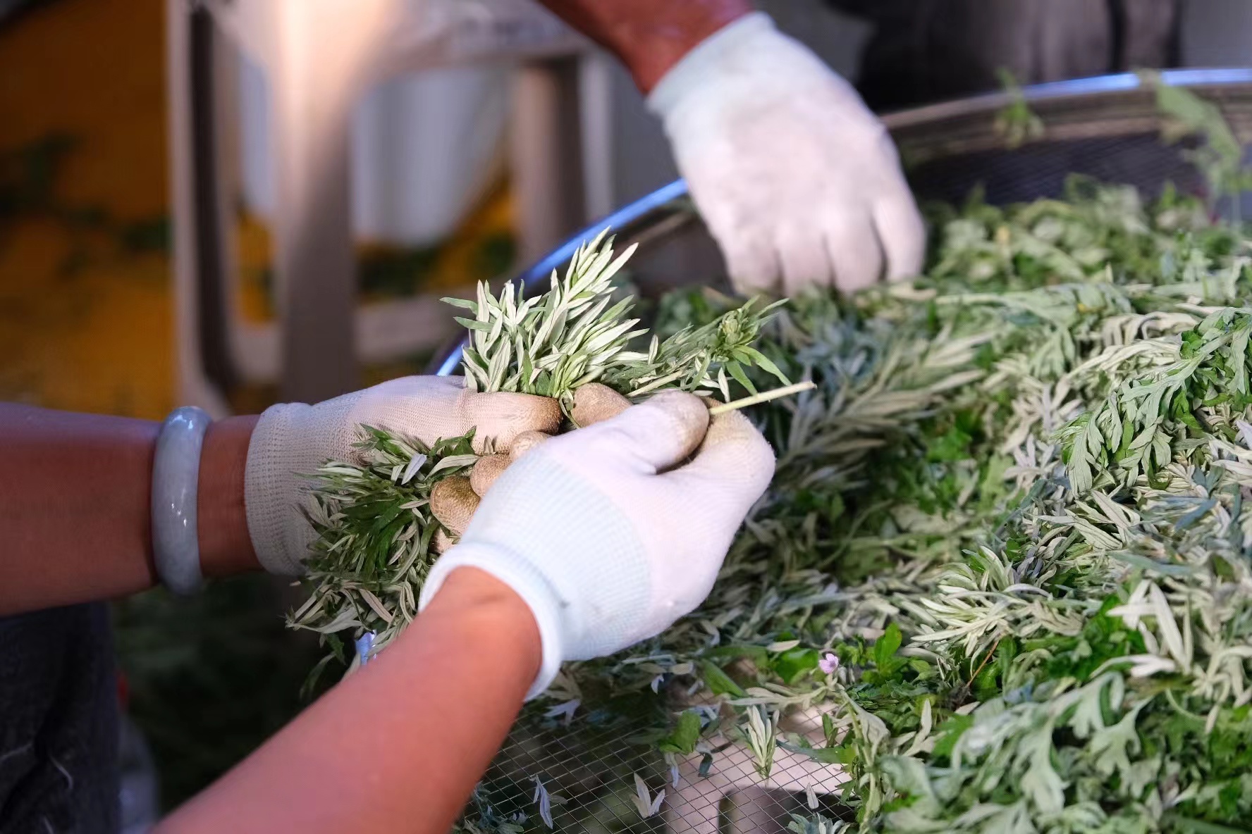 找回后,因为夹杂有其他野草,我们在制作前,就要全部挑出。只用纯艾草蒸馏,不提取精油,含有多种艾草本身的植物活性成分。