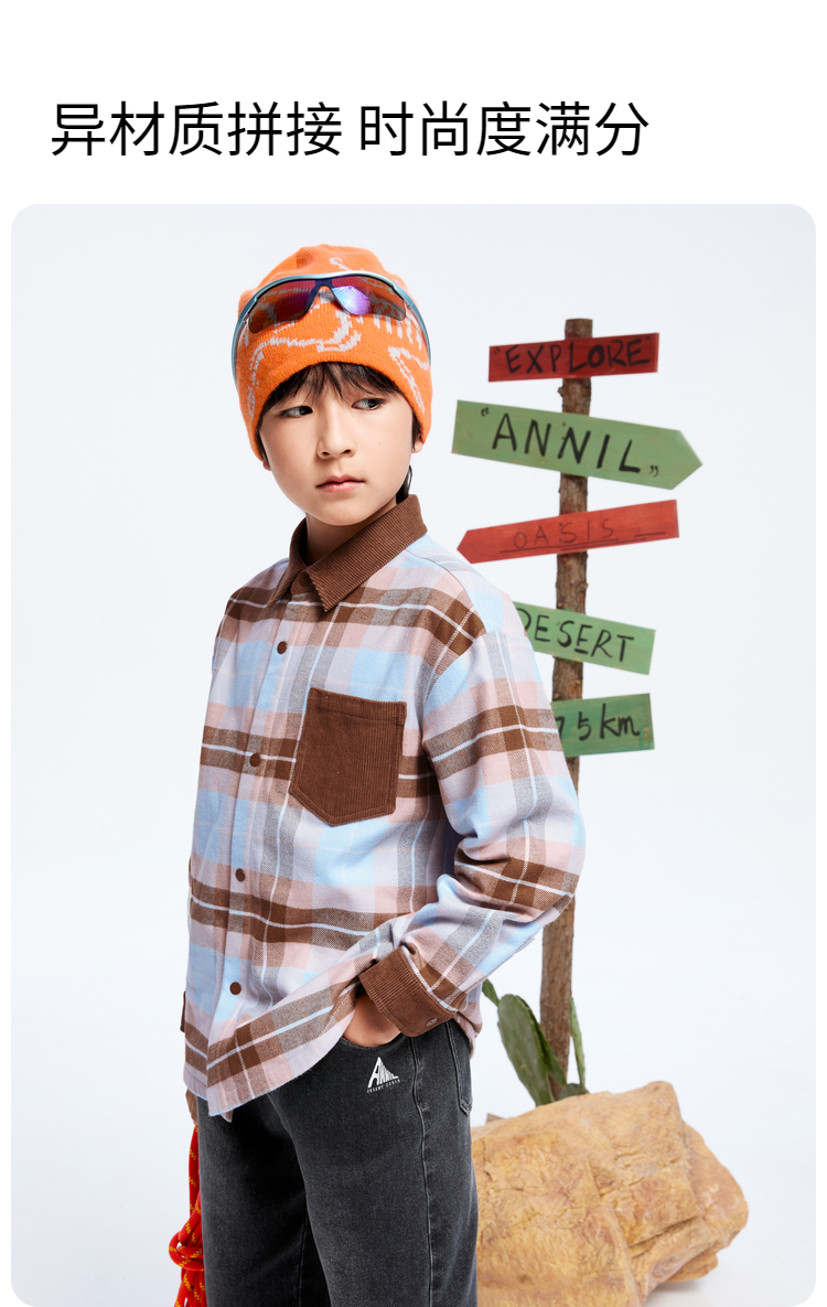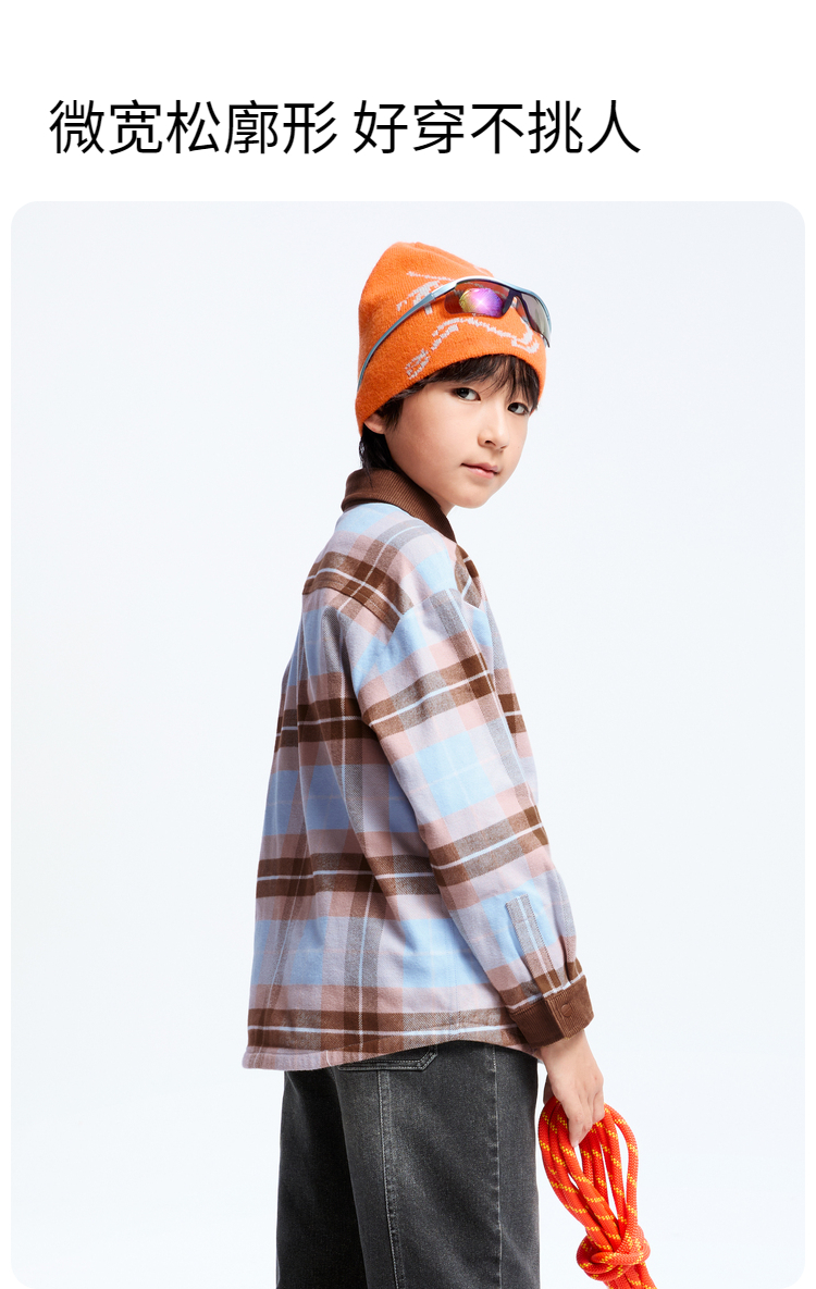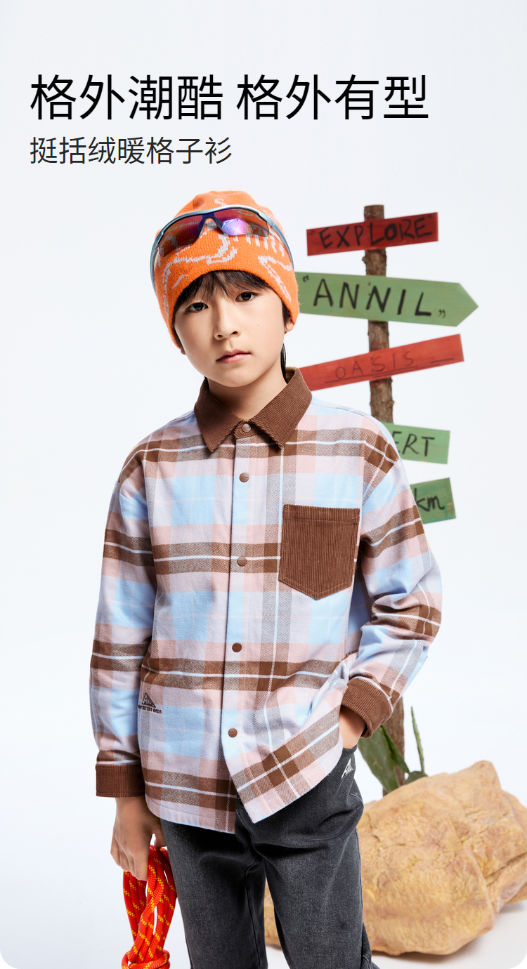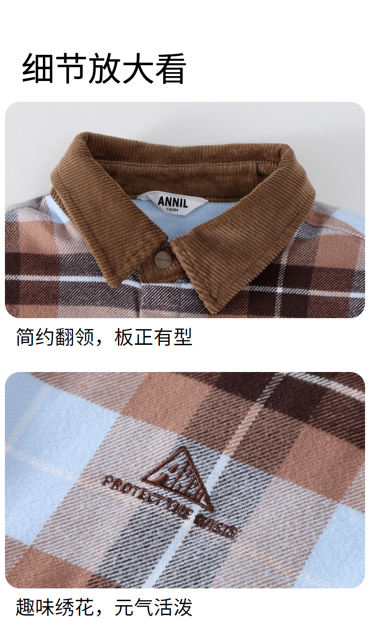 男童挺括绒暖格子衫冬季新款安奈儿童装实体店同款AB441768