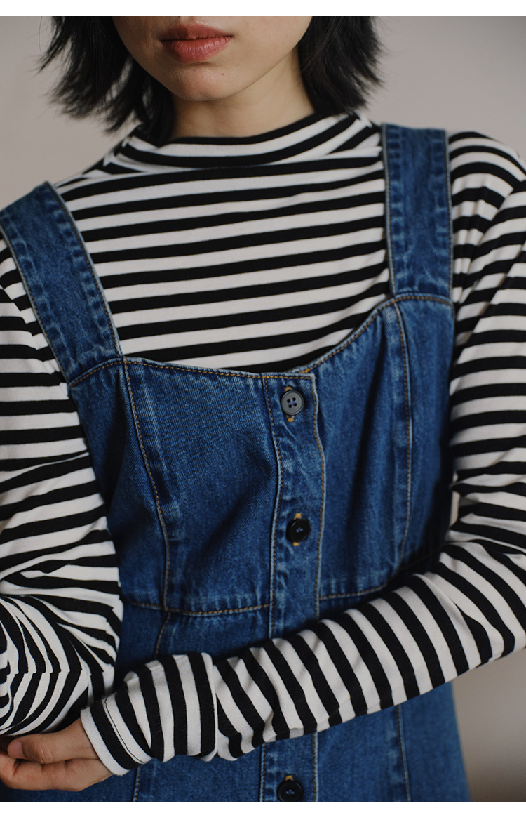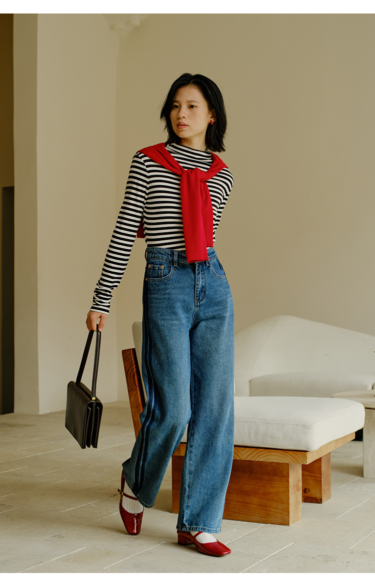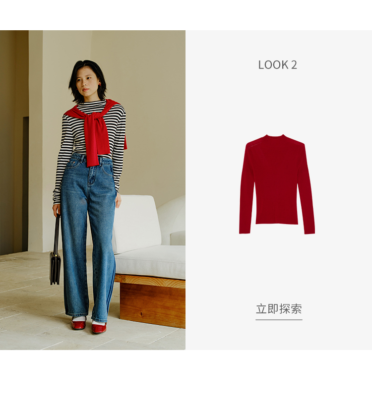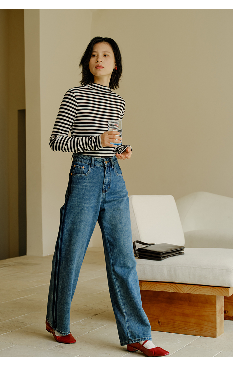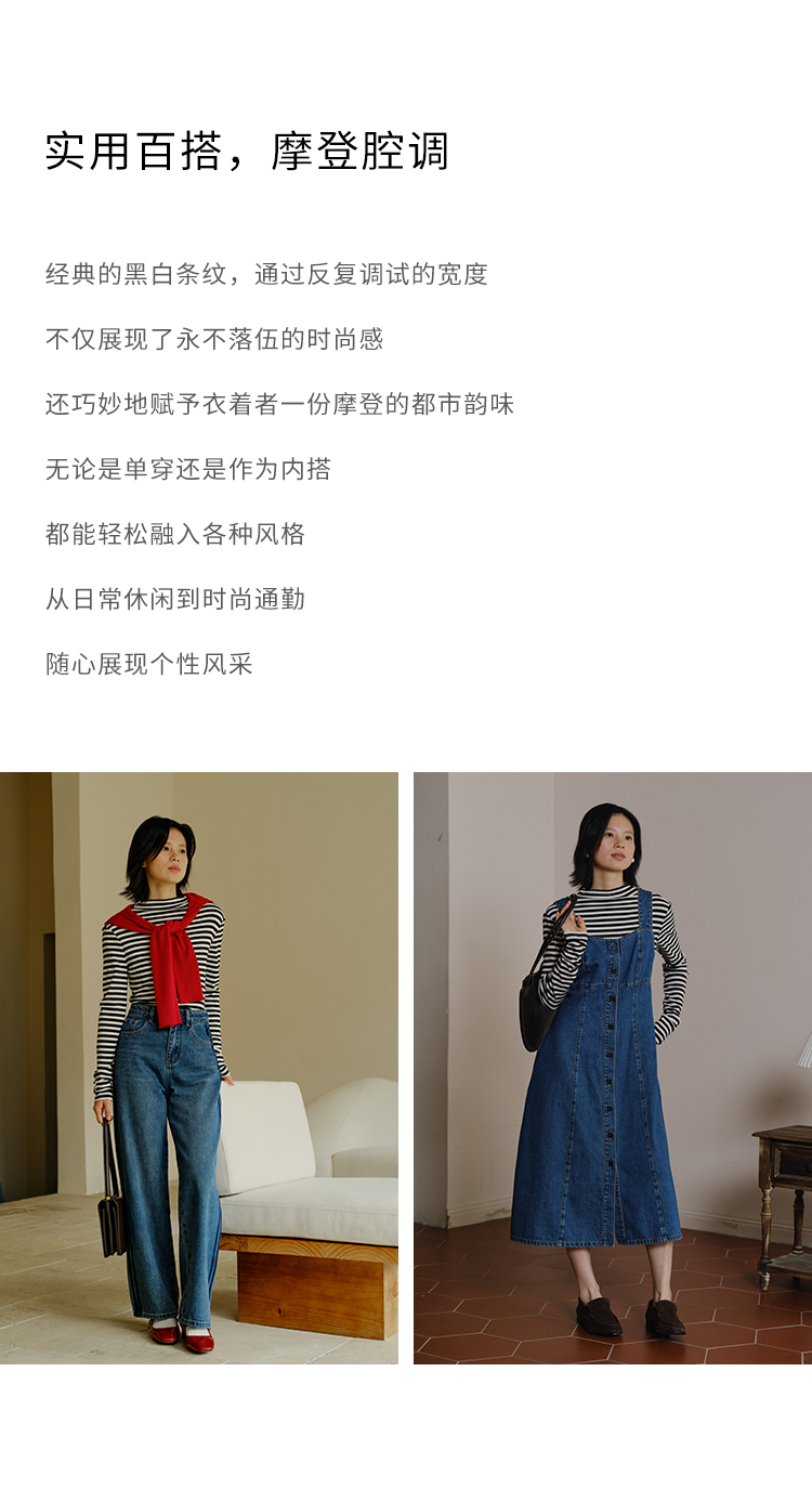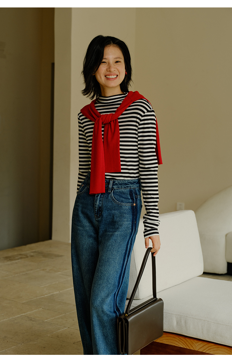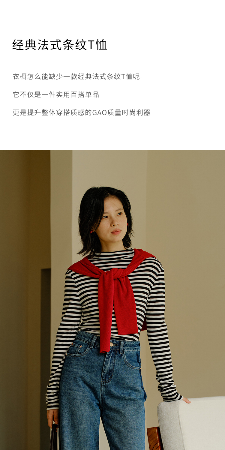 Heydress黑白条纹针织衫女秋季高领打底衫复古修身显瘦百搭上衣