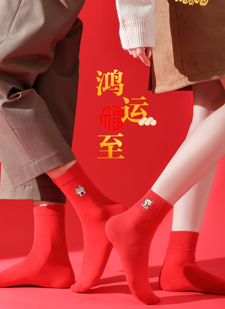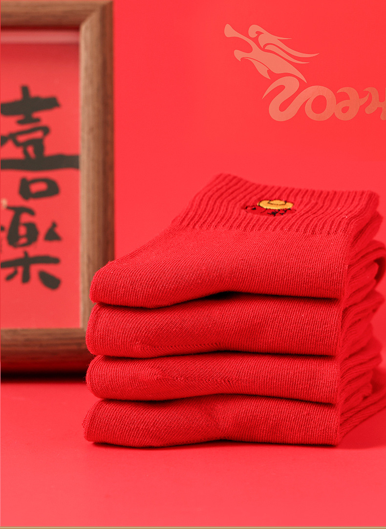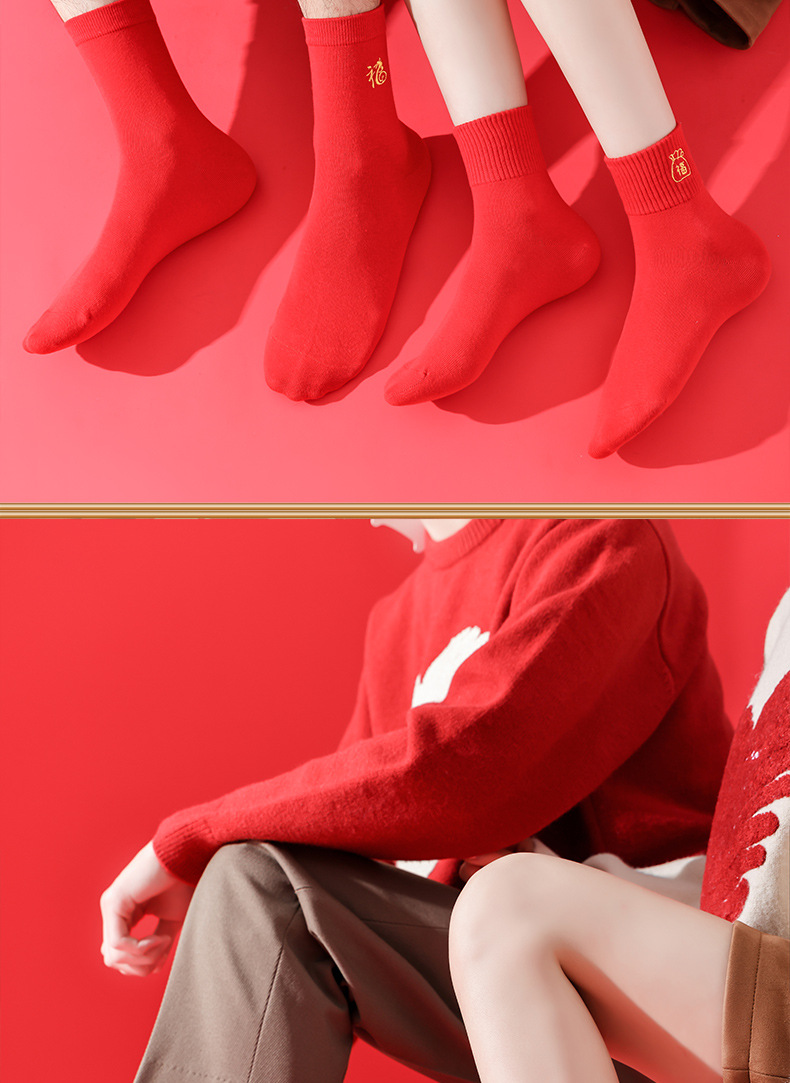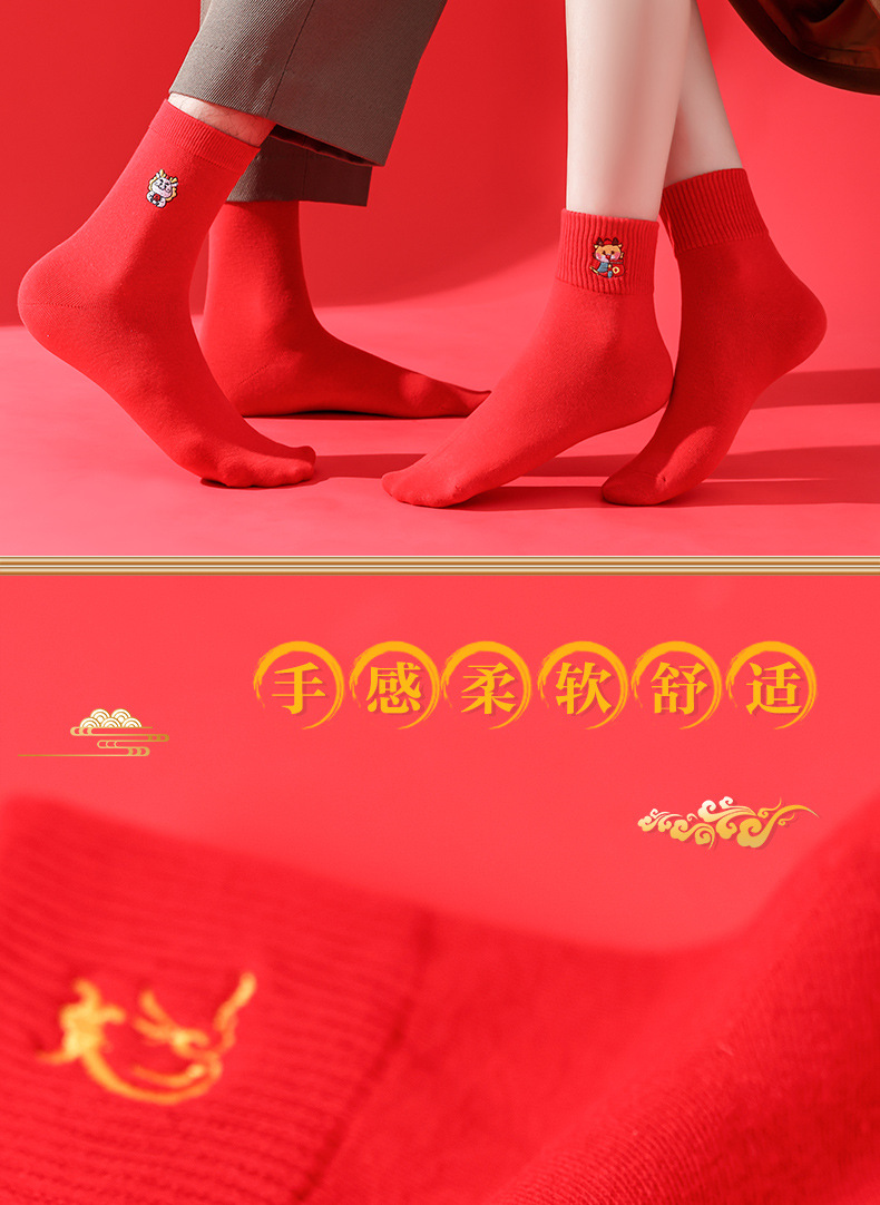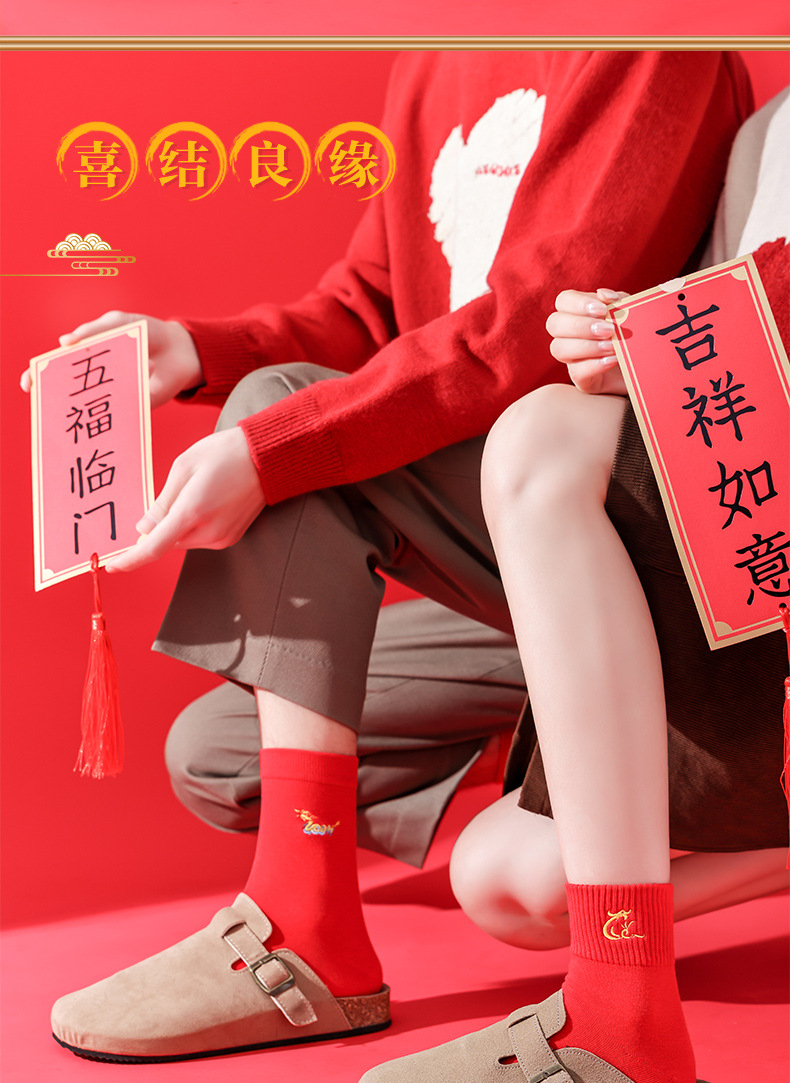 礼盒装【高弹不紧绷❗️情侣长袜筒】新款本命年袜子 蛇年精美刺绣红色袜子 新年情侣款双针中筒袜伴手礼新年礼盒年货礼盒