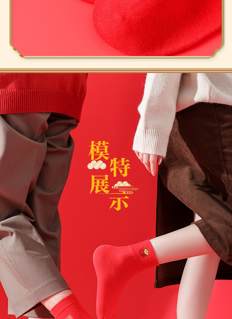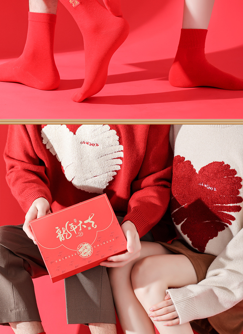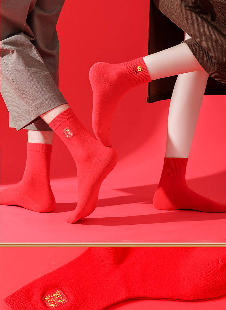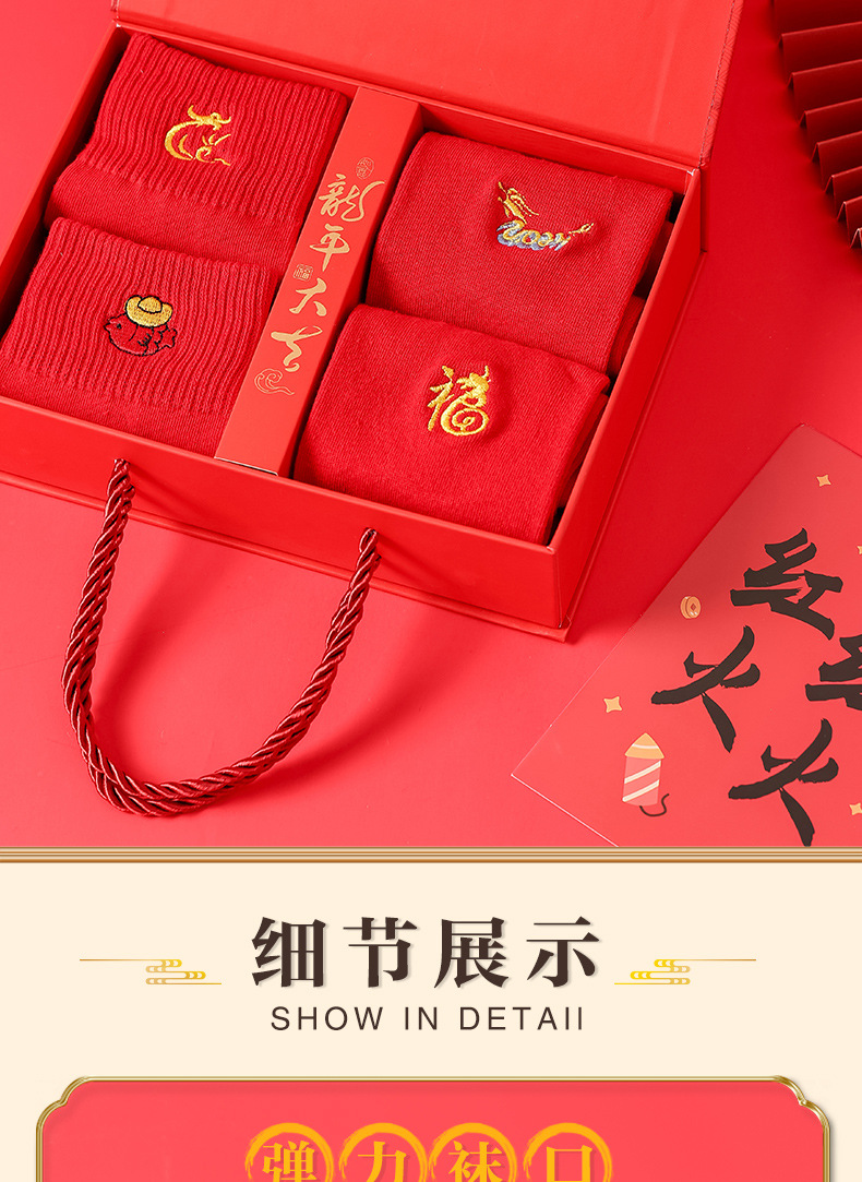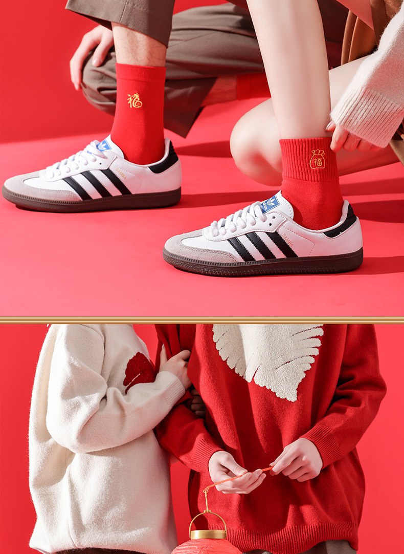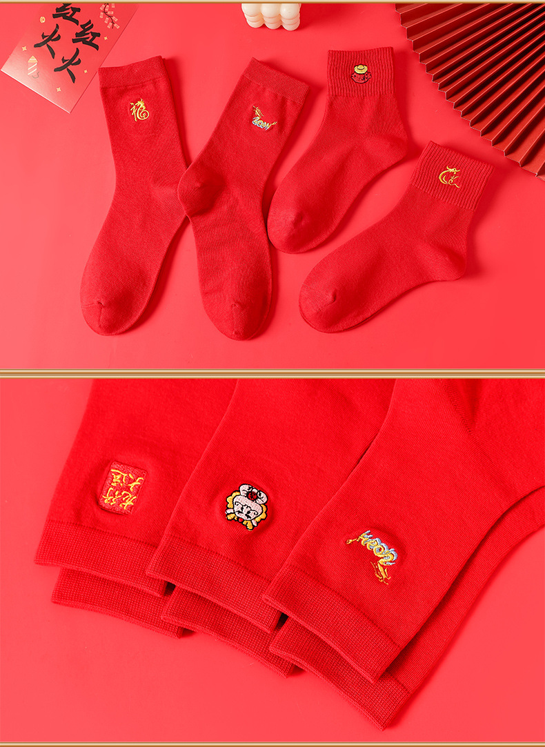 礼盒装【高弹不紧绷❗️情侣长袜筒】新款本命年袜子 蛇年精美刺绣红色袜子 新年情侣款双针中筒袜伴手礼新年礼盒年货礼盒