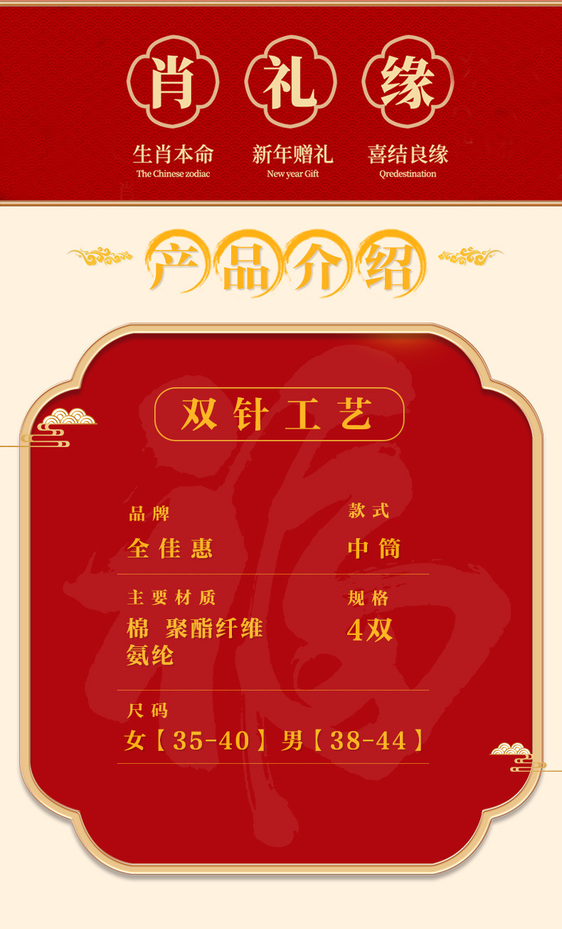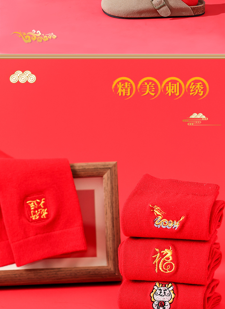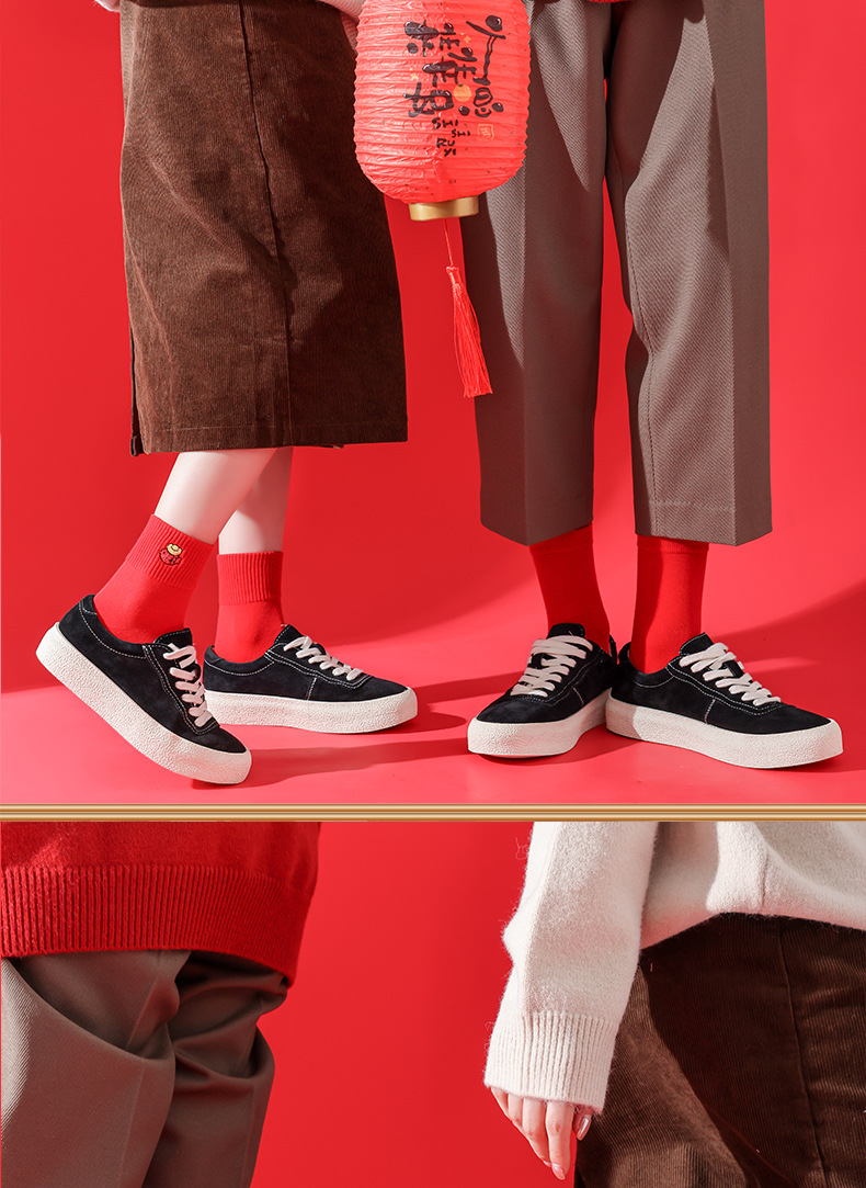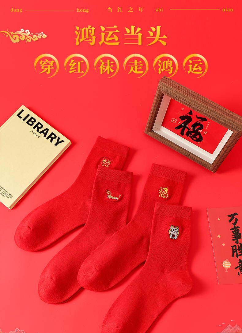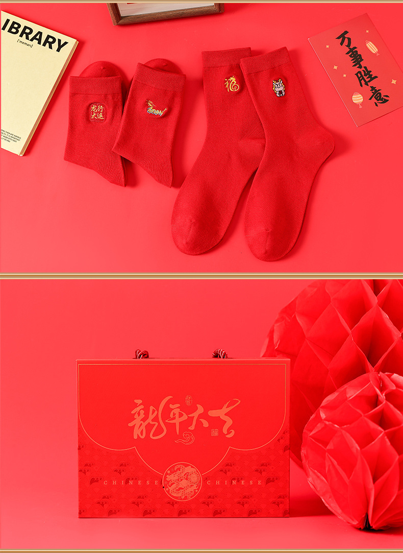 礼盒装【高弹不紧绷❗️情侣长袜筒】新款本命年袜子 蛇年精美刺绣红色袜子 新年情侣款双针中筒袜伴手礼新年礼盒年货礼盒