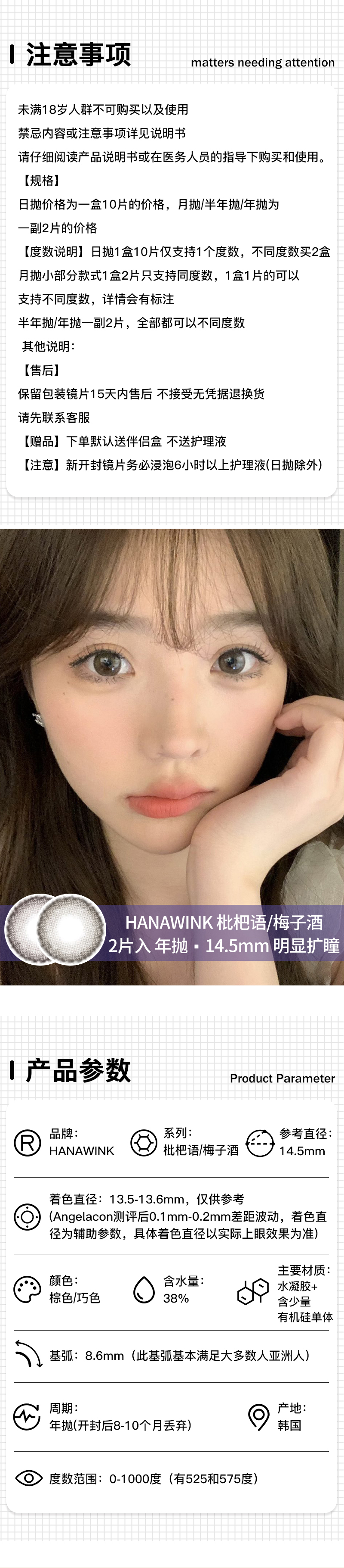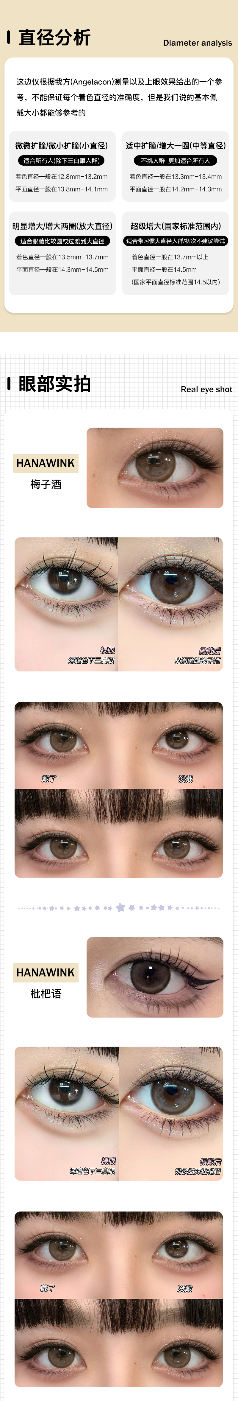 HANAWINK / 枇杷语/梅子酒 / 2片入 / 年抛 / 14.5mm / 明显扩瞳自然纯色提亮提神款