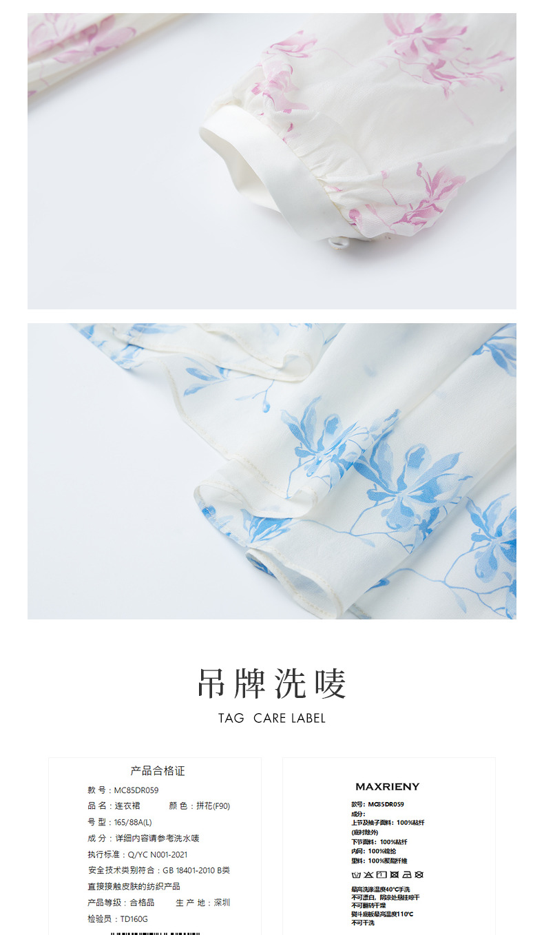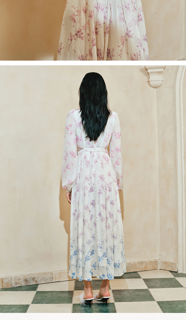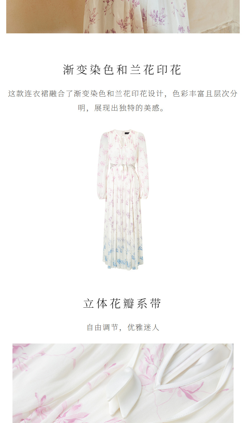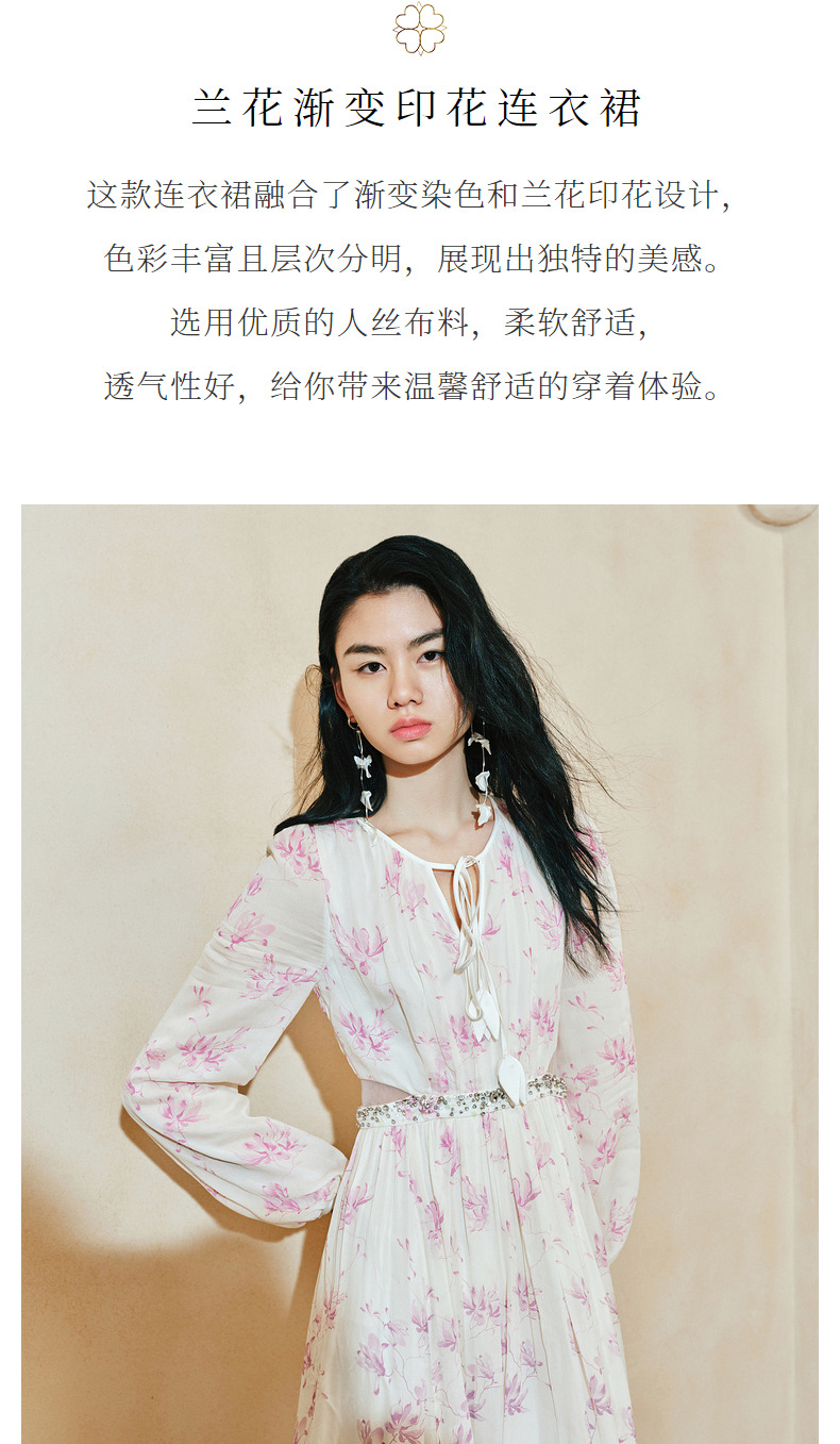 【东方玉兰-商场同款】MAXRIENY复古优雅兰花渐变印花连衣裙2024(货号:MC85DR059)
