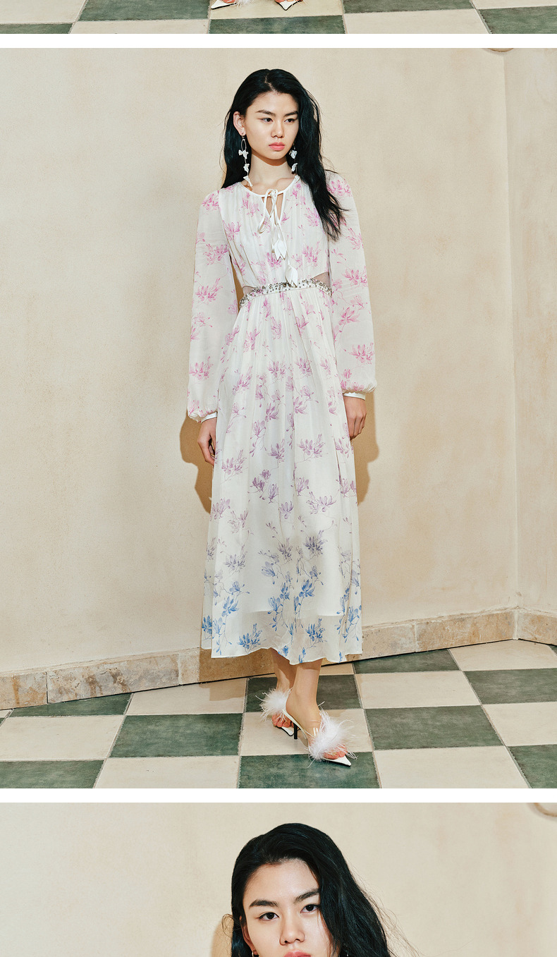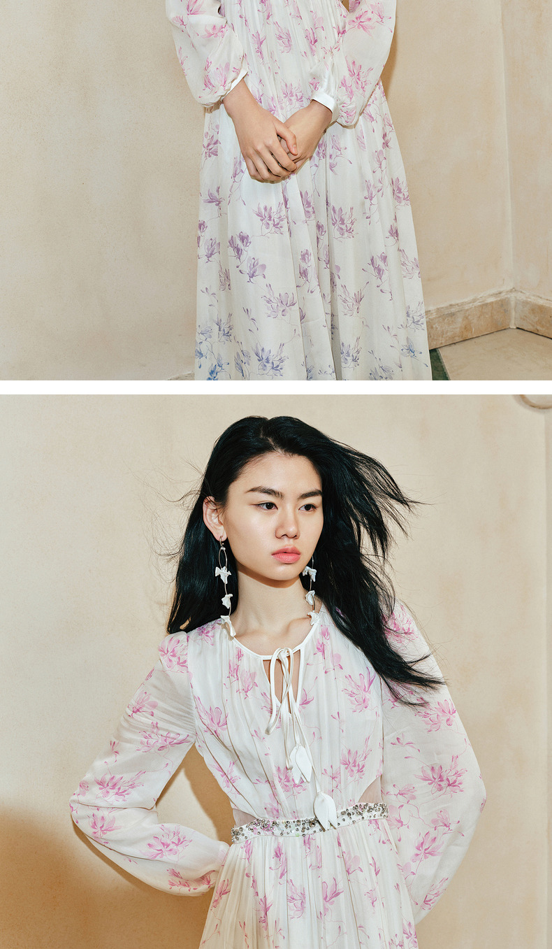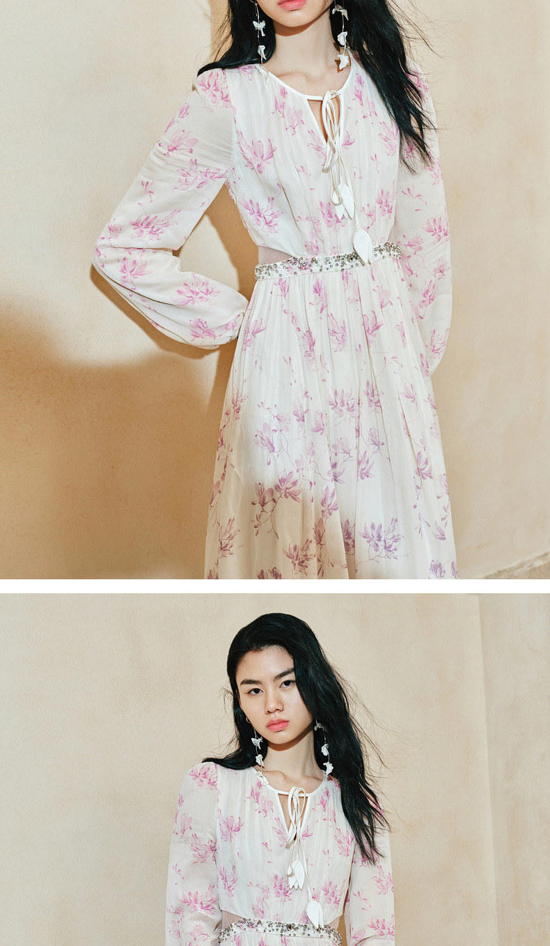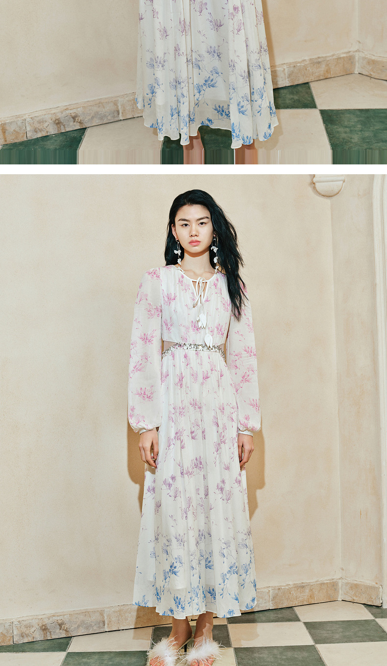 【东方玉兰-商场同款】MAXRIENY复古优雅兰花渐变印花连衣裙2024(货号:MC85DR059)