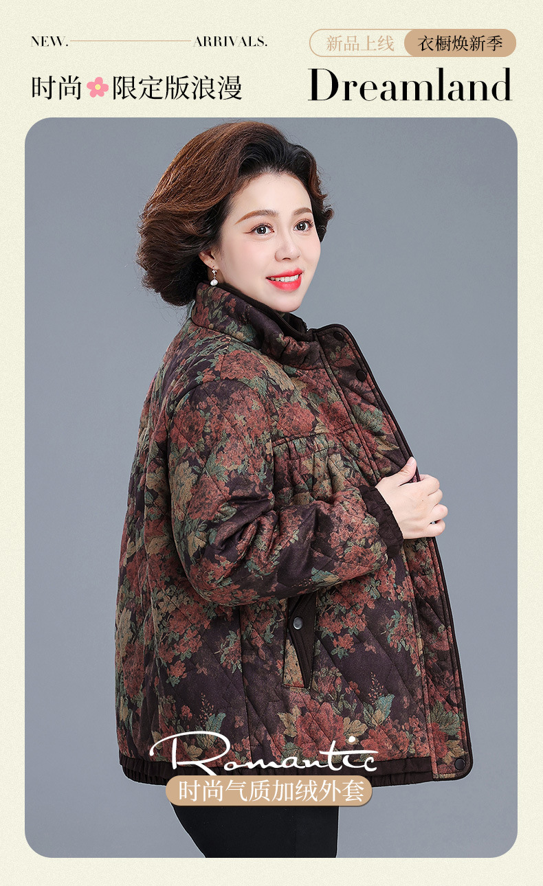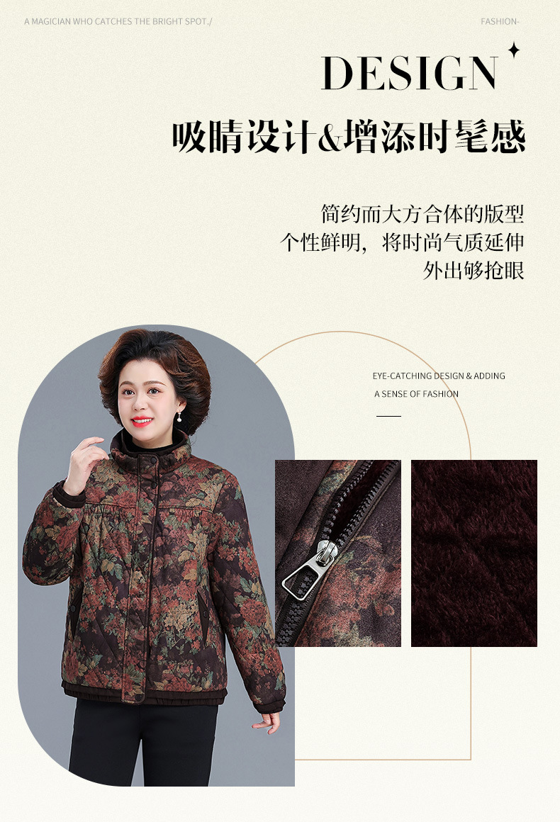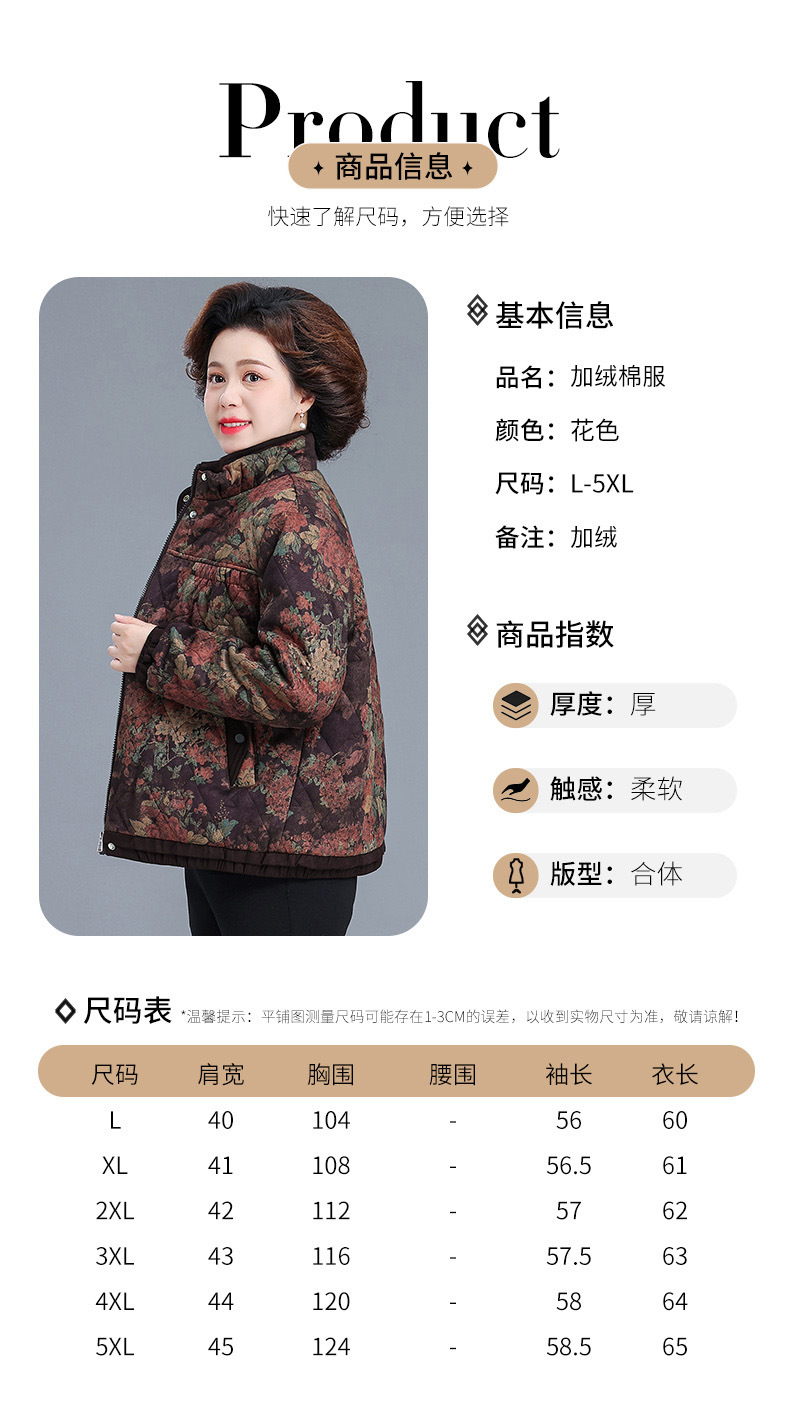 XYFC-559冬装外套加绒加厚中老年女秋冬花棉袄洋气妈妈冬季棉衣