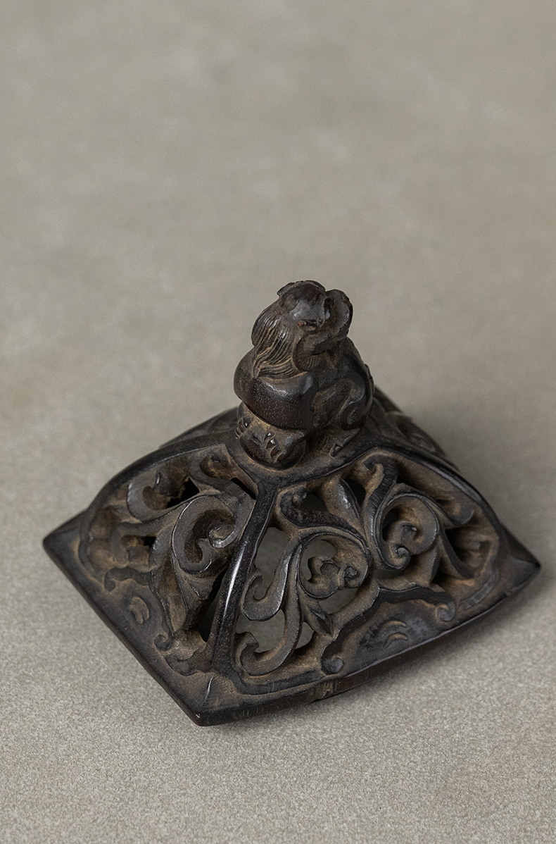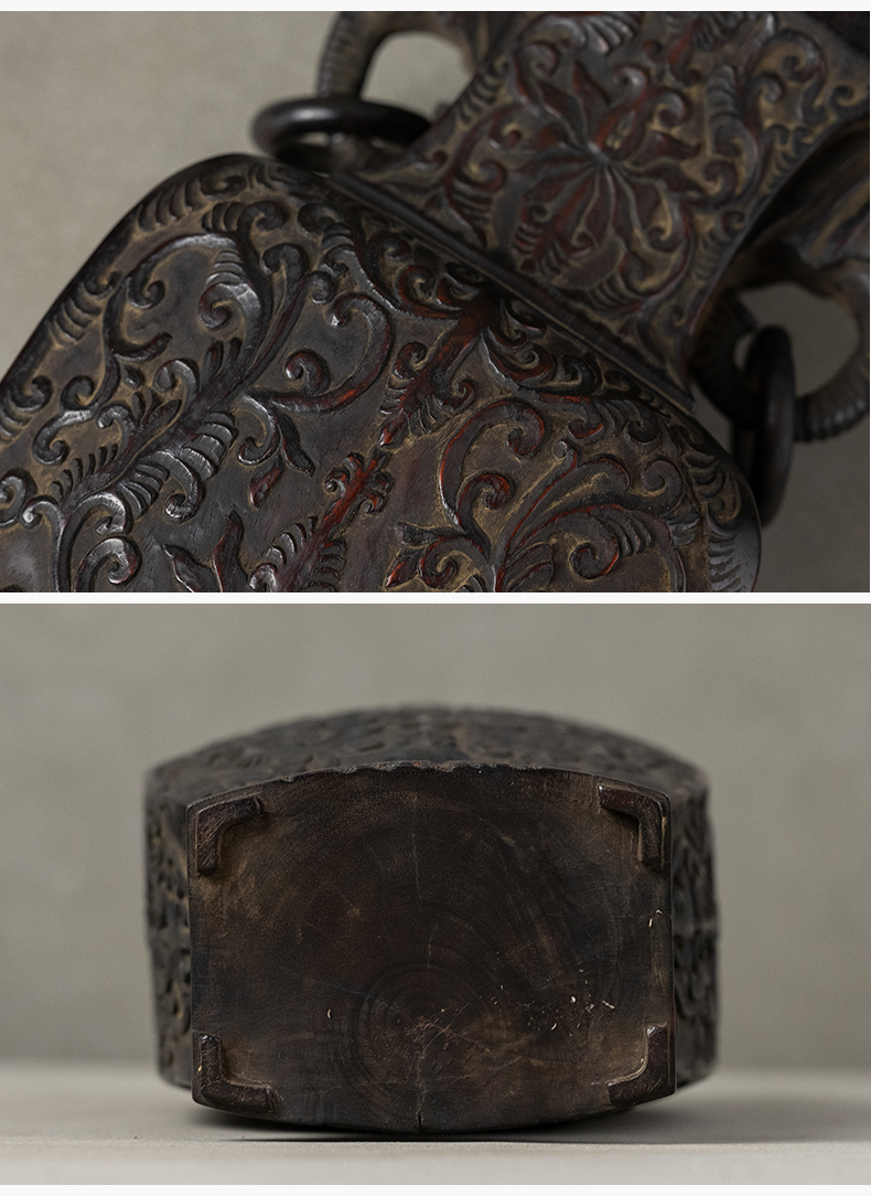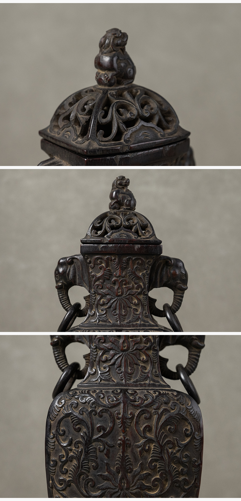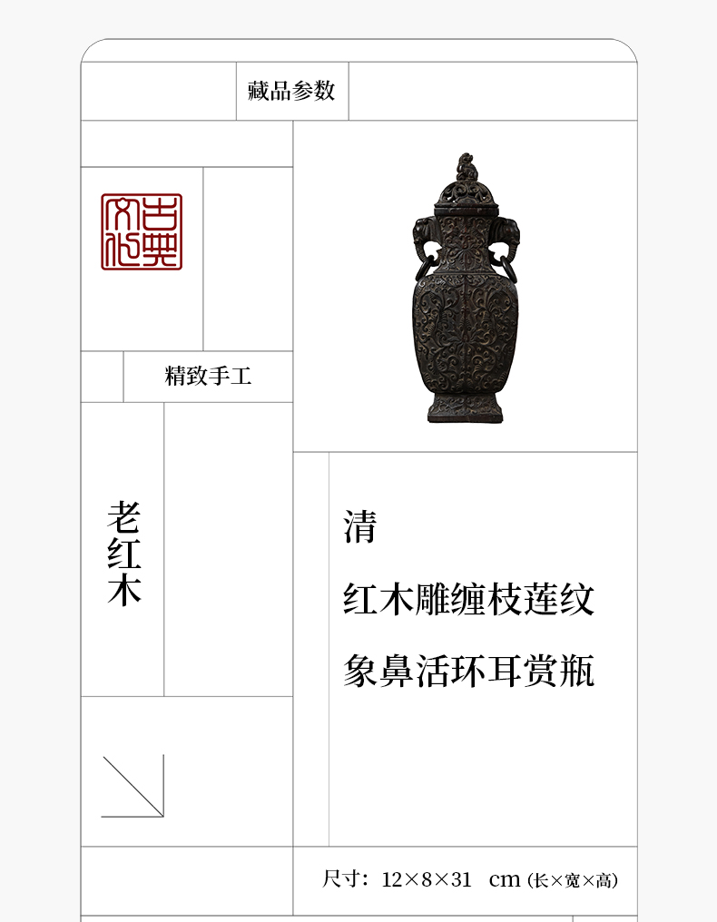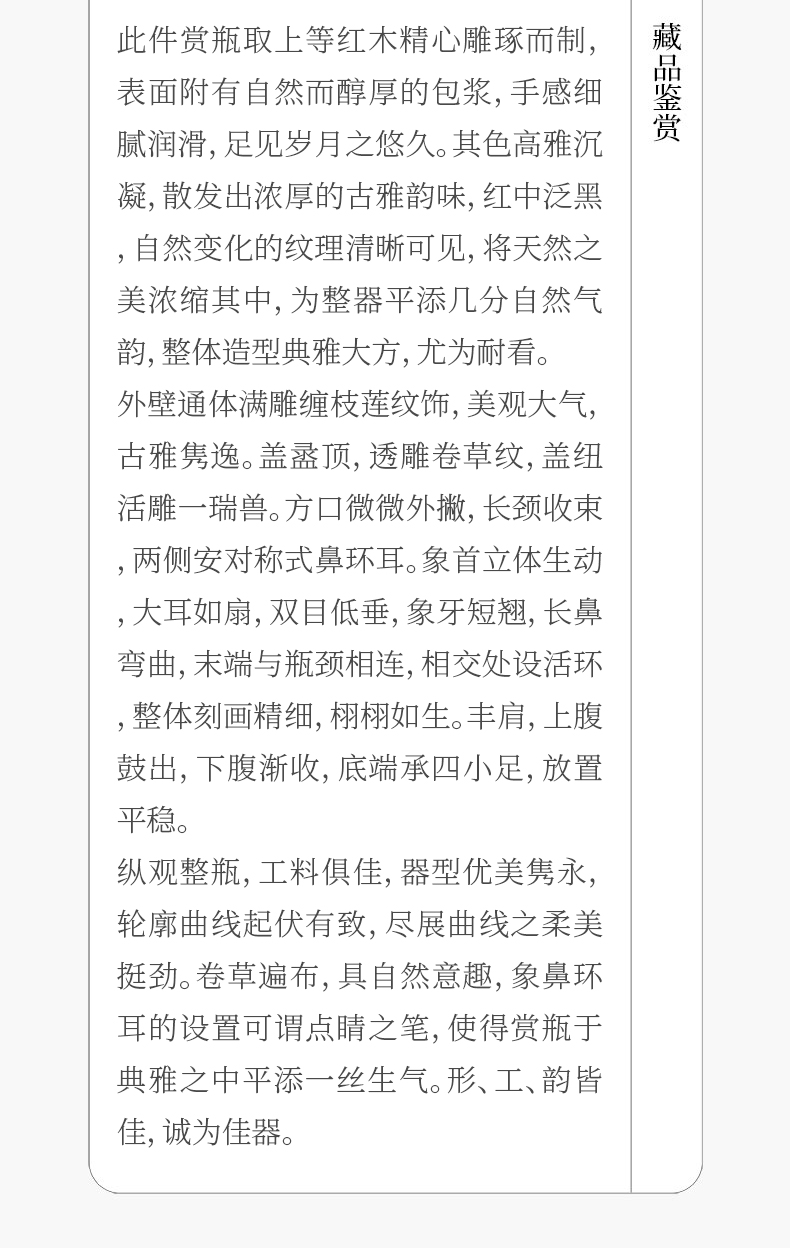 清 红木雕缠枝莲纹象鼻活环耳赏瓶