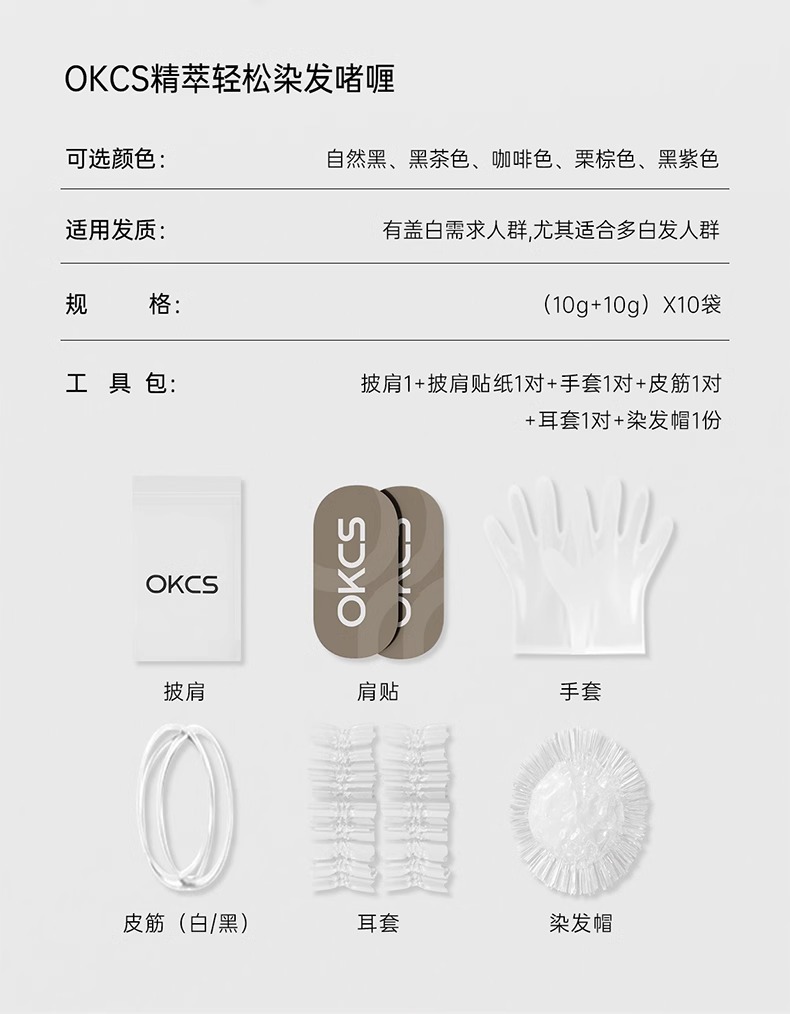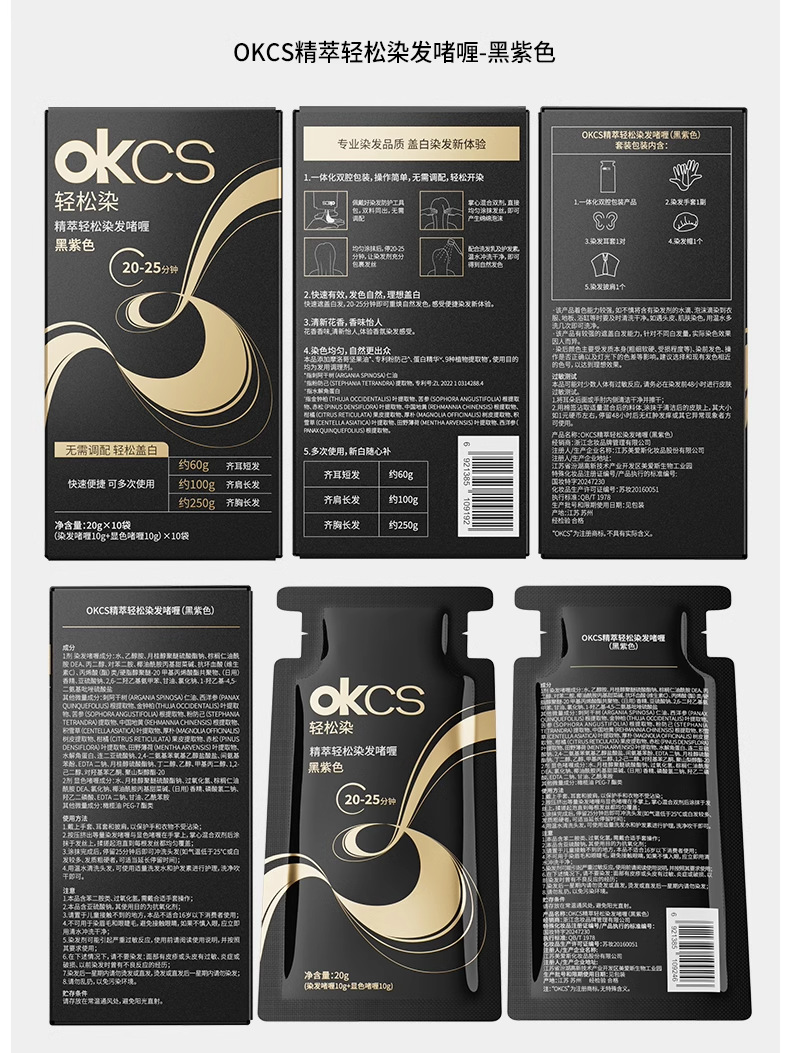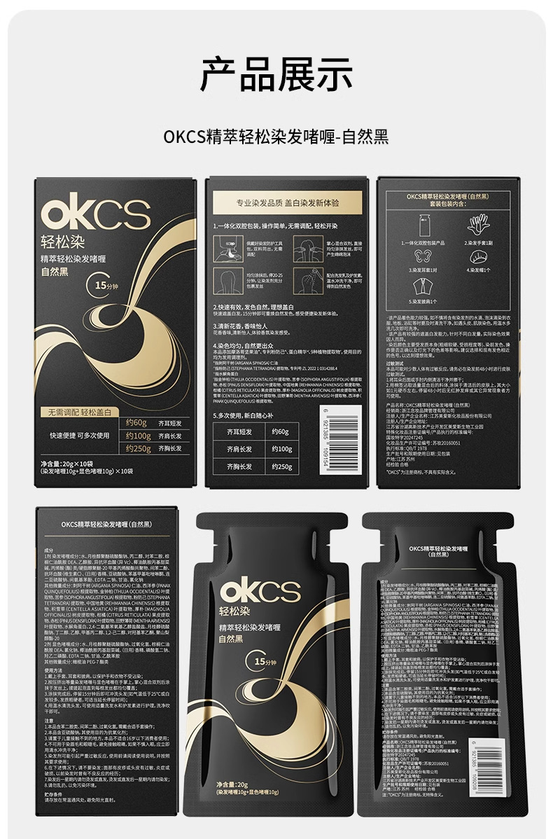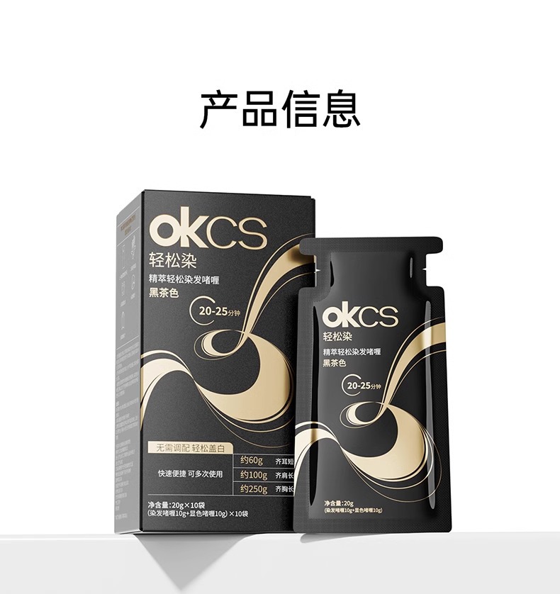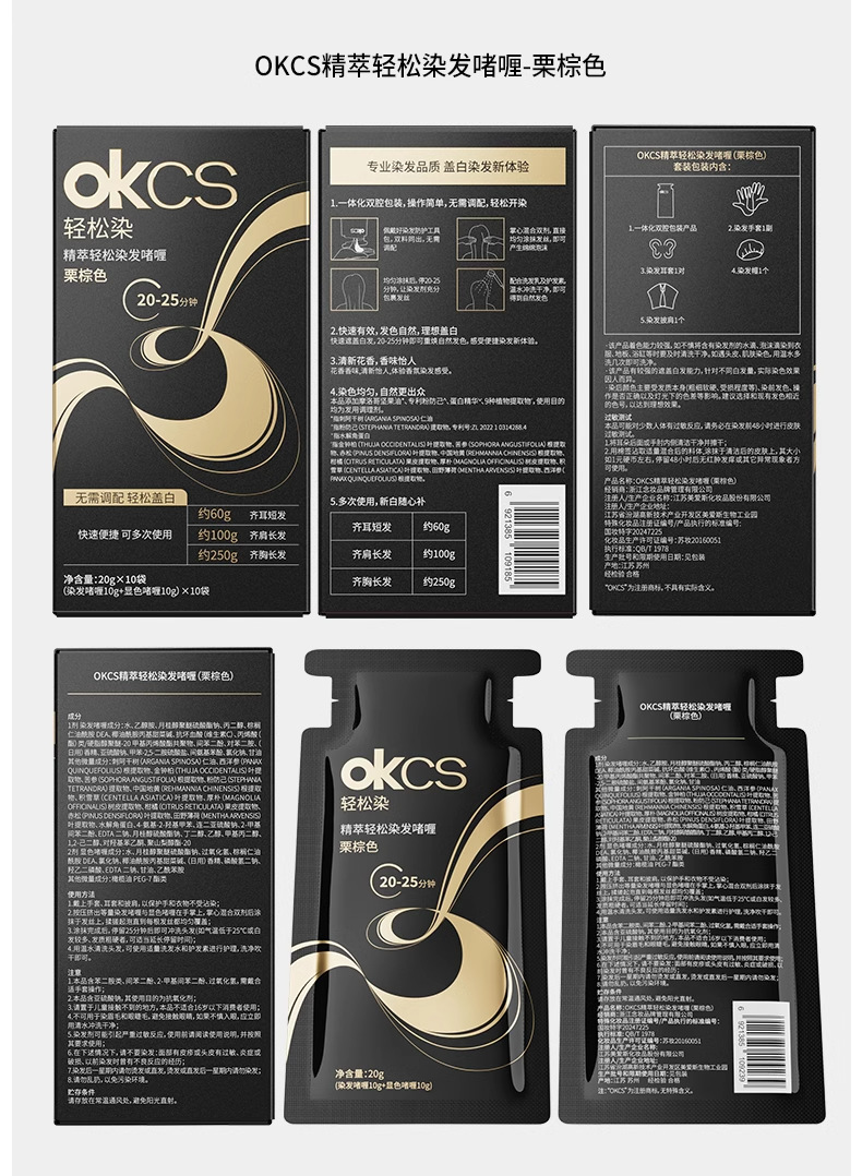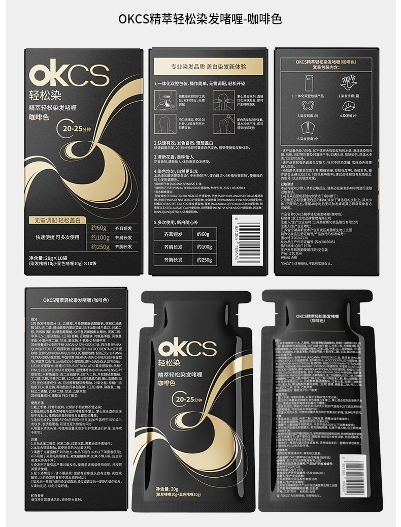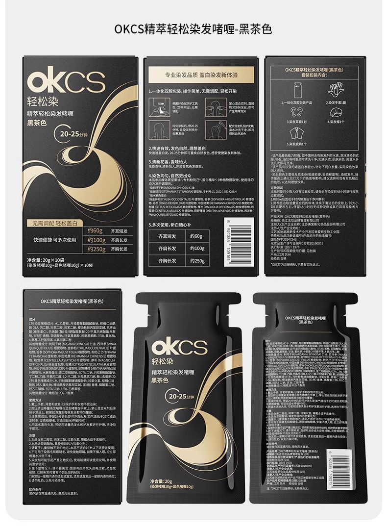 【快速盖白,轻松染发~】OKCS精粹轻松染发膏剂袋装 植物无氨配方自然黑黑茶色 实力遮盖白发男女通用-QA
