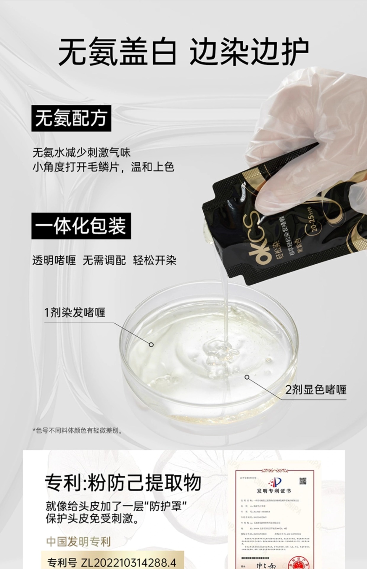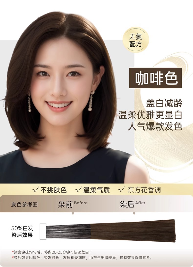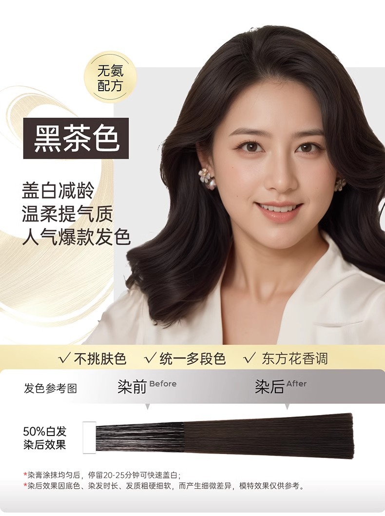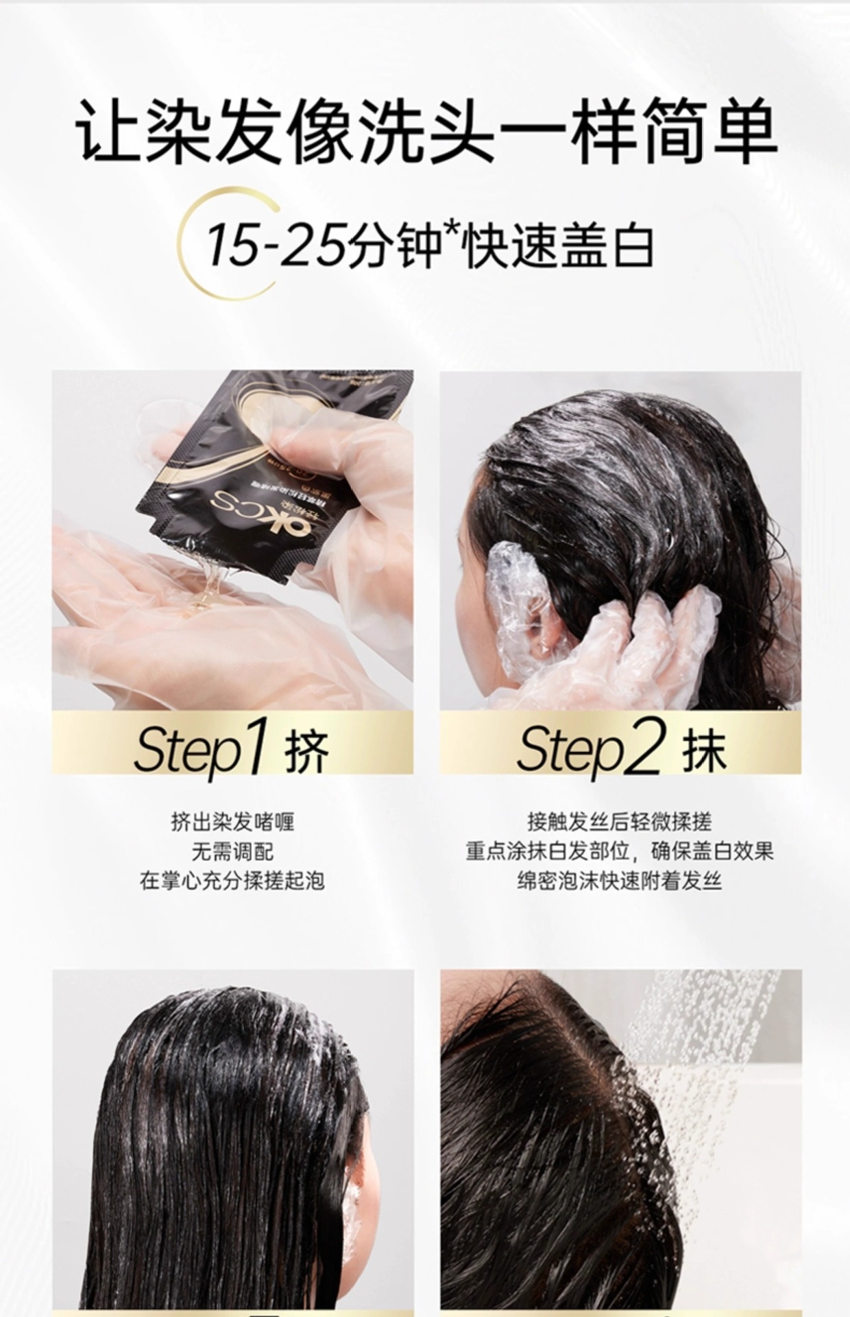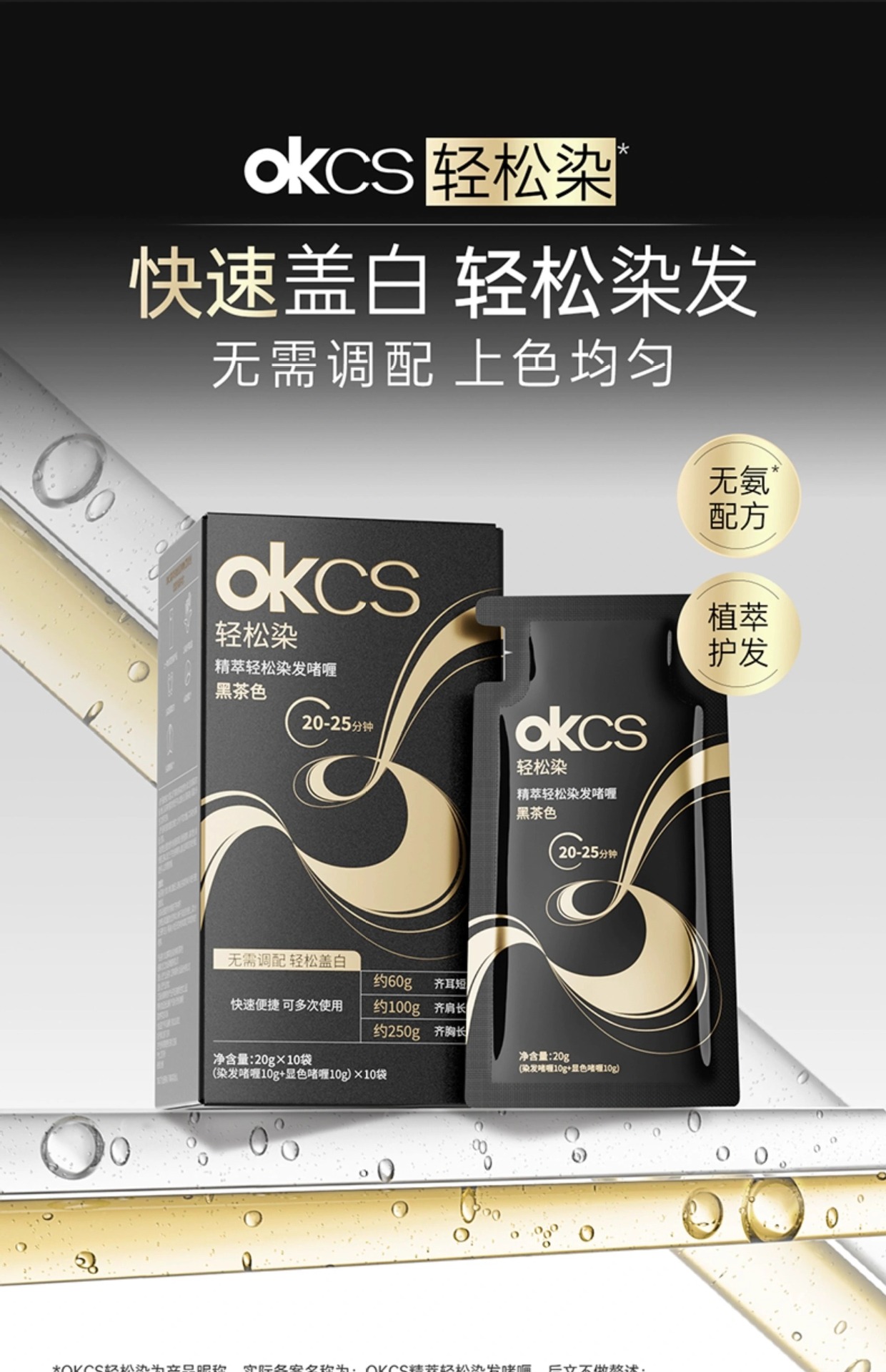 【快速盖白,轻松染发~】OKCS精粹轻松染发膏剂袋装 植物无氨配方自然黑黑茶色 实力遮盖白发男女通用-QA