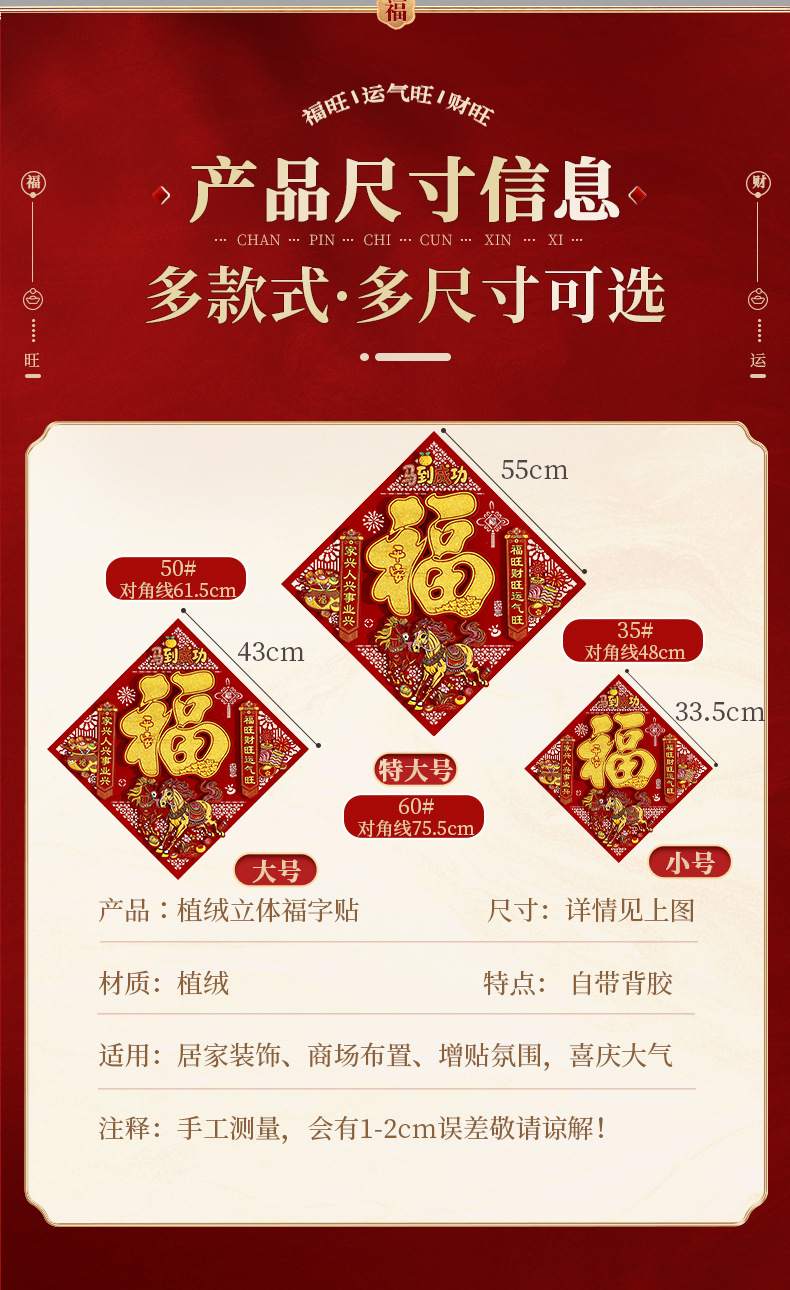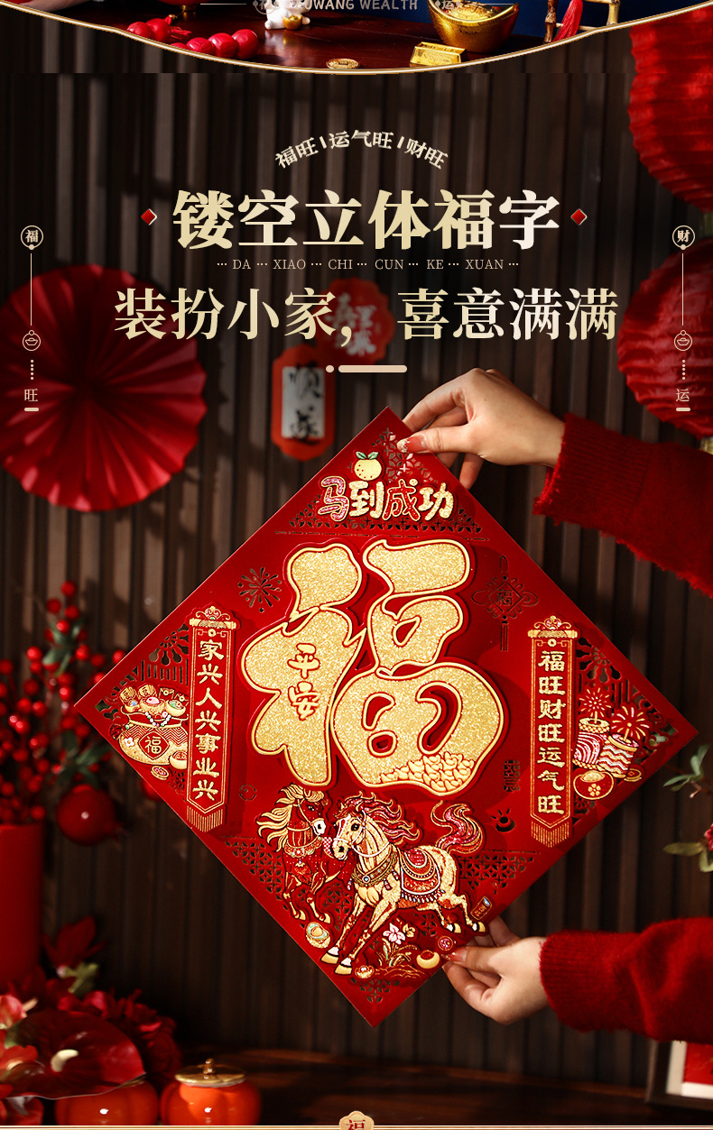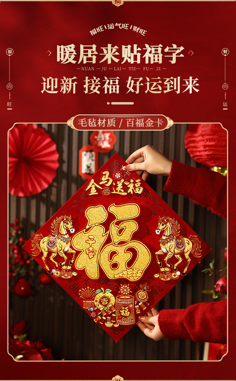 【喜气洋洋接福来❗️喜庆氛围轻松营造】2026新年新款立体福字贴马年门贴过年春节喜庆贴纸新春装饰品。jc