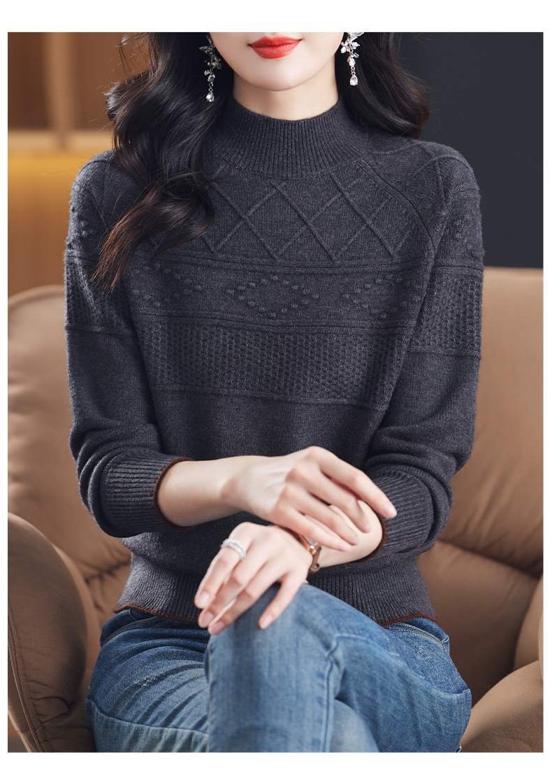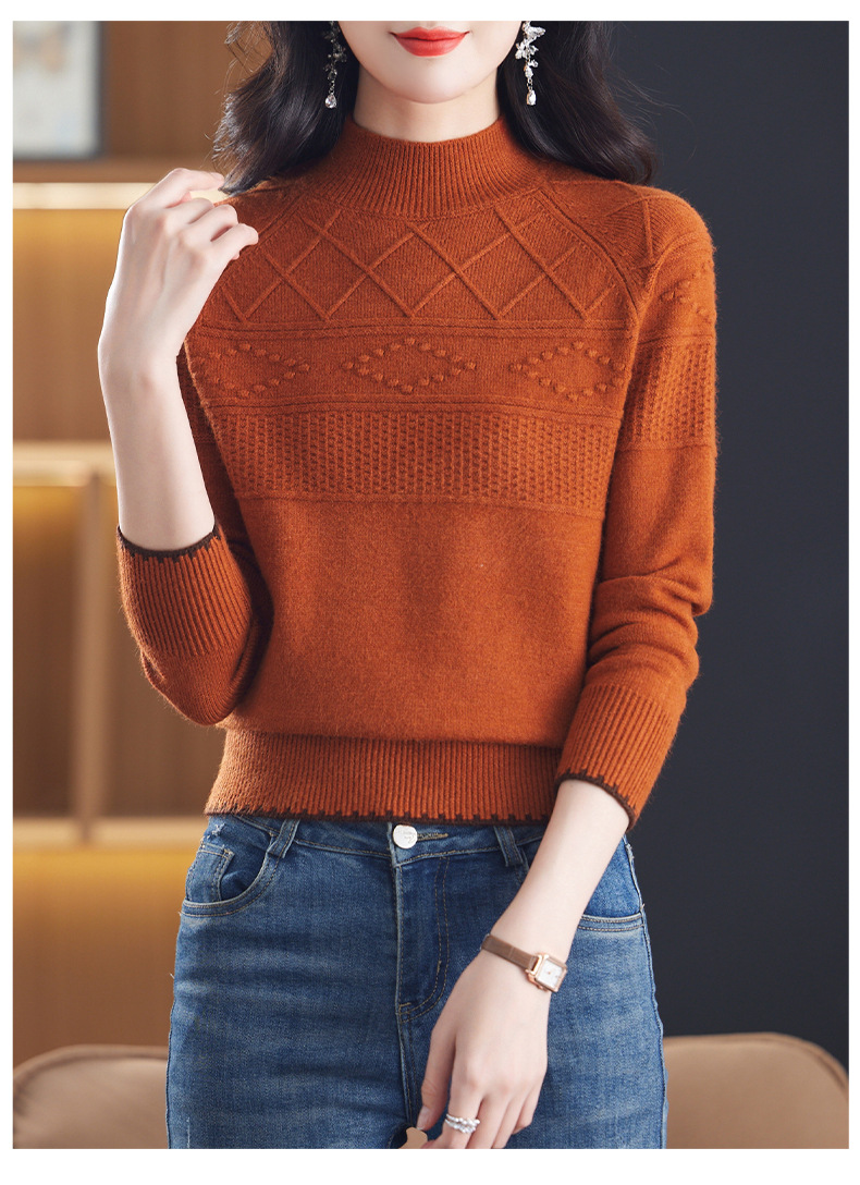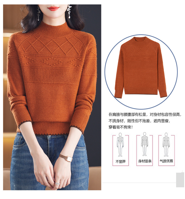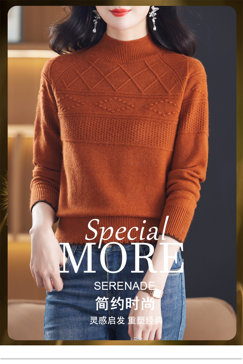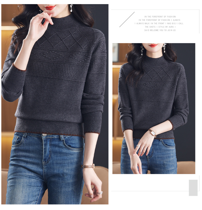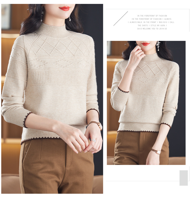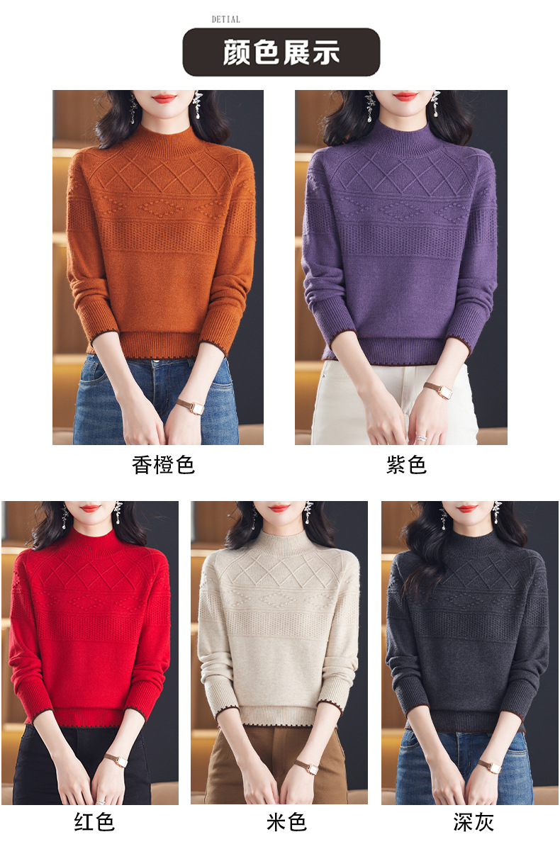 CC-101-82049半高领毛衣女秋冬打底衫2024年新款洋气冬季宽松内搭羊毛上衣潮