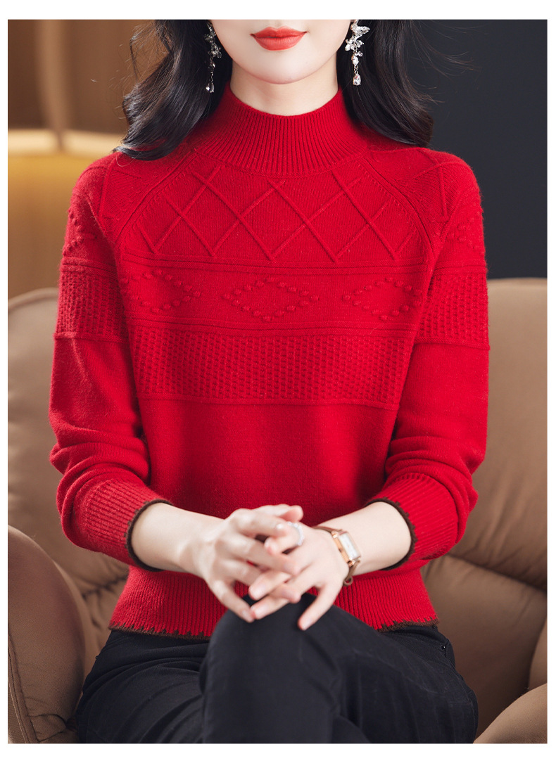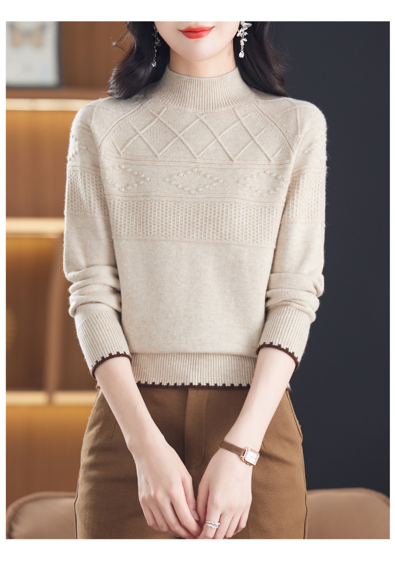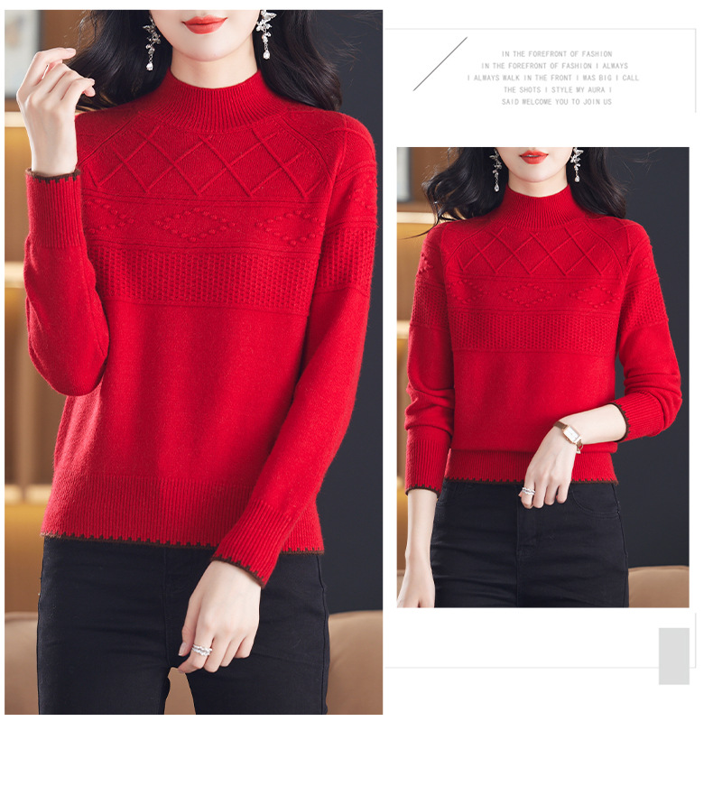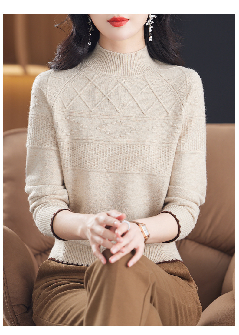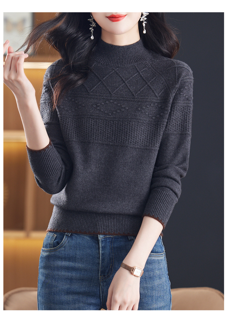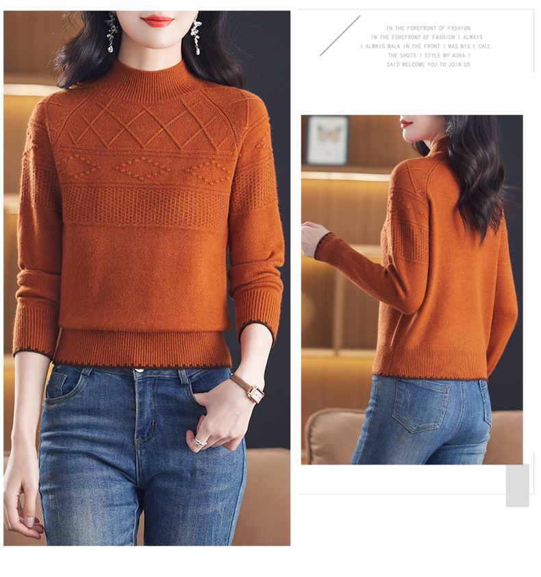 CC-101-82049半高领毛衣女秋冬打底衫2024年新款洋气冬季宽松内搭羊毛上衣潮