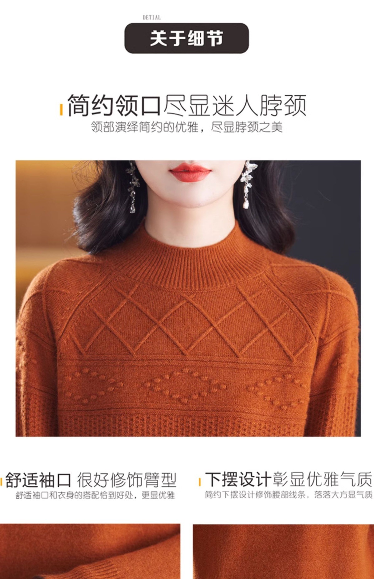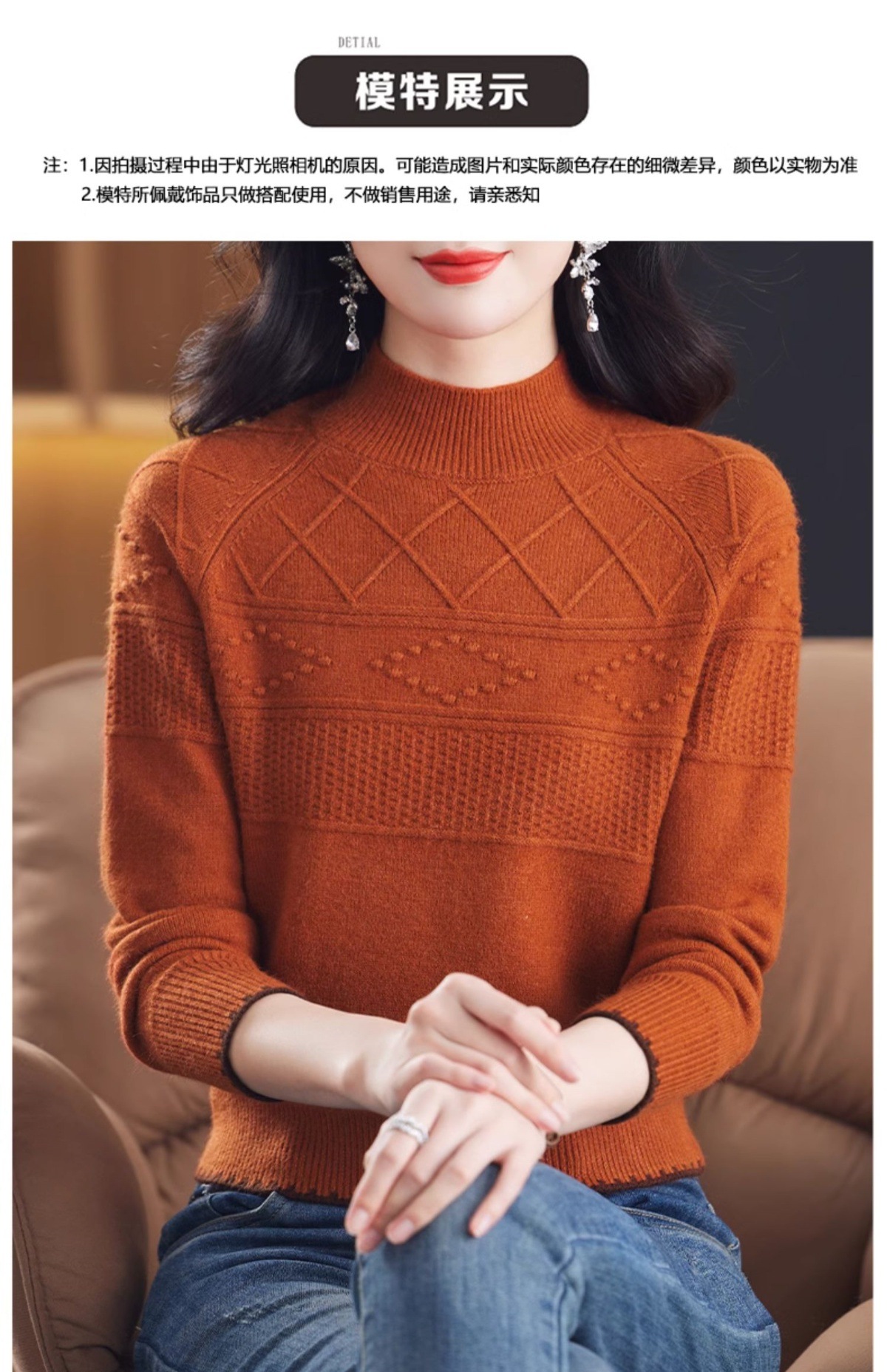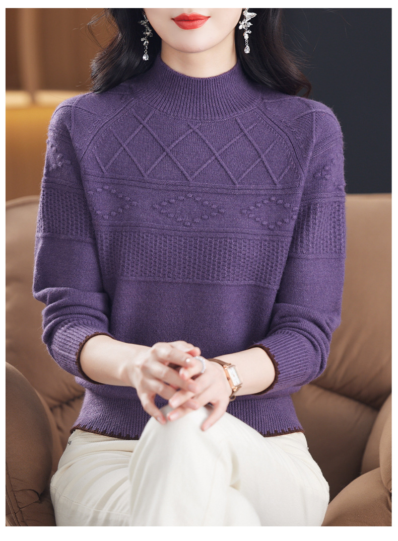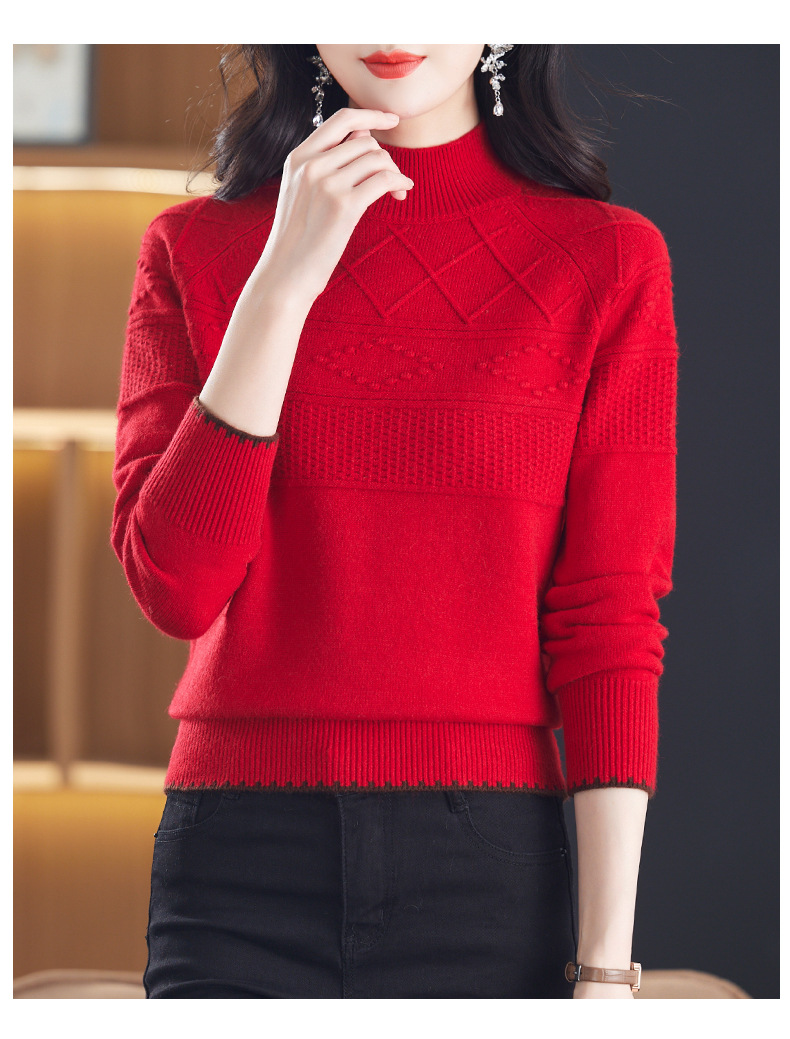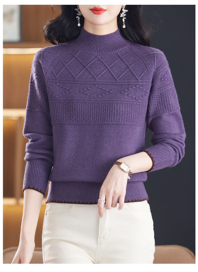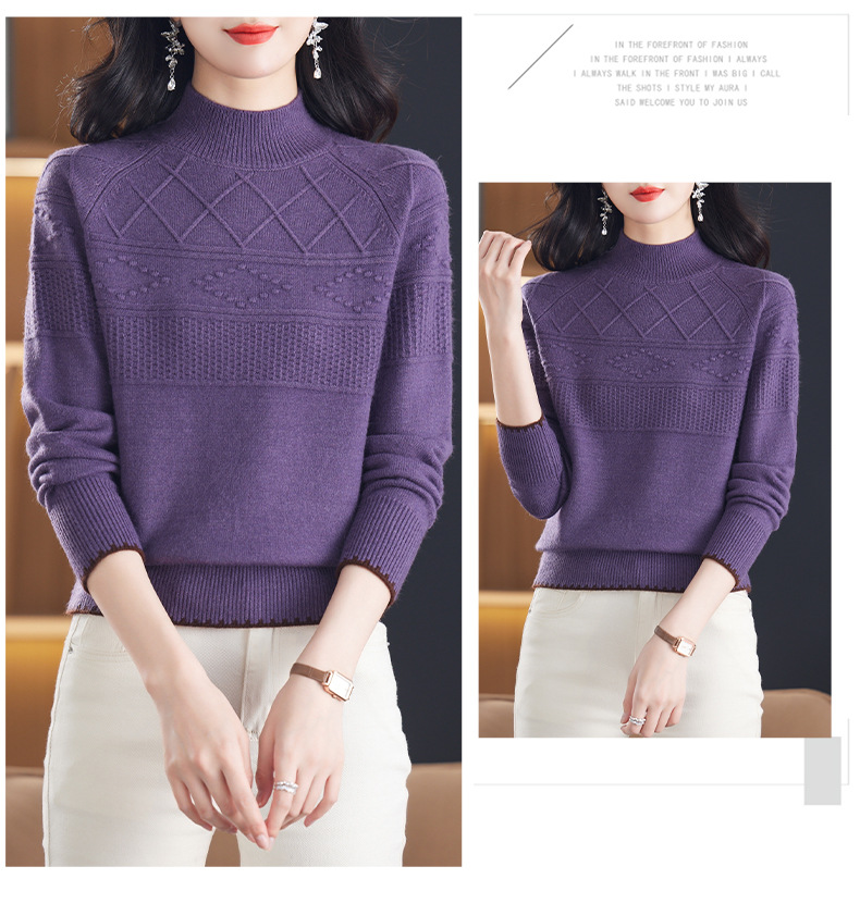 CC-101-82049半高领毛衣女秋冬打底衫2024年新款洋气冬季宽松内搭羊毛上衣潮