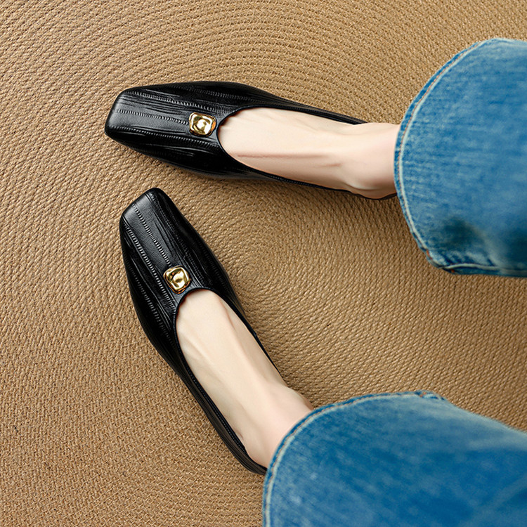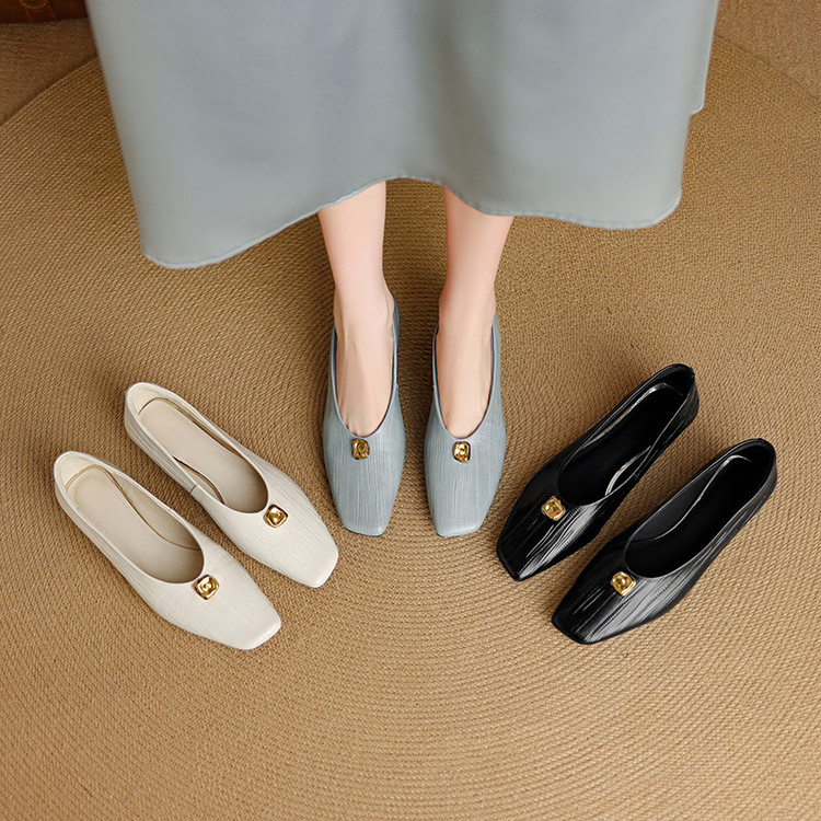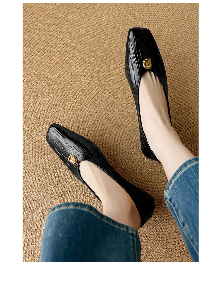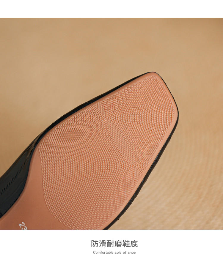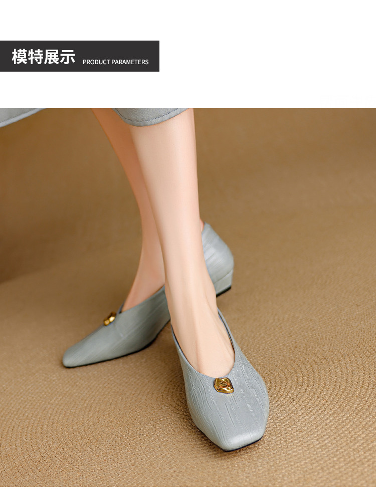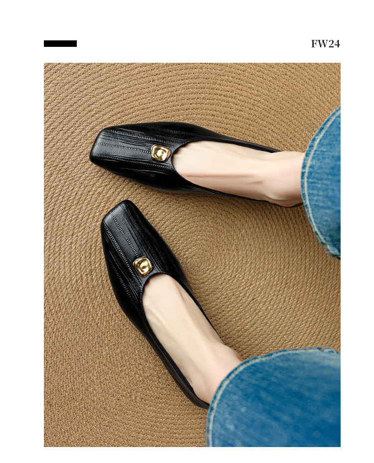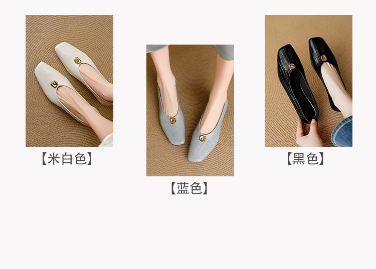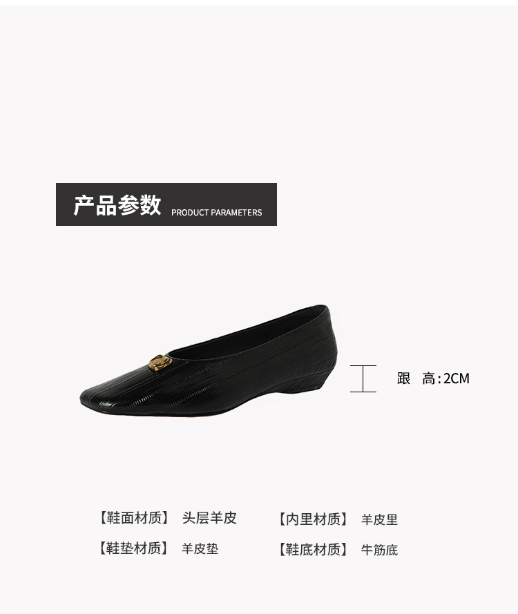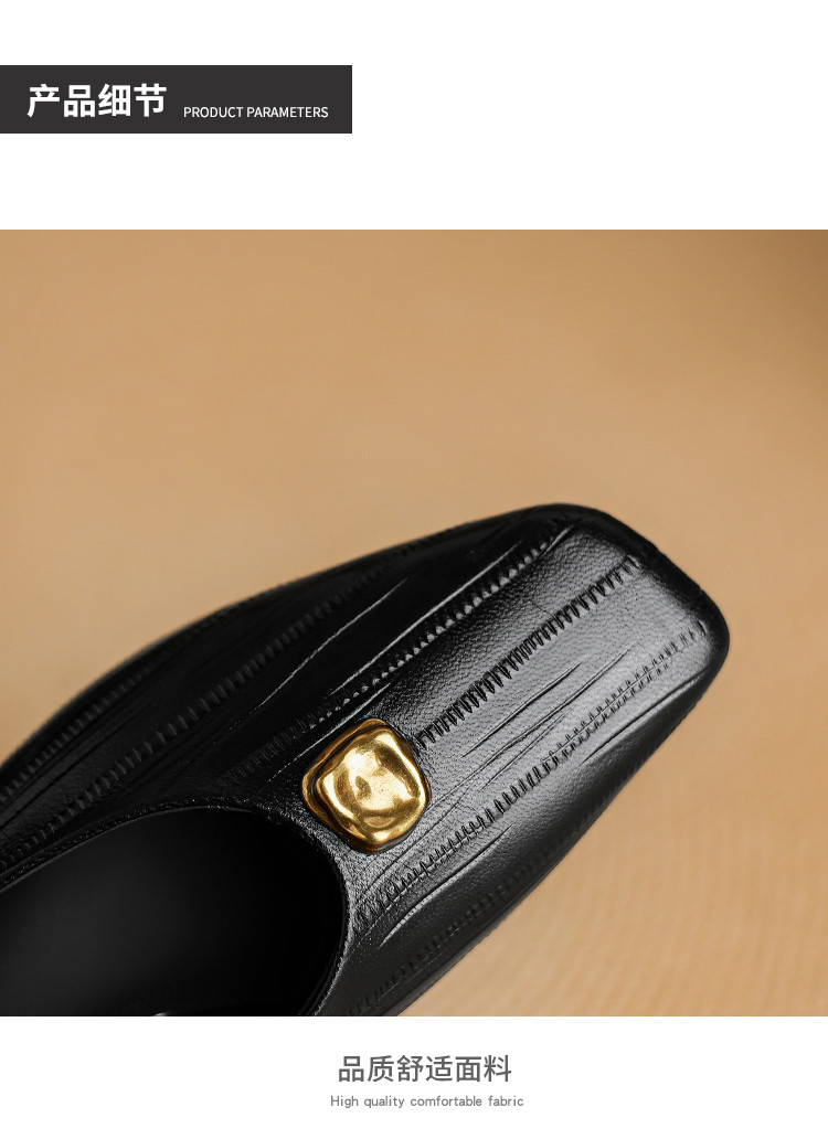 【预售5天】法式通勤羊皮方头V口百搭低跟金属扣一脚蹬玛丽珍小皮鞋女NJMK&K1560