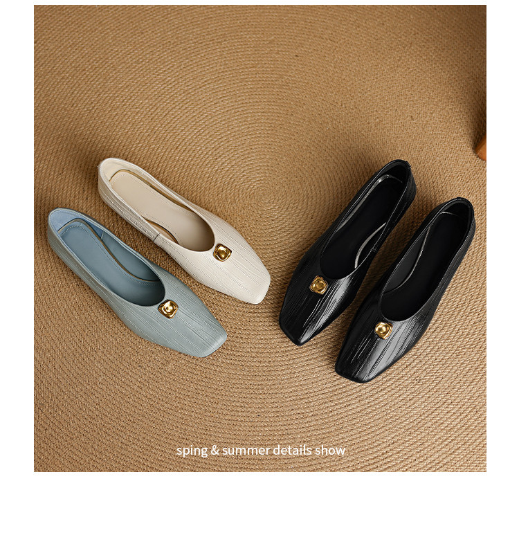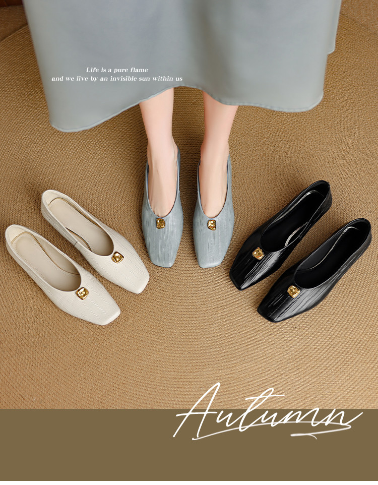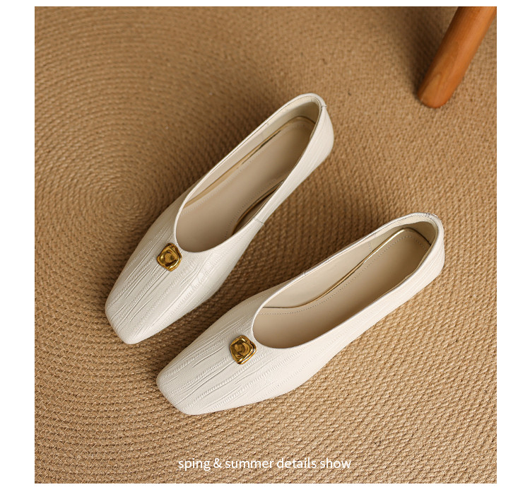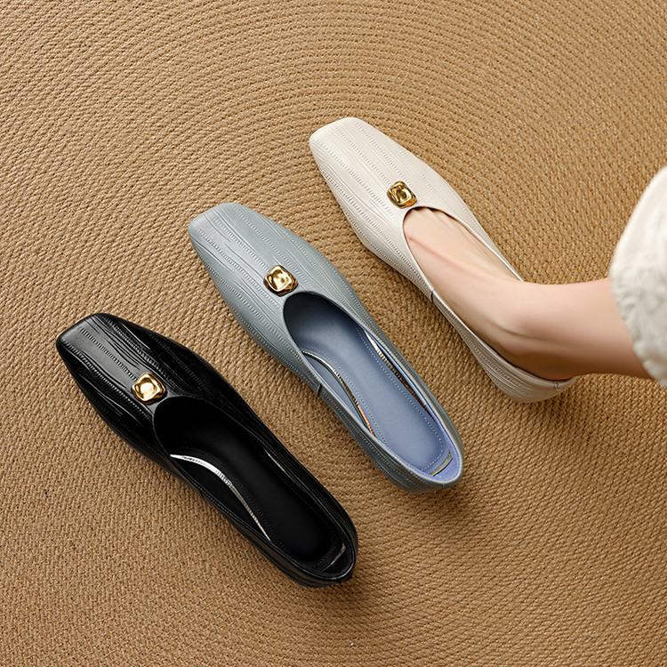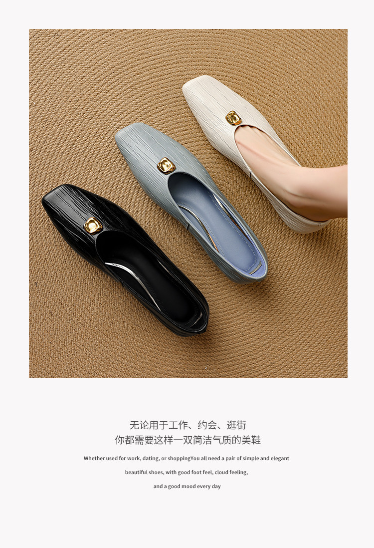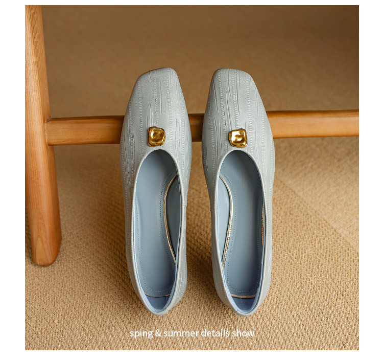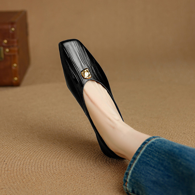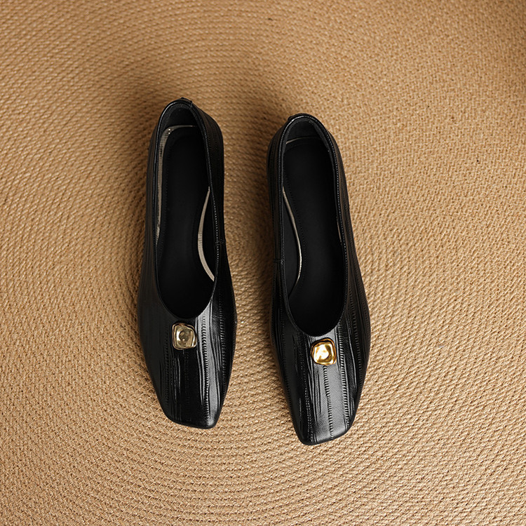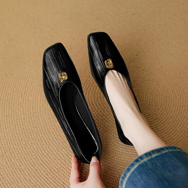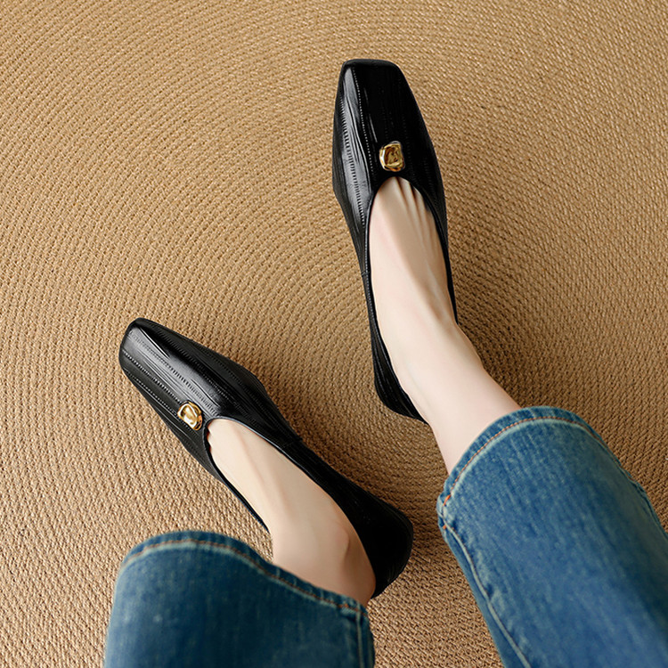 【预售5天】法式通勤羊皮方头V口百搭低跟金属扣一脚蹬玛丽珍小皮鞋女NJMK&K1560