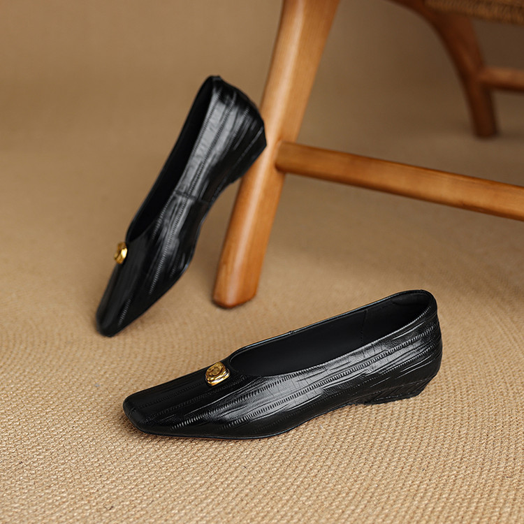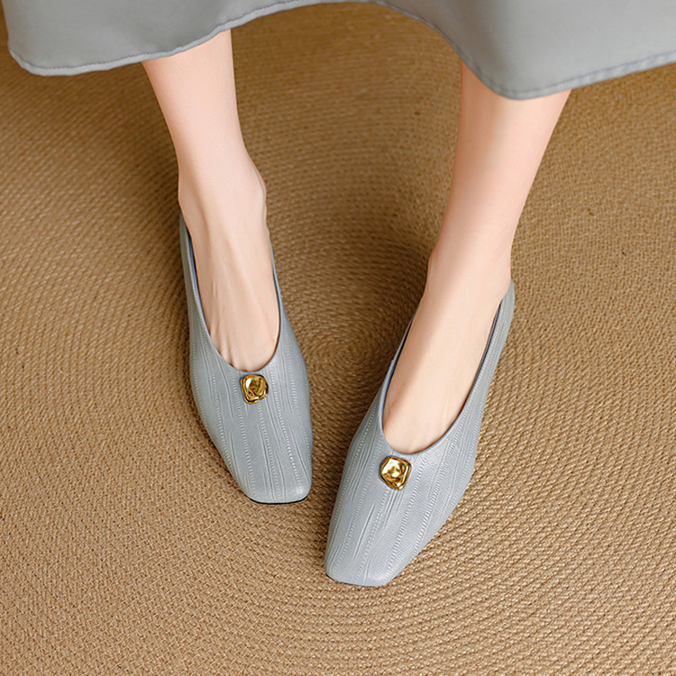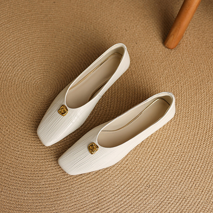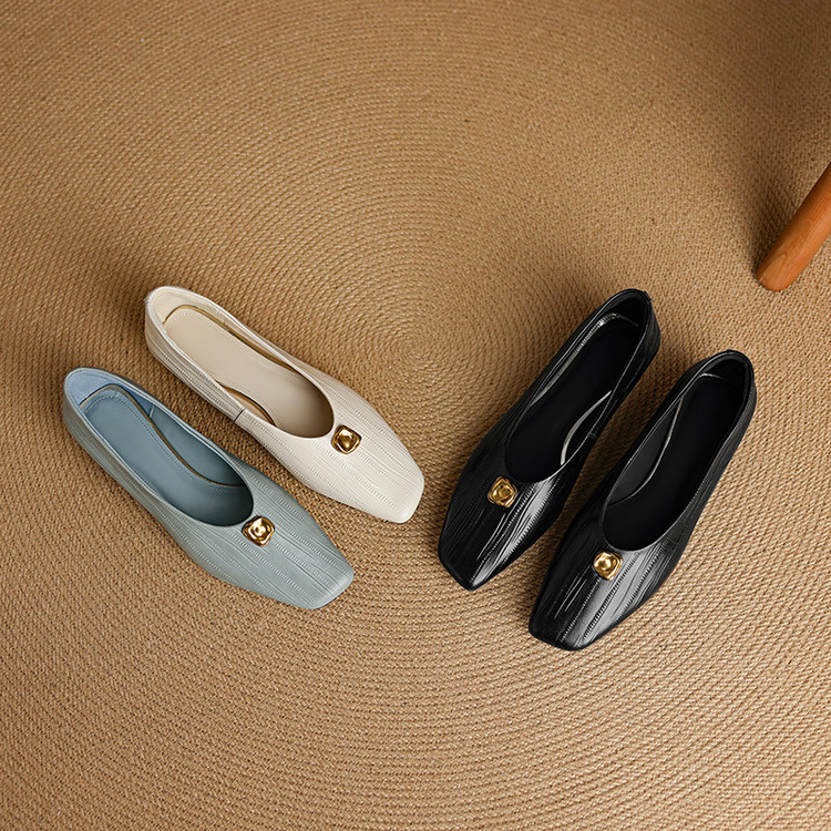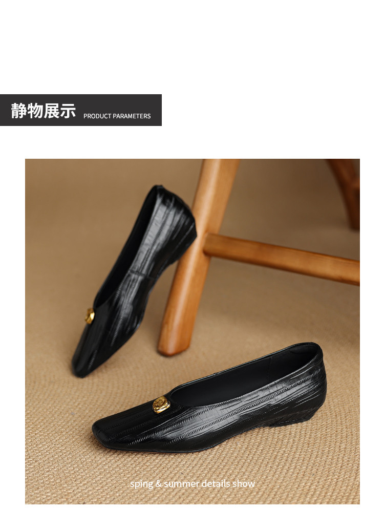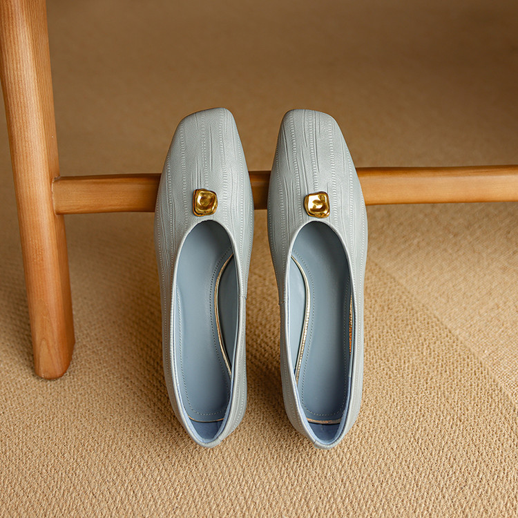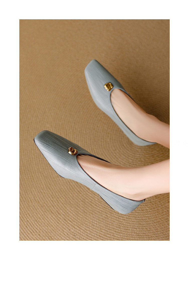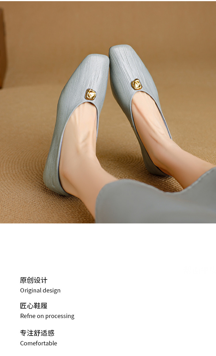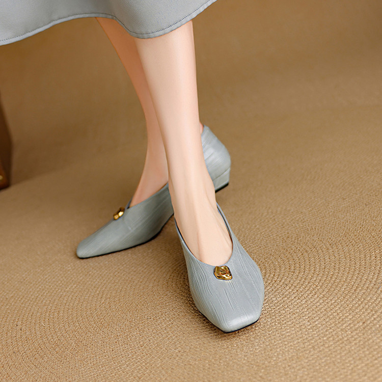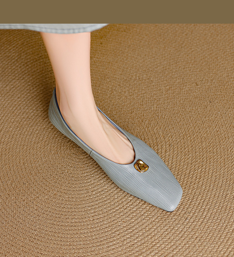 【预售5天】法式通勤羊皮方头V口百搭低跟金属扣一脚蹬玛丽珍小皮鞋女NJMK&K1560