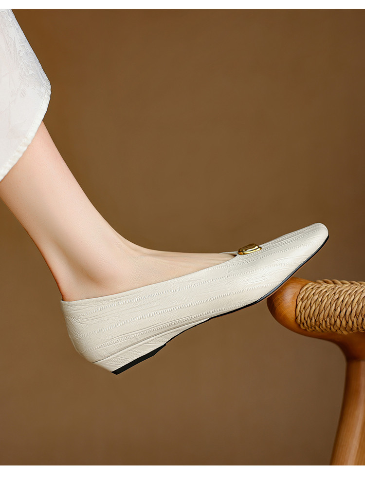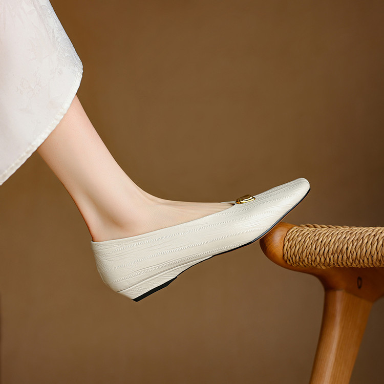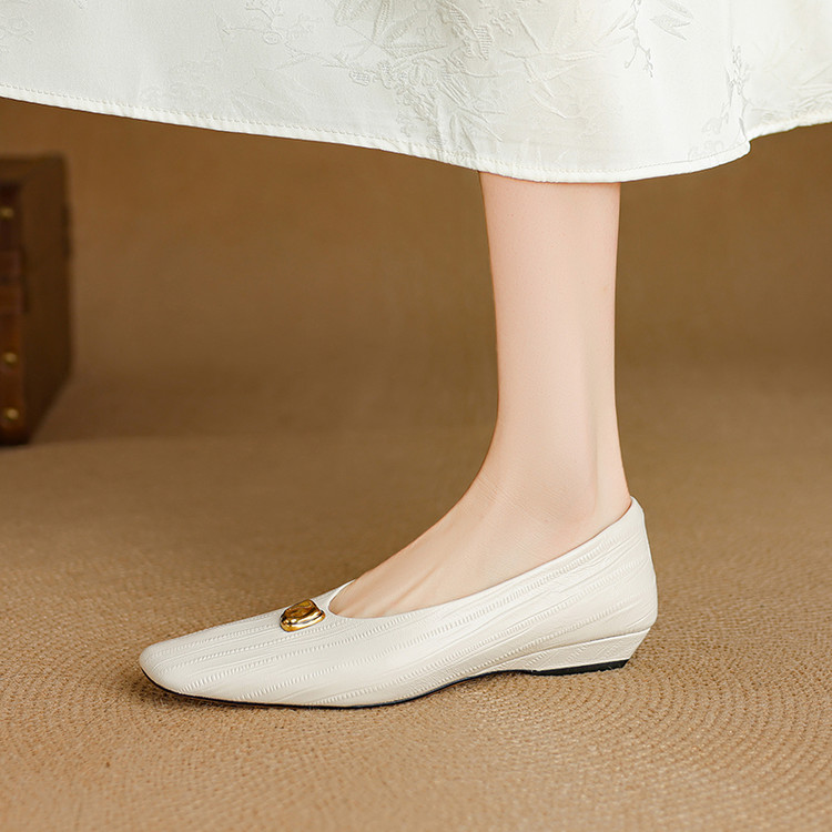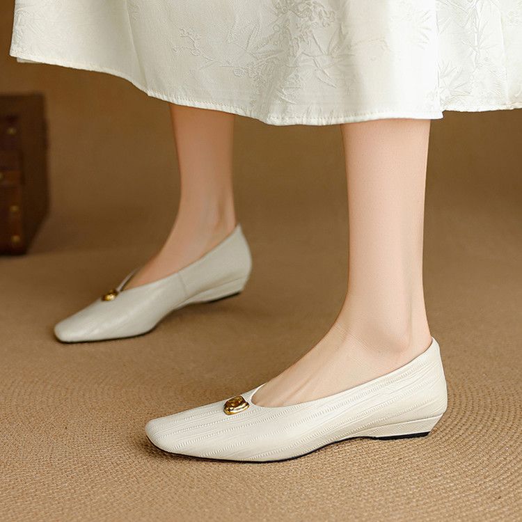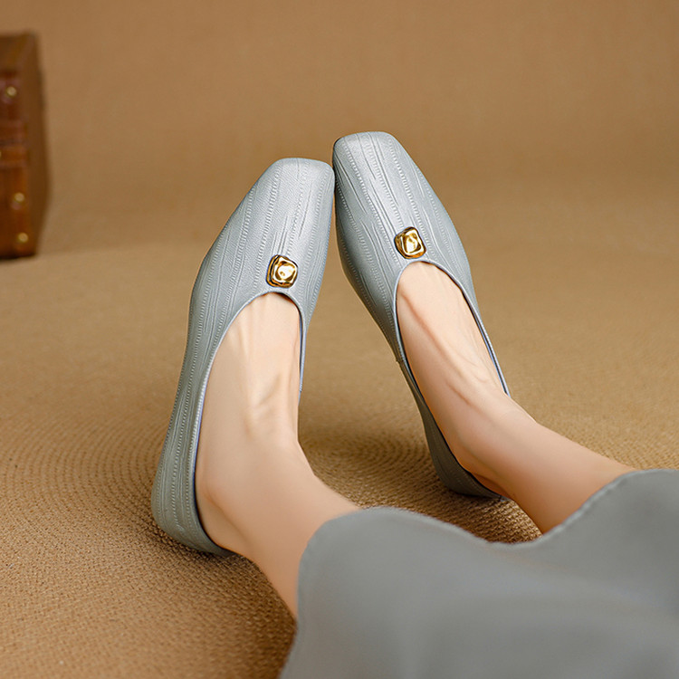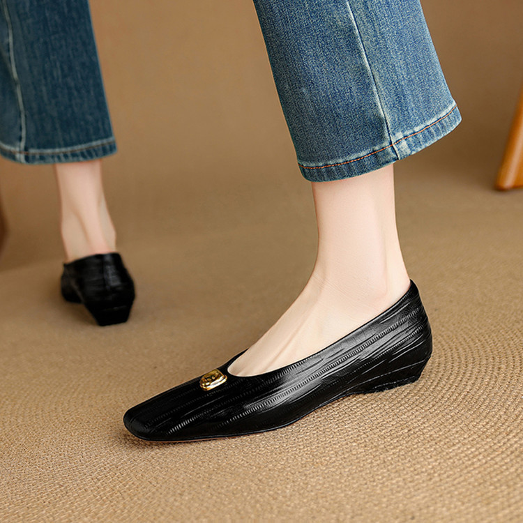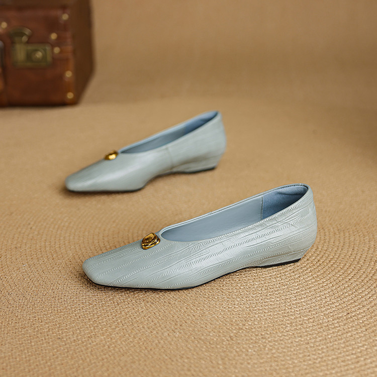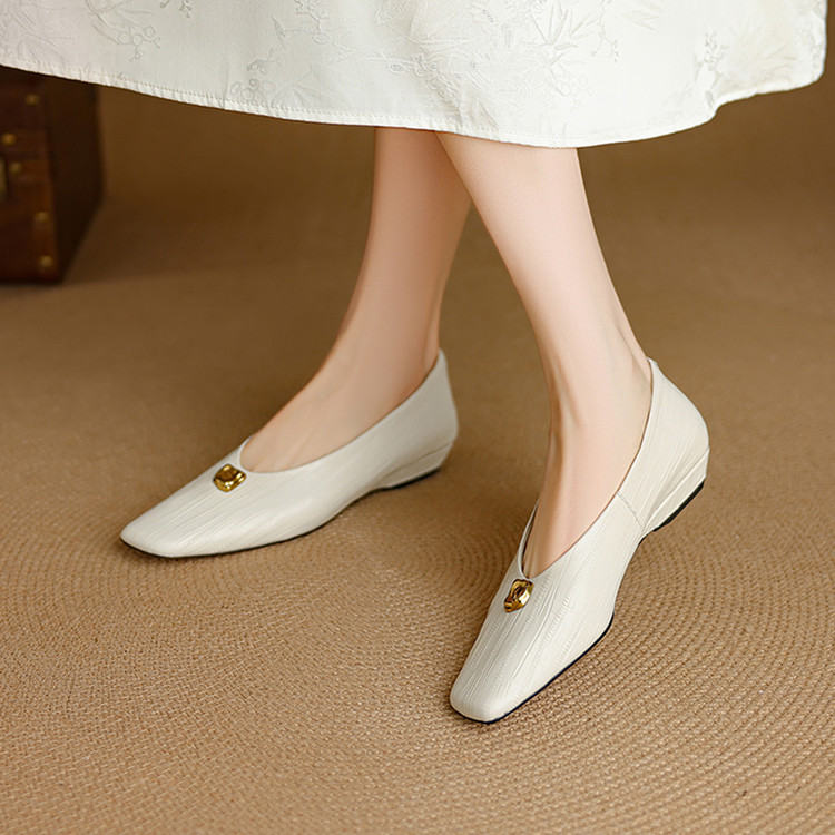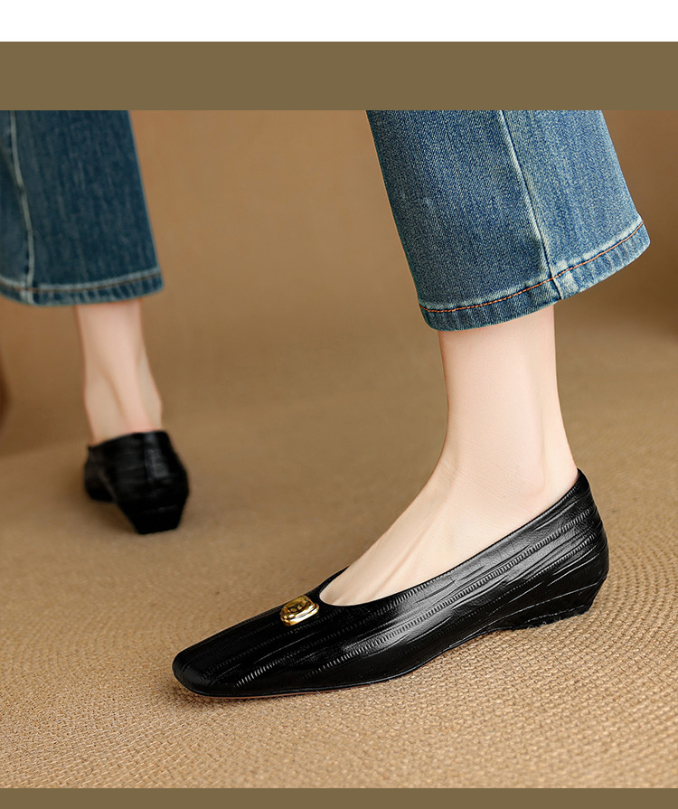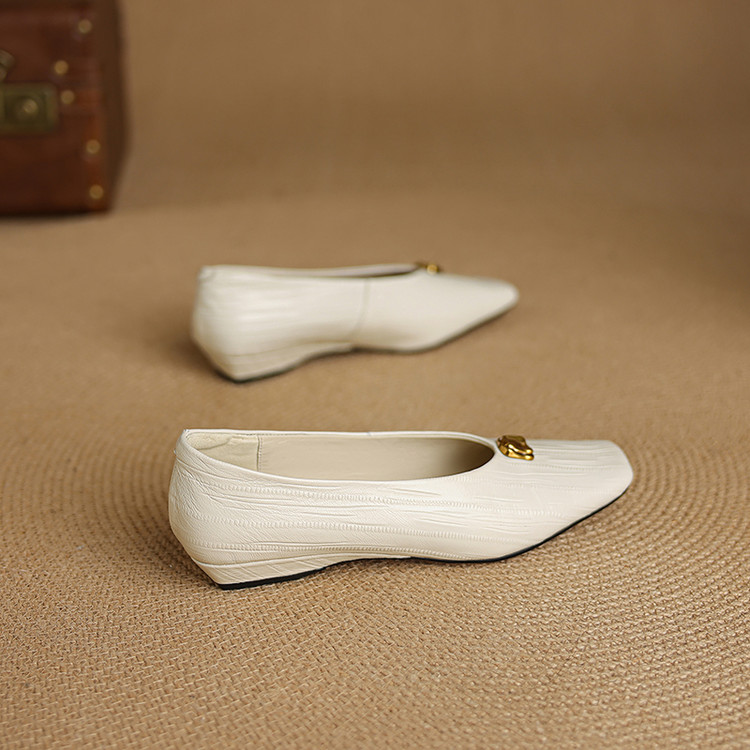 【预售5天】法式通勤羊皮方头V口百搭低跟金属扣一脚蹬玛丽珍小皮鞋女NJMK&K1560