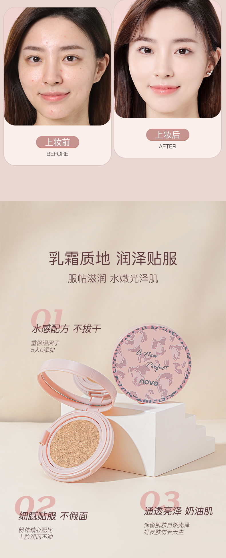 【团购秒杀】NOVO水光焕颜凝脂气垫霜 遮瑕保湿控油防水防汗不脱妆粉底