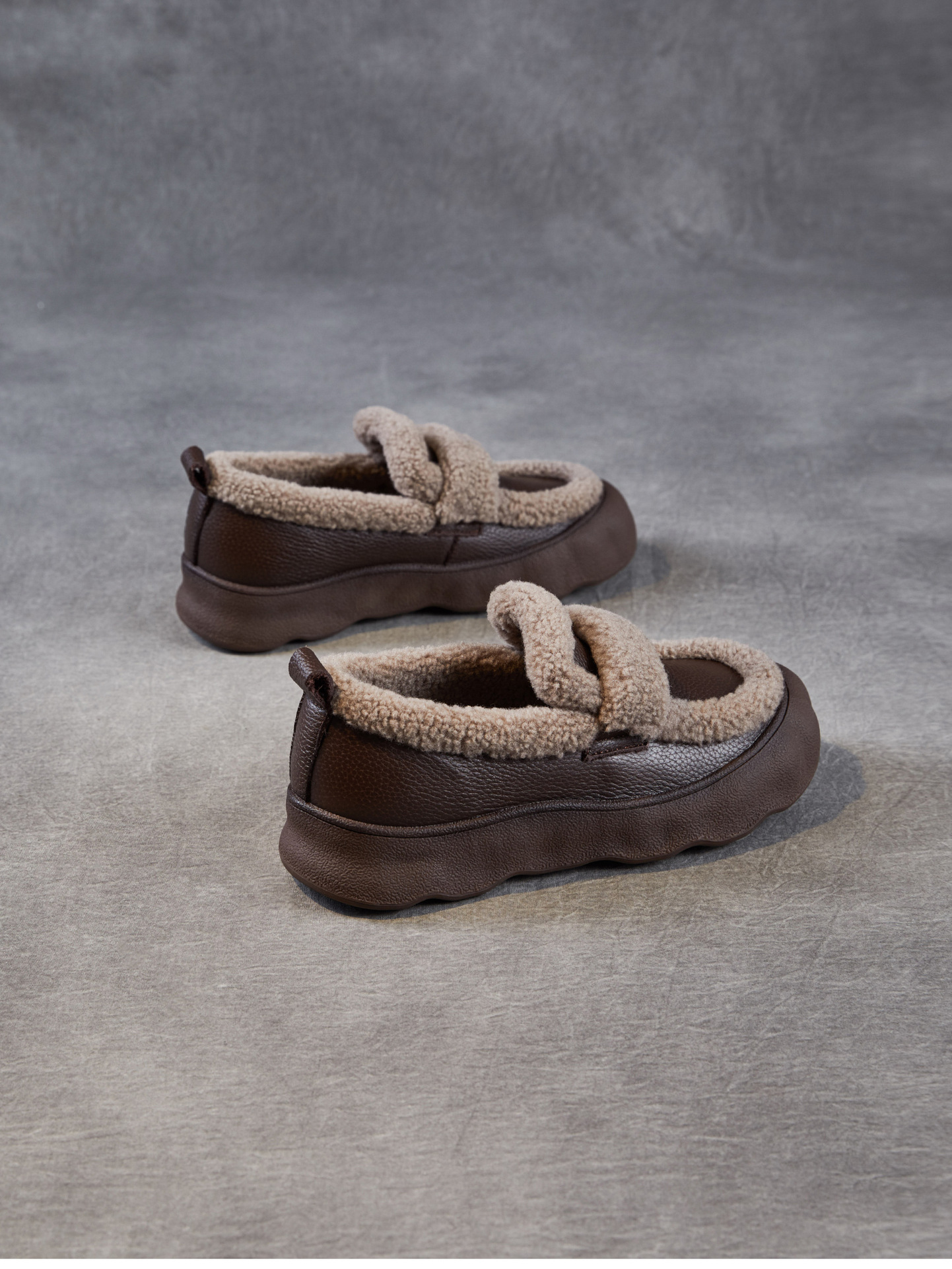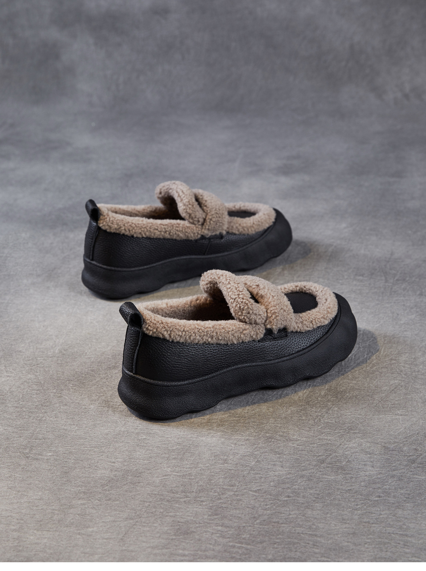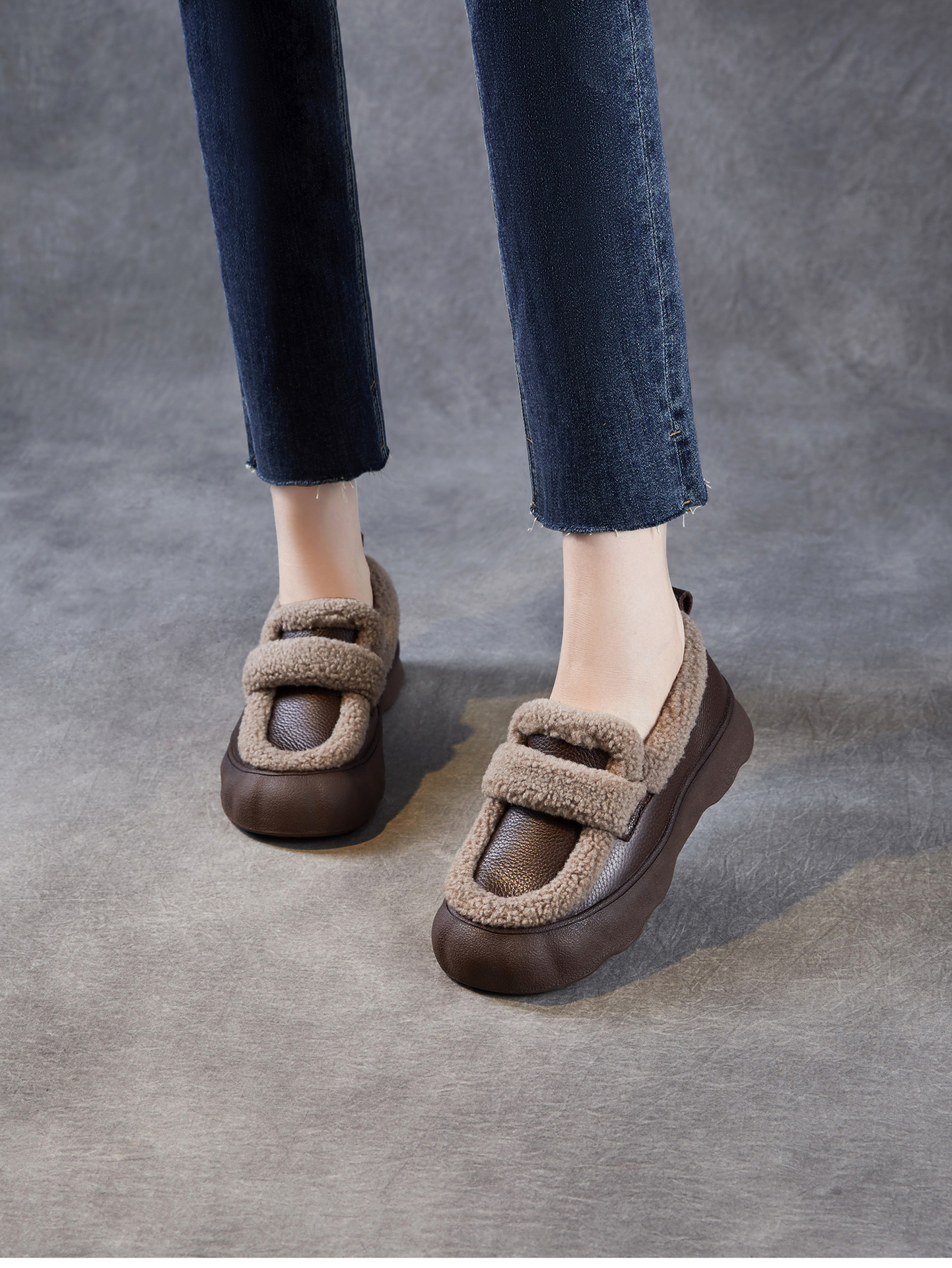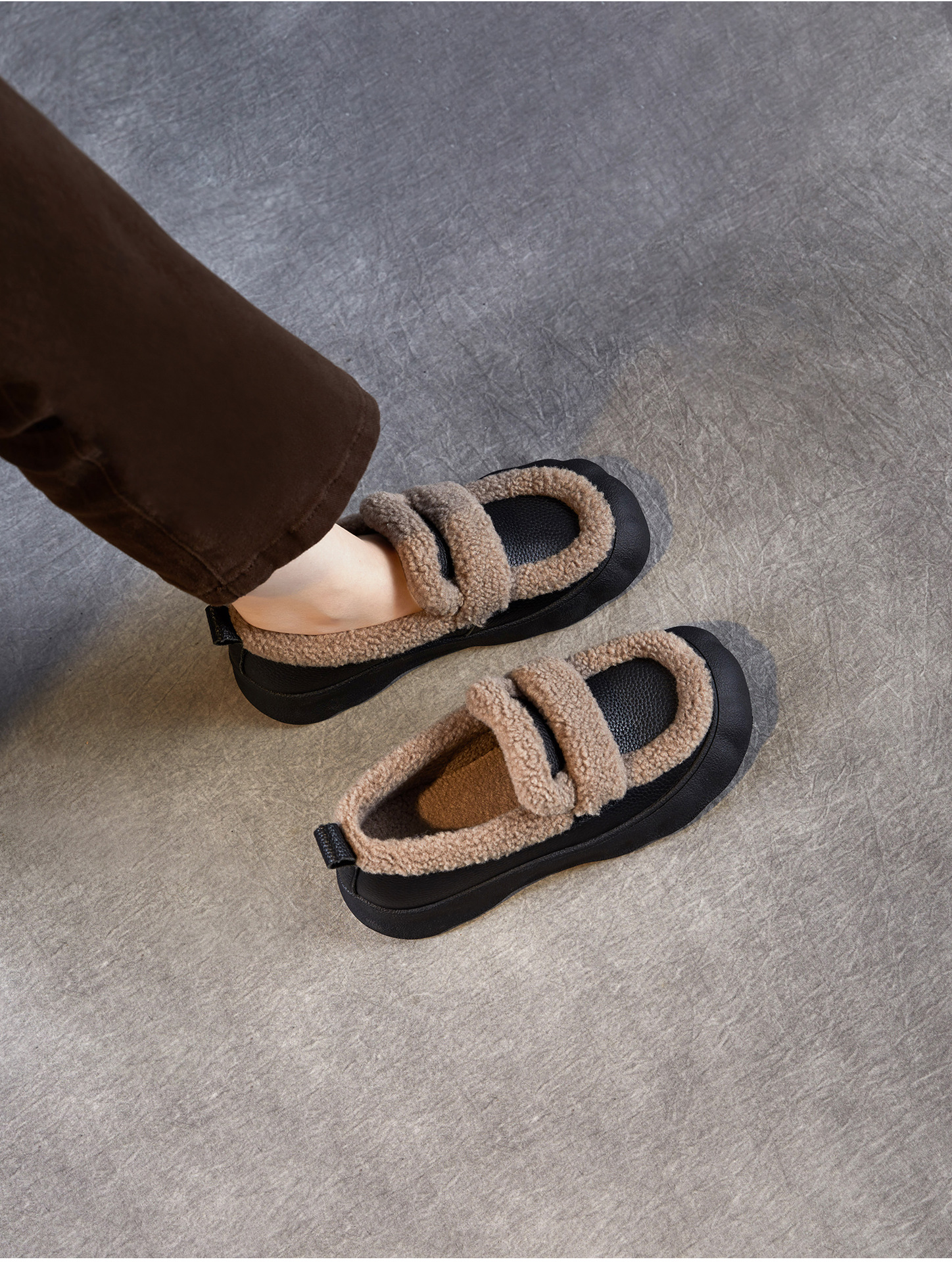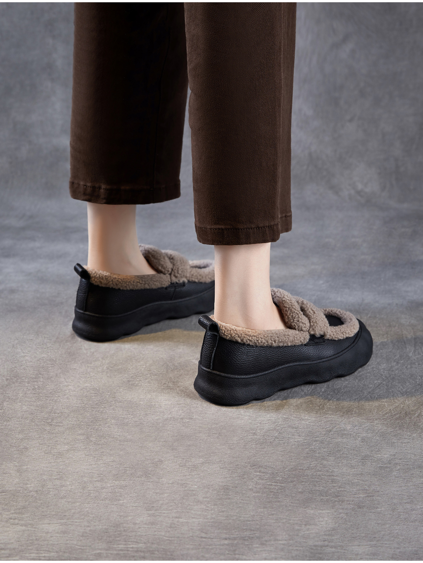 乐福鞋女一脚蹬懒人鞋,真皮复古百搭舒适软底休闲加绒保暖棉鞋ZM258720