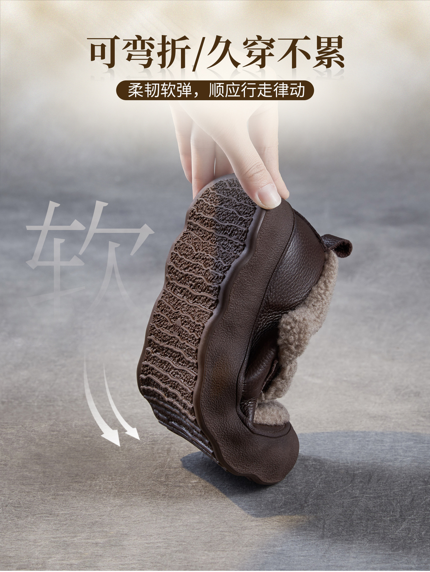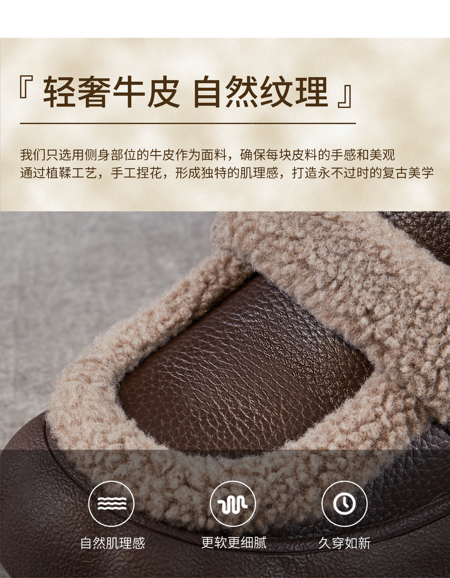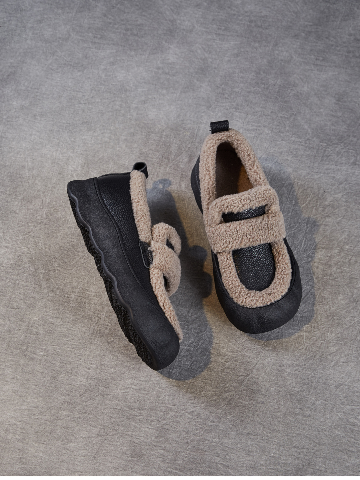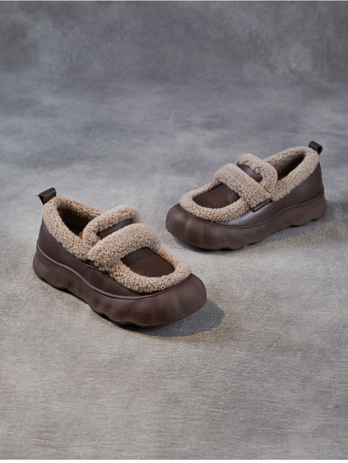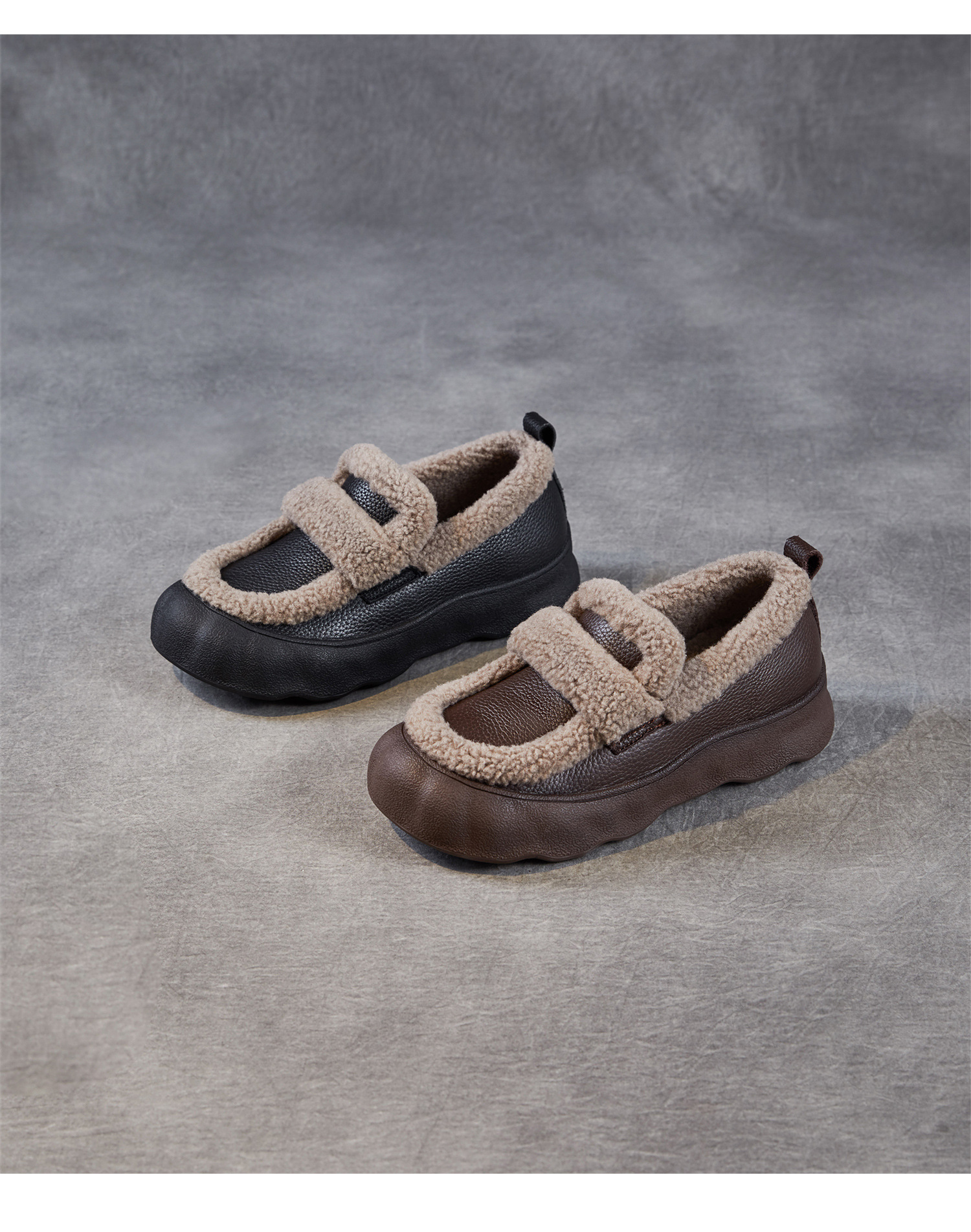 乐福鞋女一脚蹬懒人鞋,真皮复古百搭舒适软底休闲加绒保暖棉鞋ZM258720