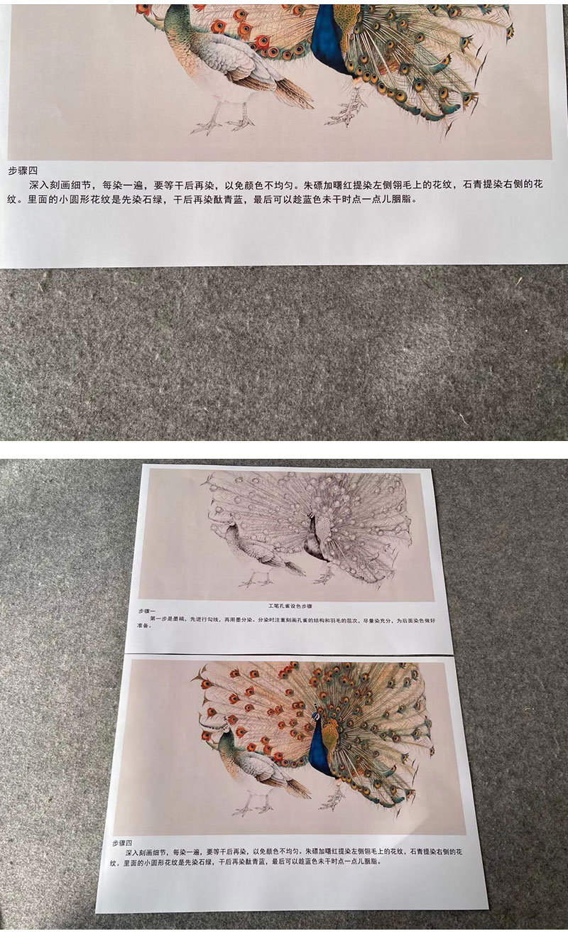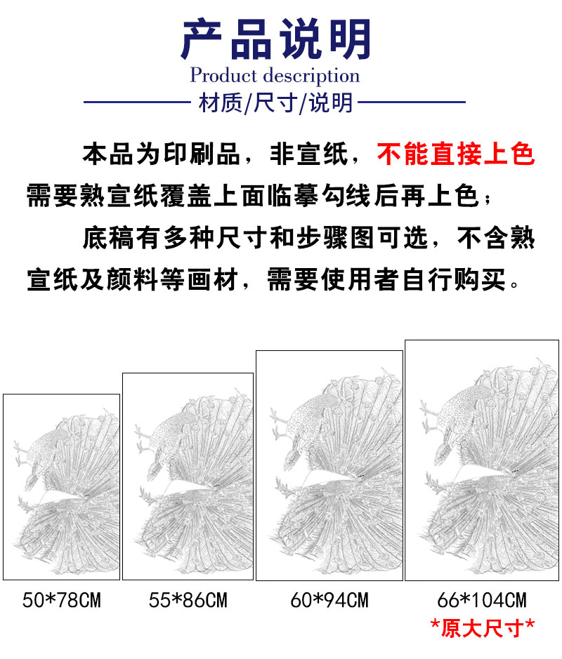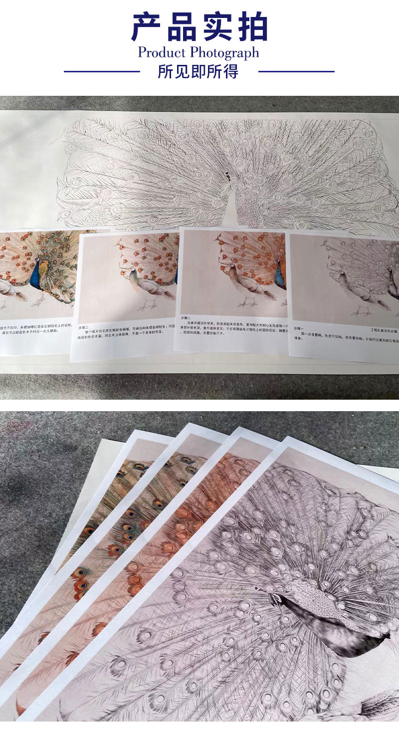 【有步骤】陈军四尺横幅工笔画白描底稿《孔雀开屏》孔雀初学者临摹动物线稿CJ38