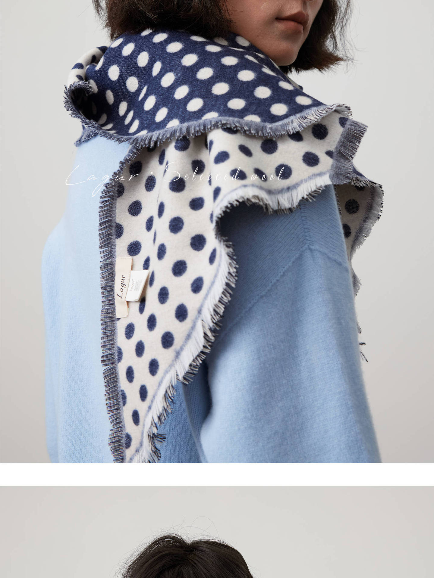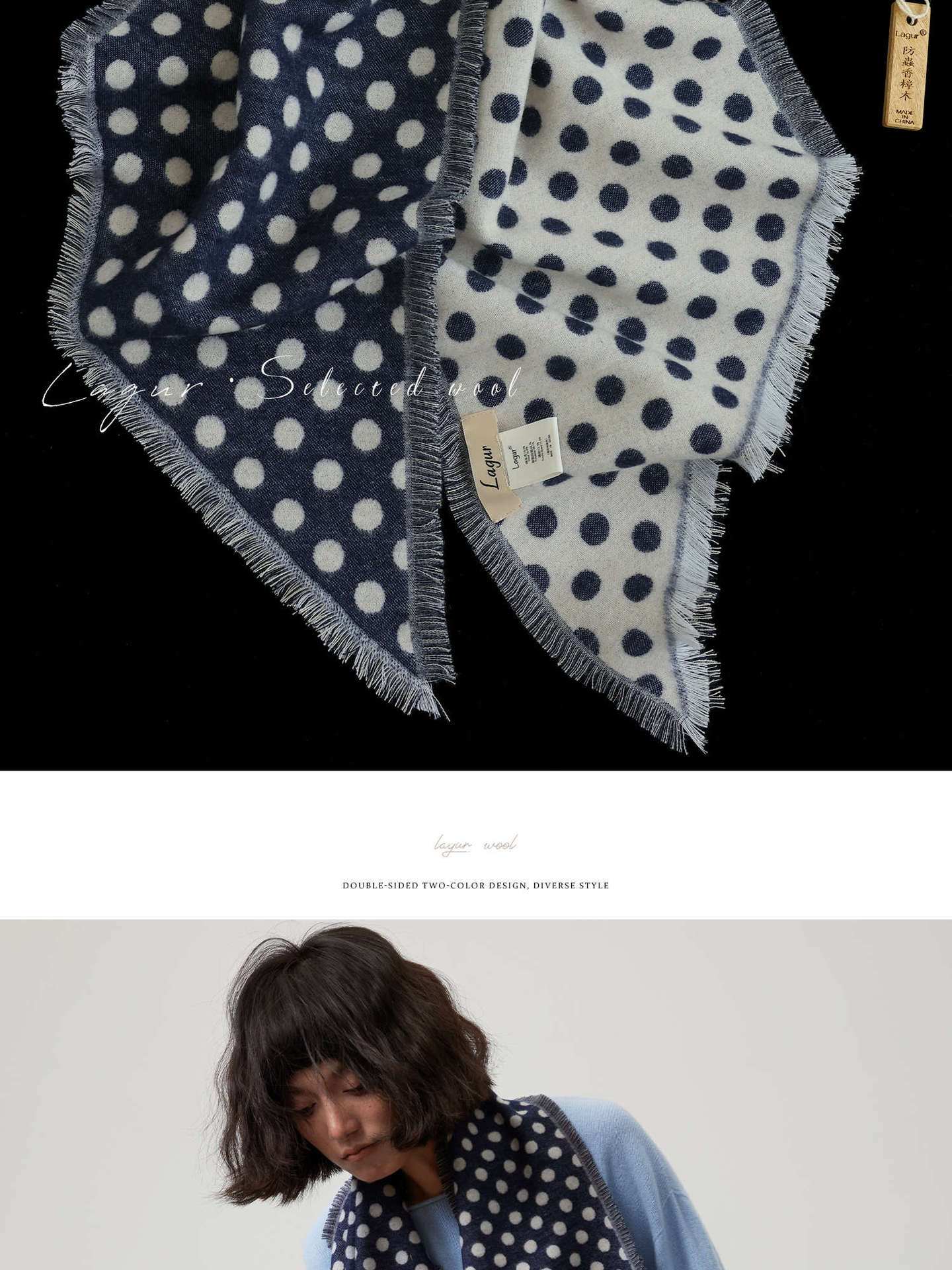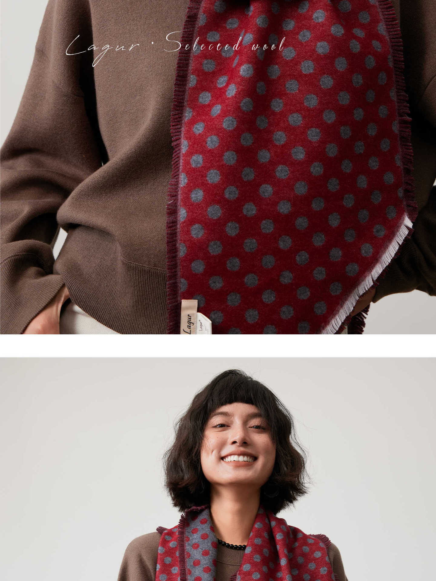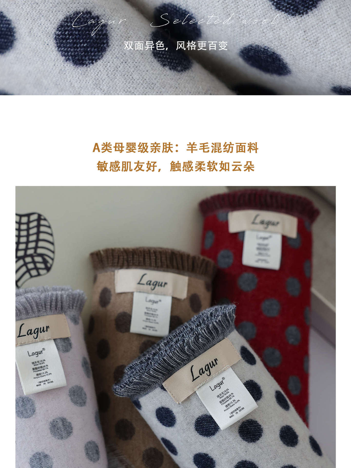 Lagur万年波点!双面加厚精纺羊毛围巾细窄长条女冬季高级感围脖