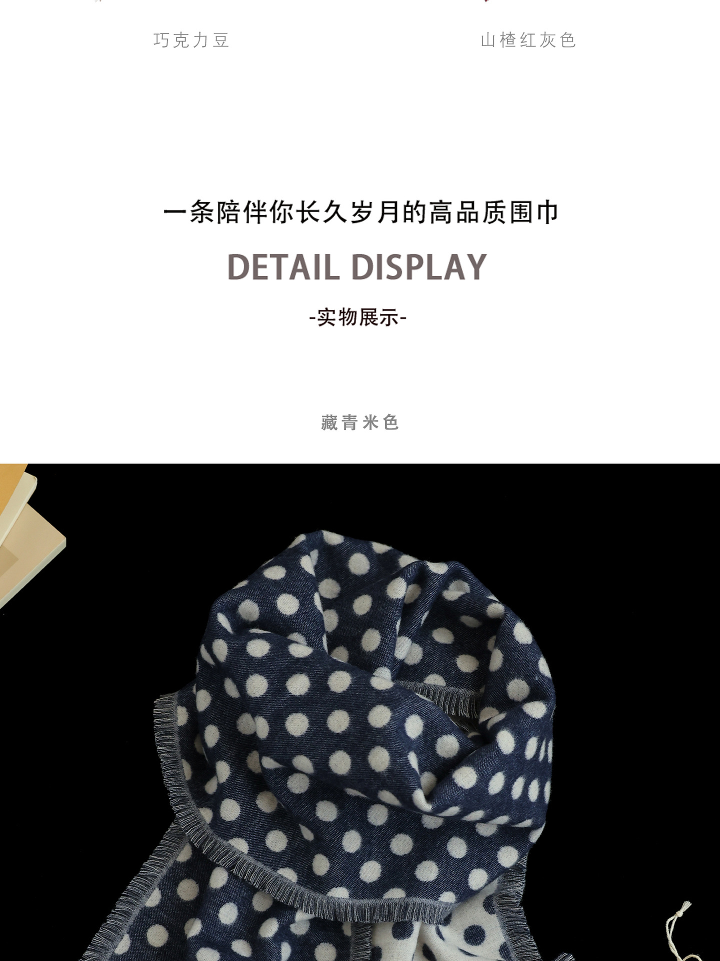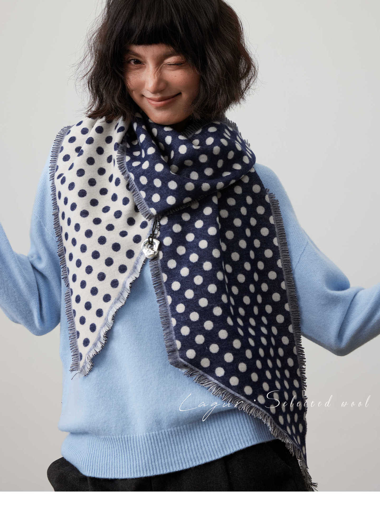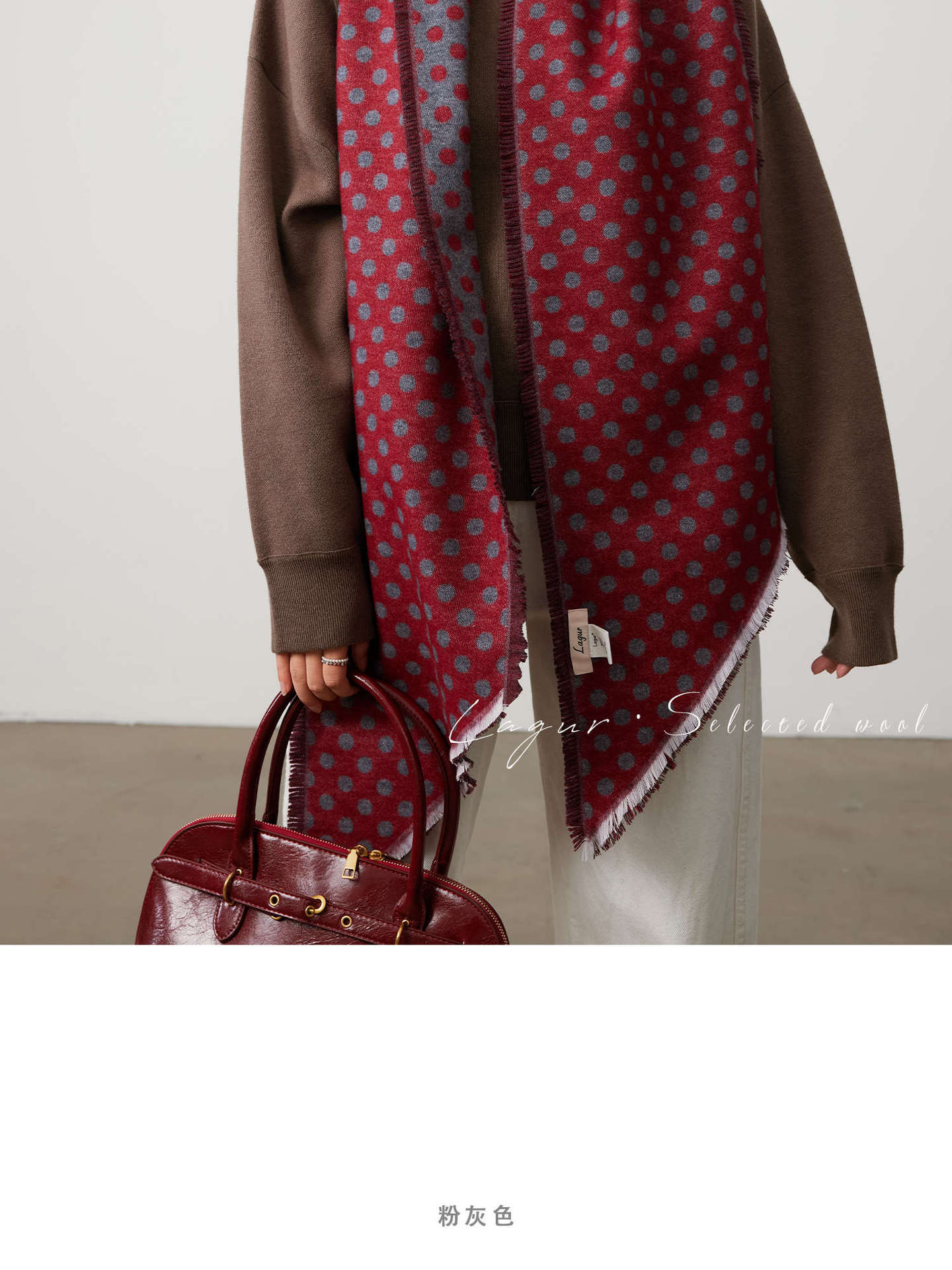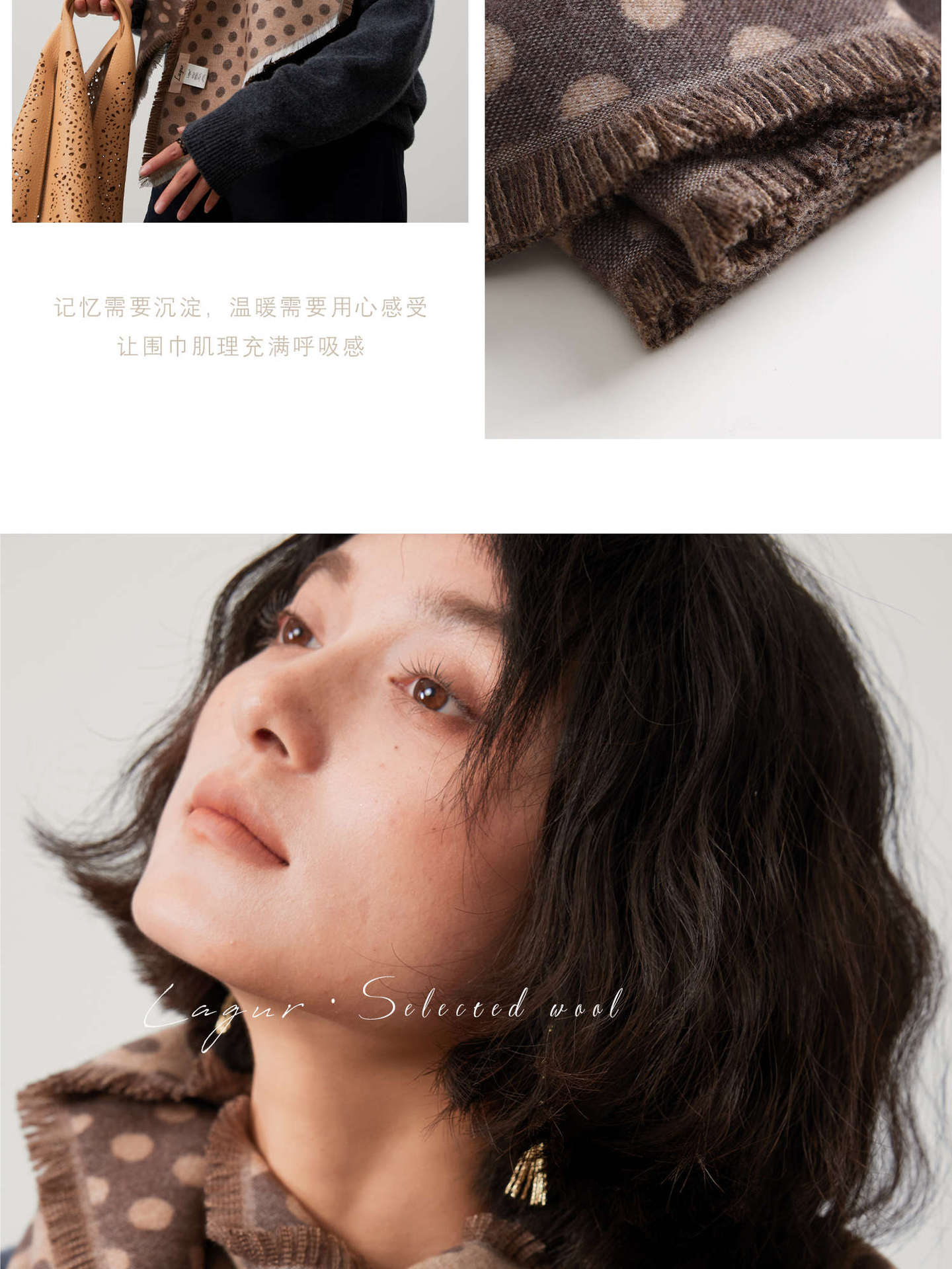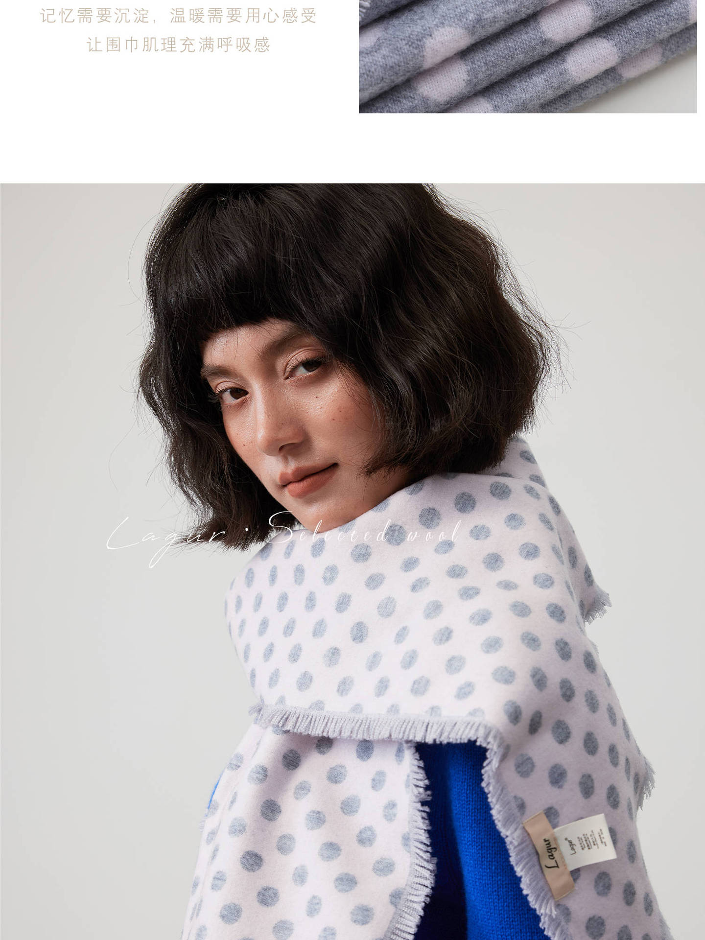 Lagur万年波点!双面加厚精纺羊毛围巾细窄长条女冬季高级感围脖
