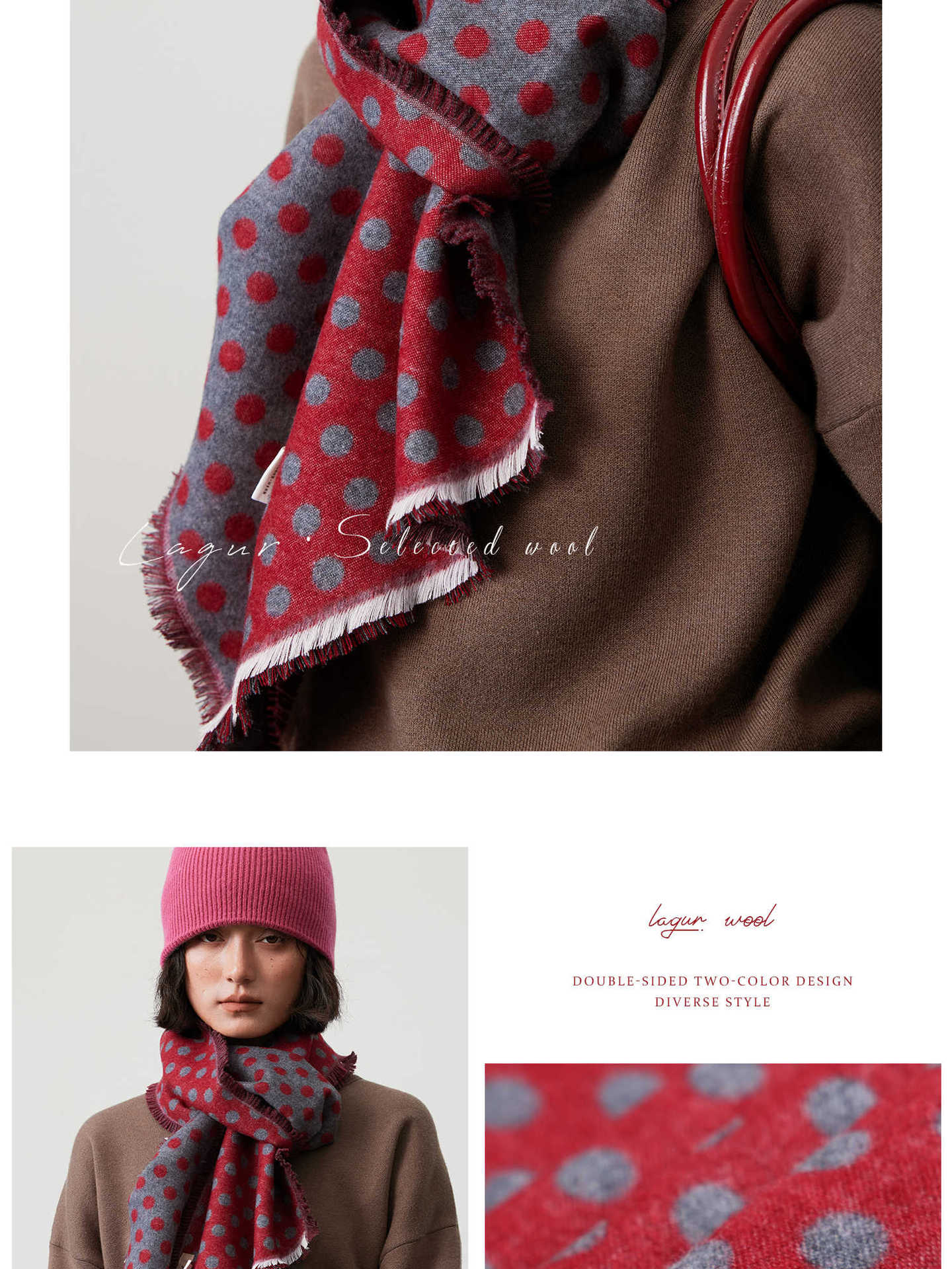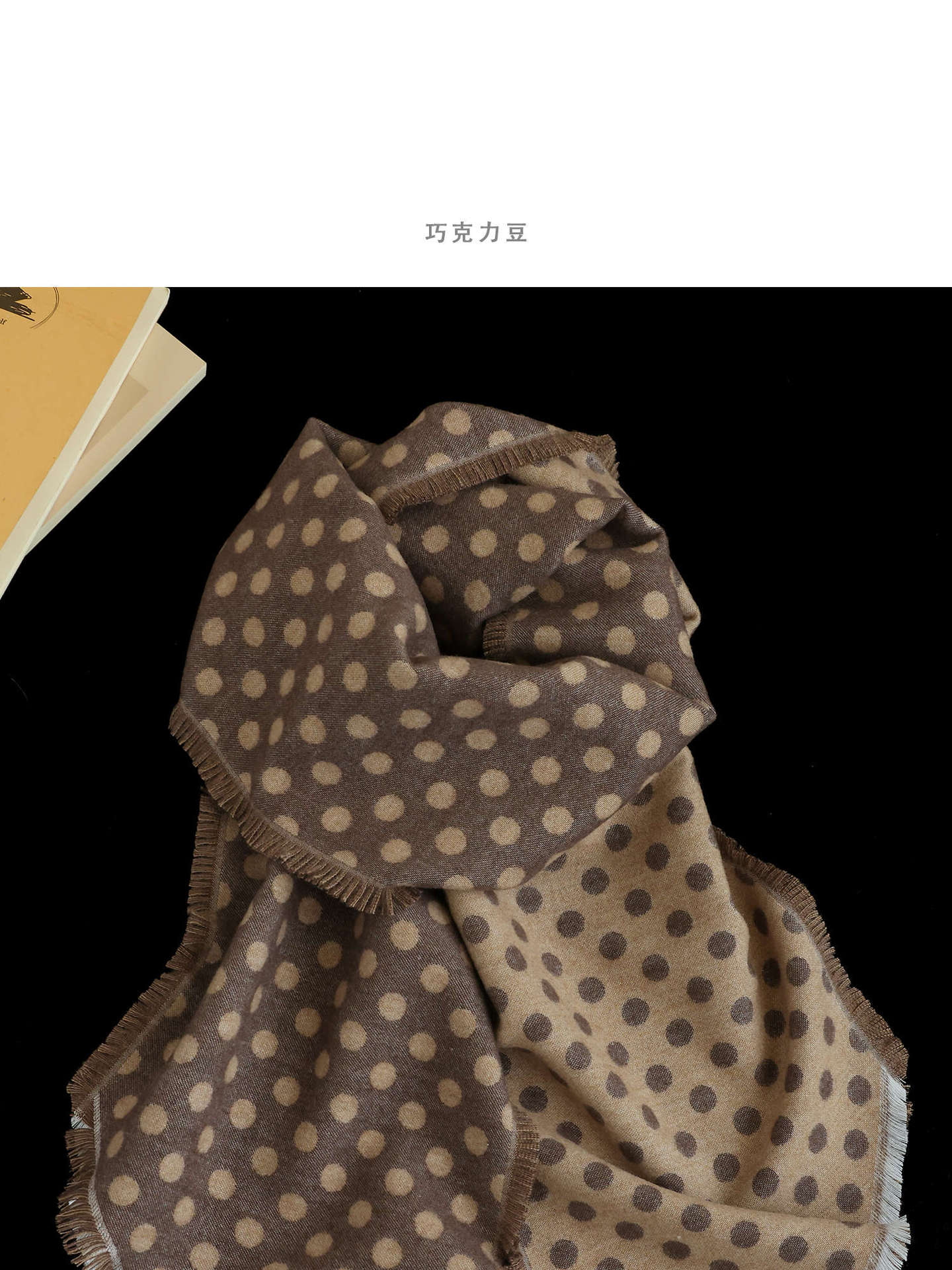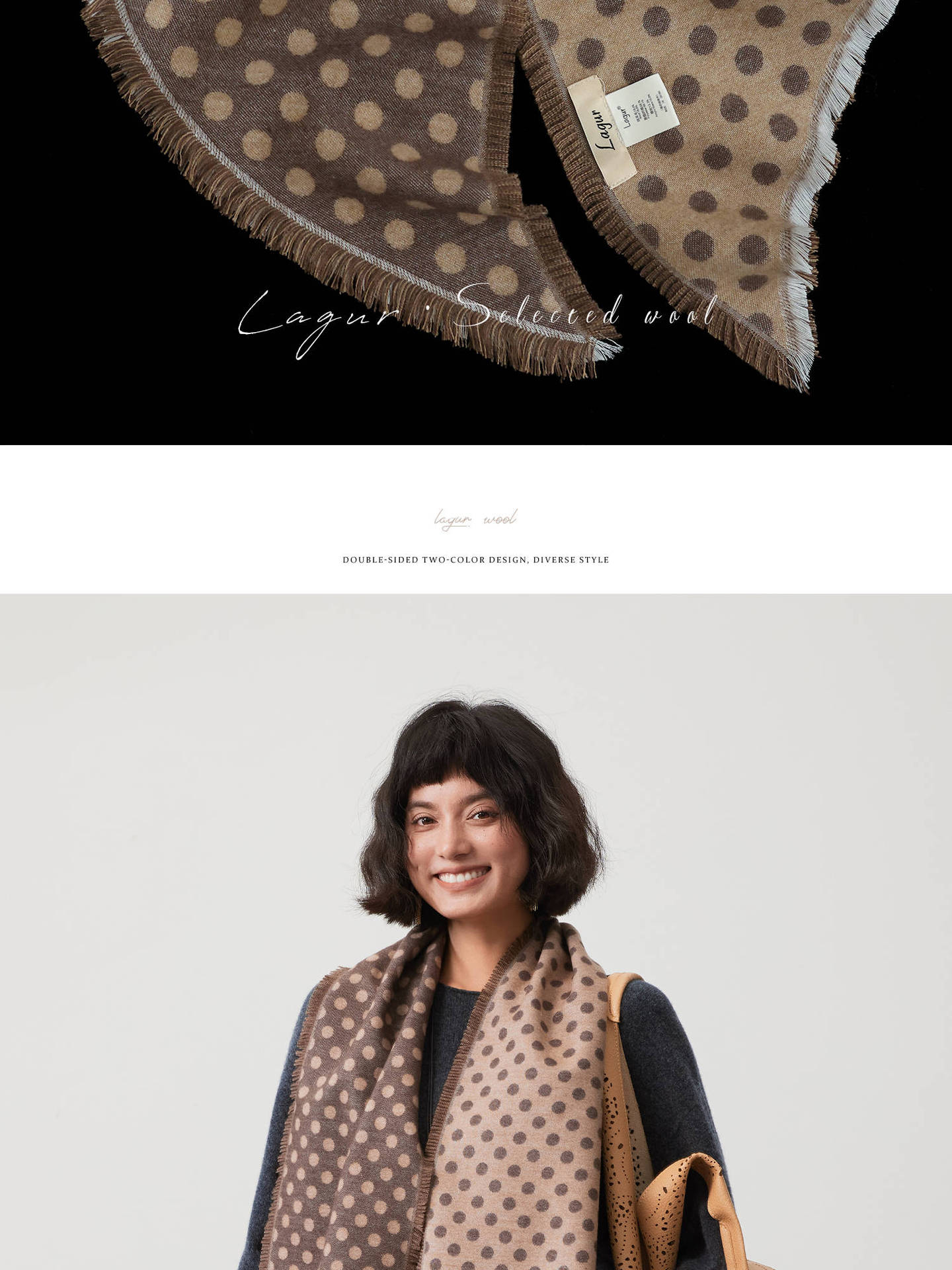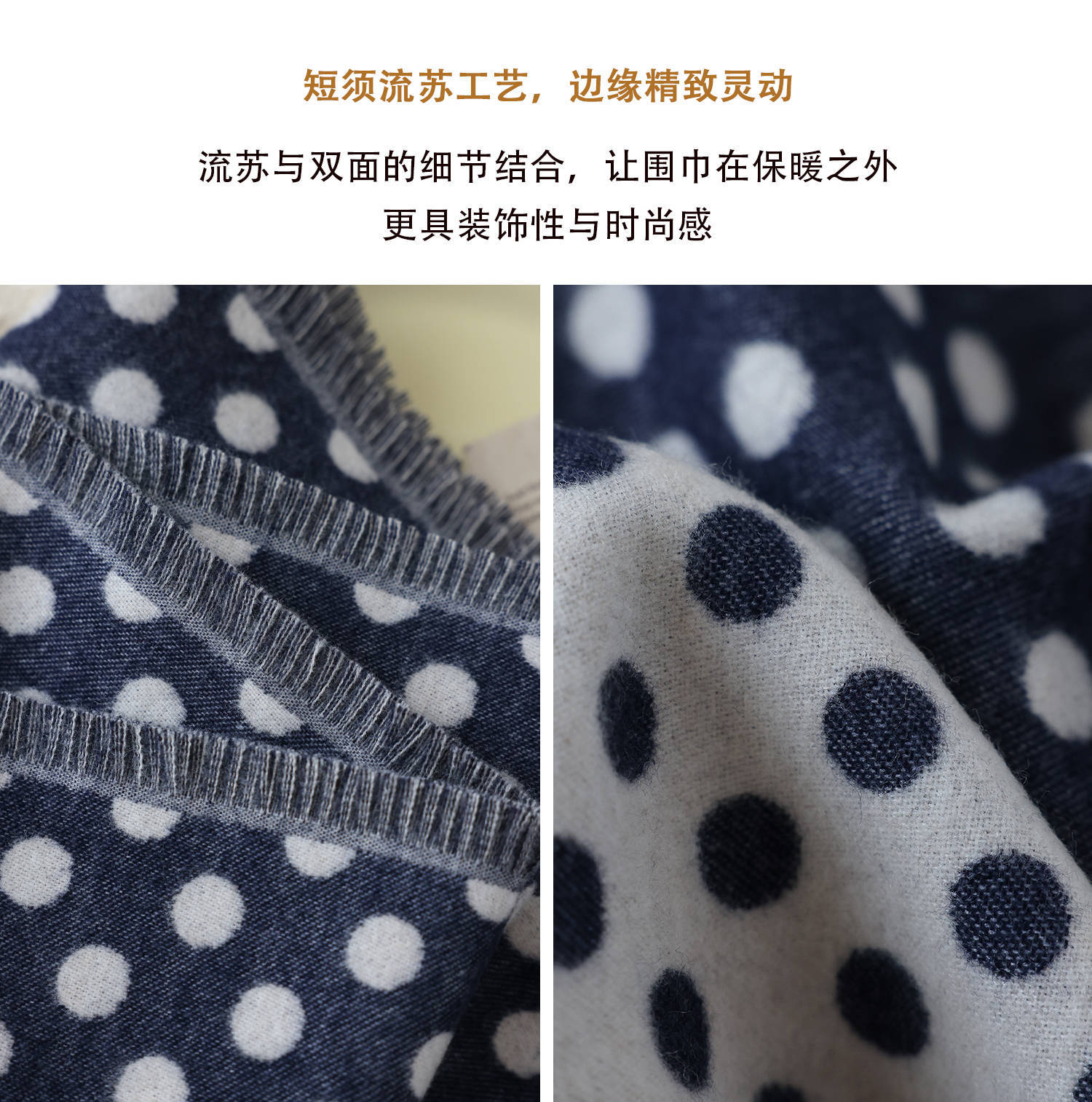 Lagur万年波点!双面加厚精纺羊毛围巾细窄长条女冬季高级感围脖