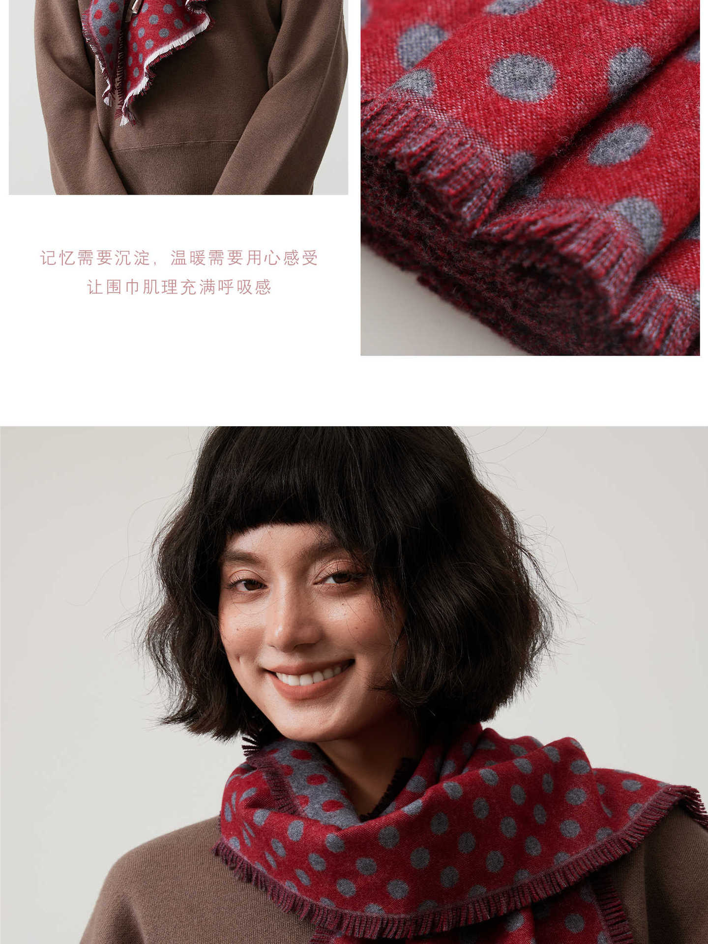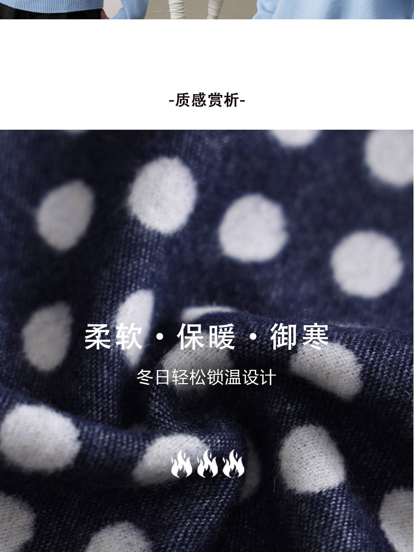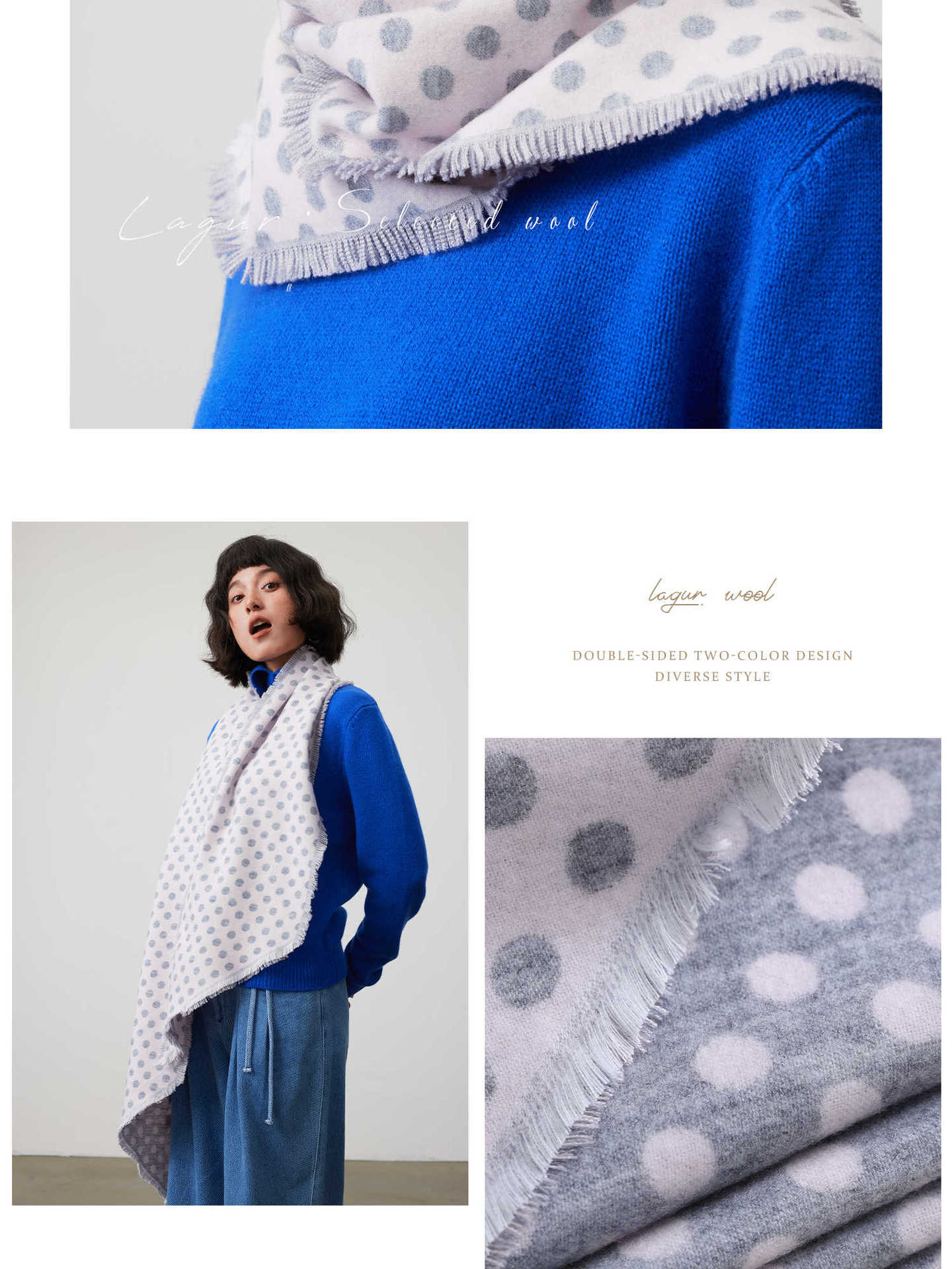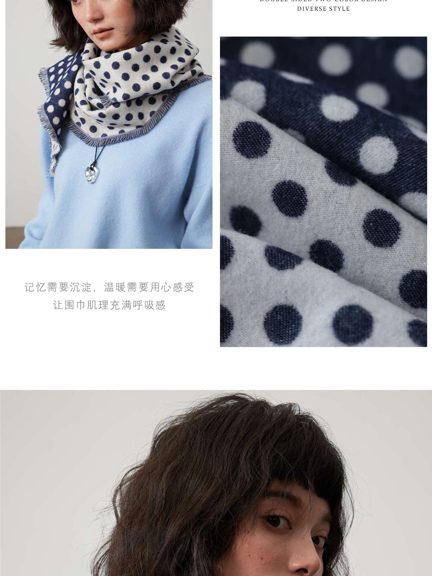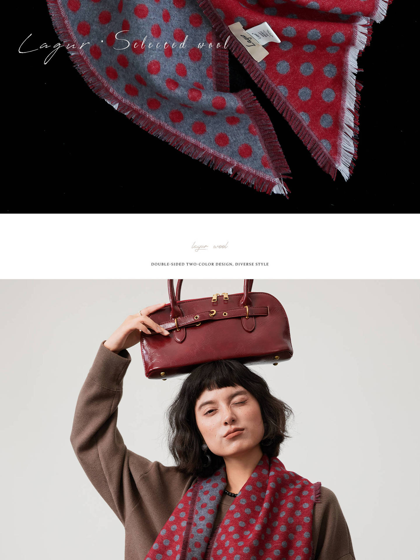 Lagur万年波点!双面加厚精纺羊毛围巾细窄长条女冬季高级感围脖