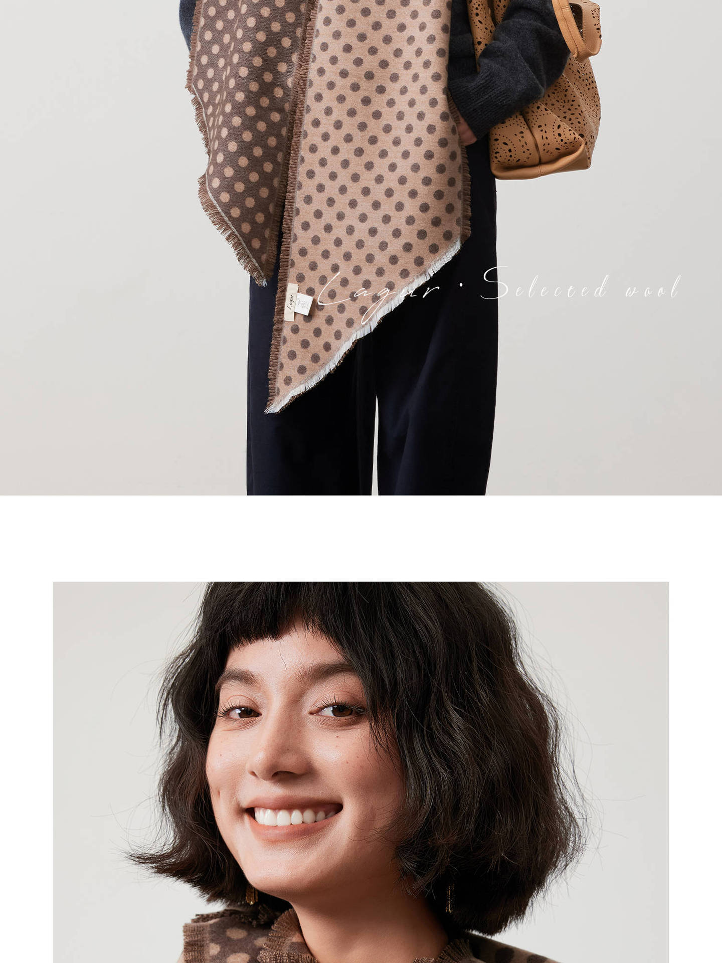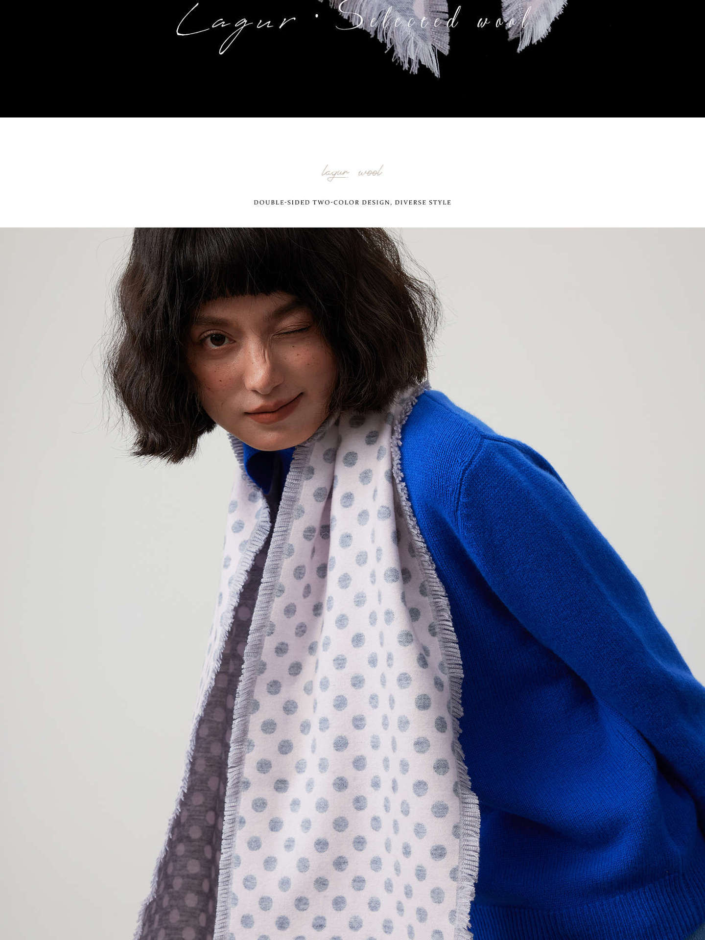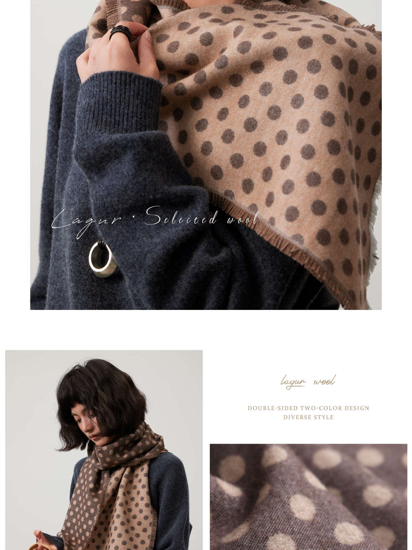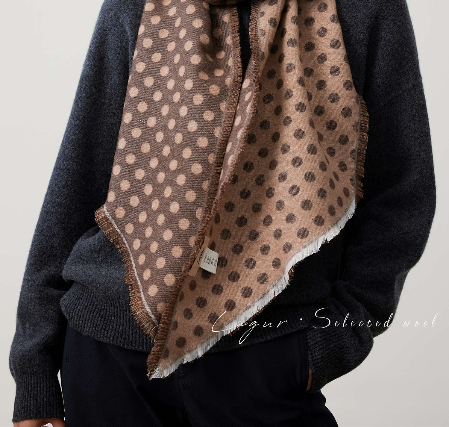 Lagur万年波点!双面加厚精纺羊毛围巾细窄长条女冬季高级感围脖