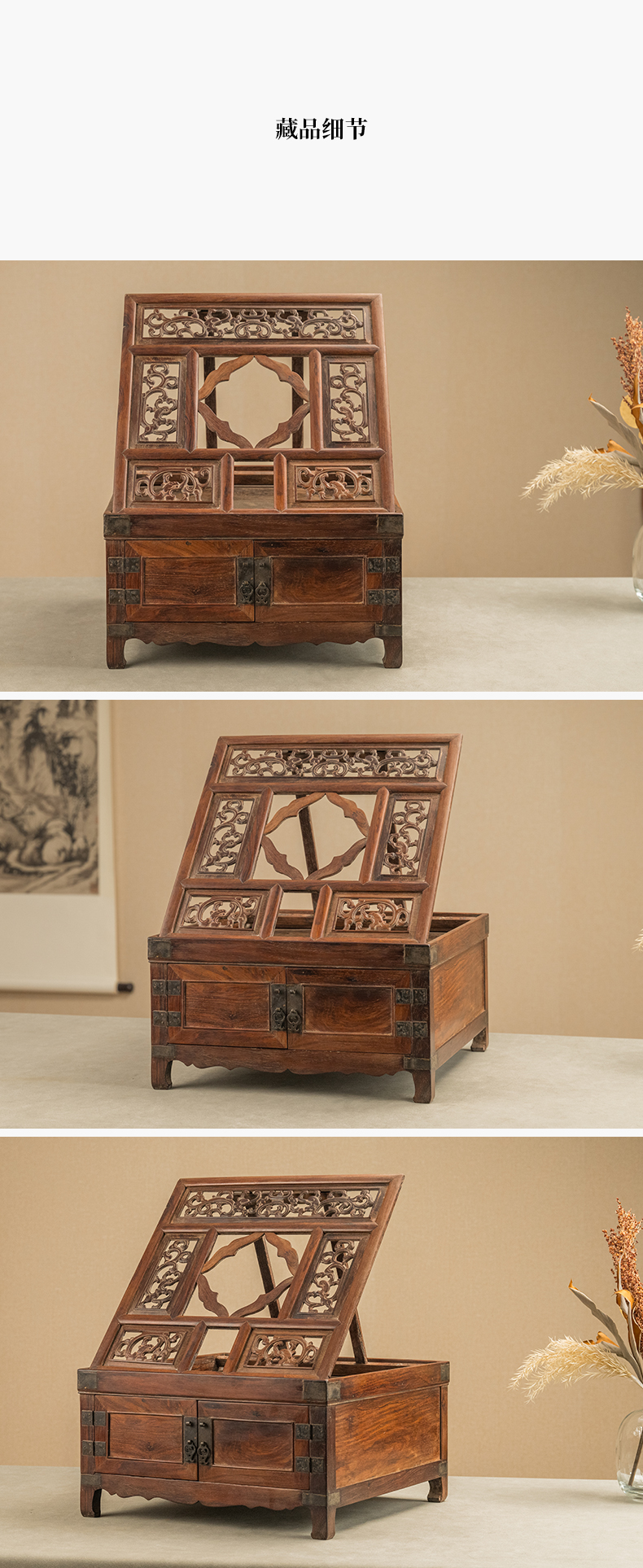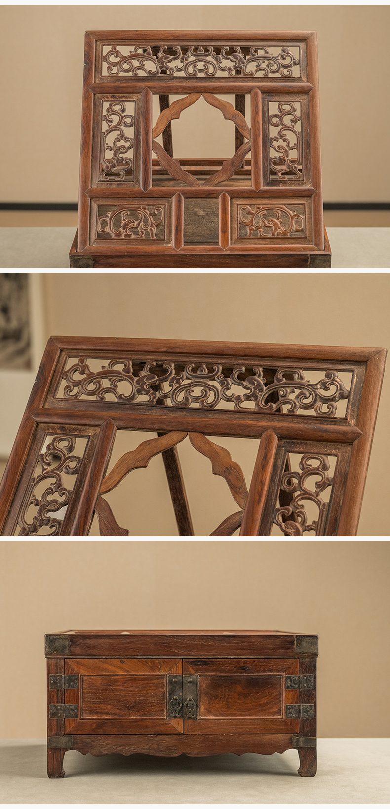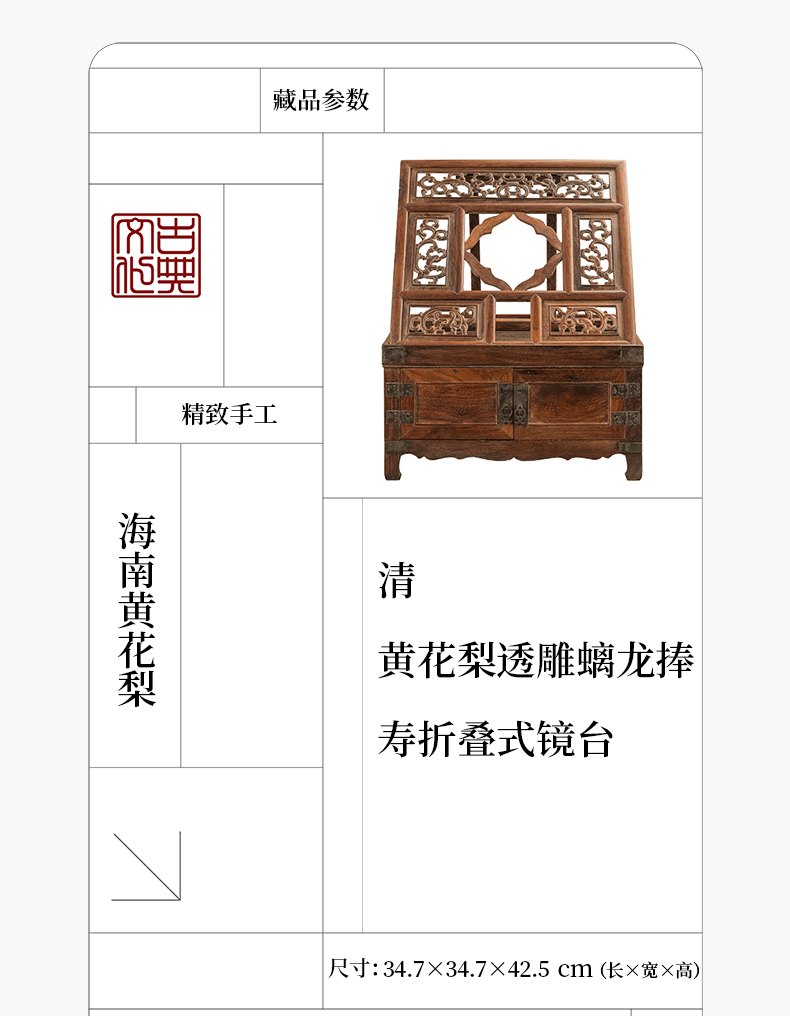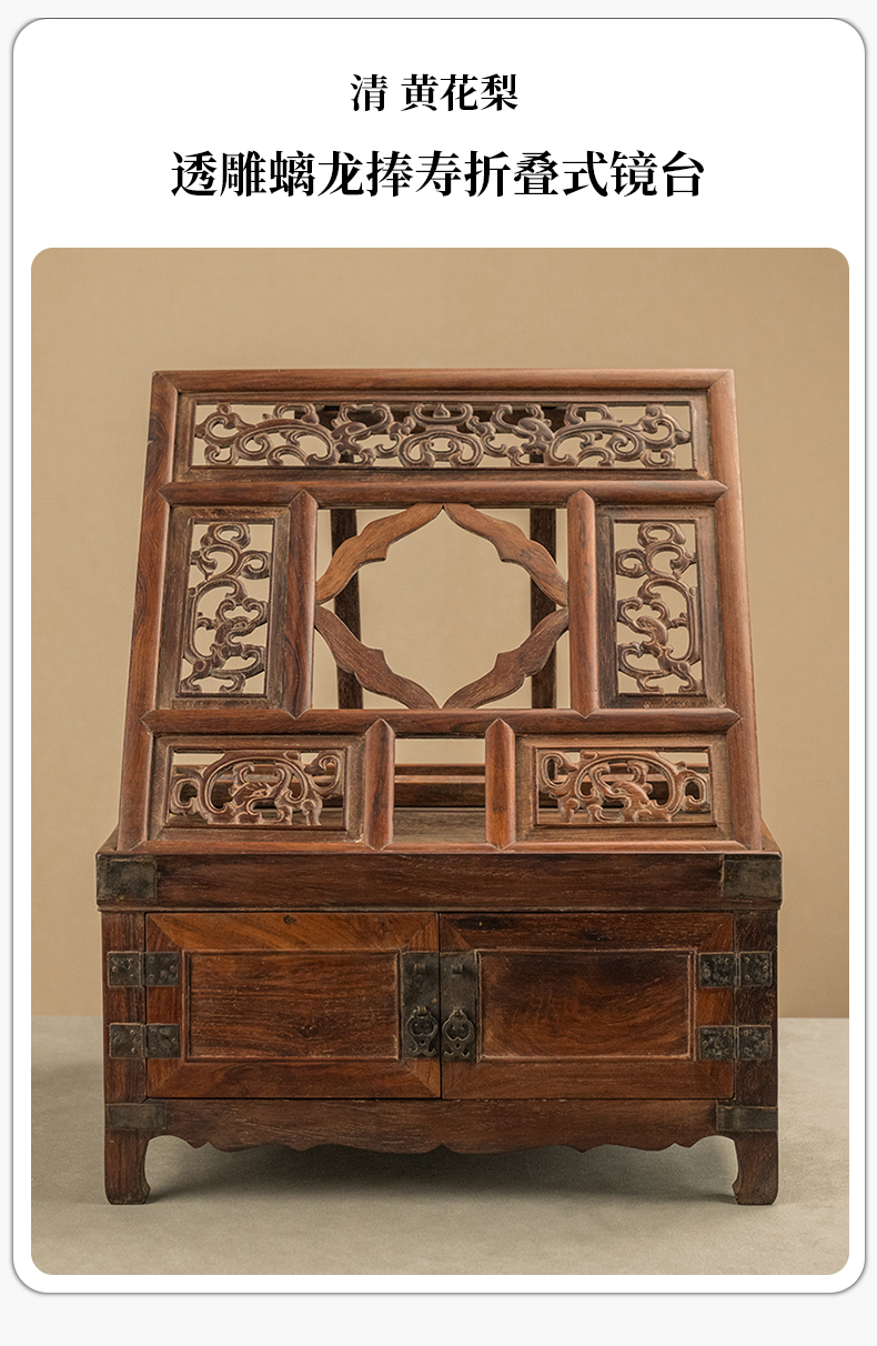 清 黄花梨透雕螭龙捧寿折叠式镜台