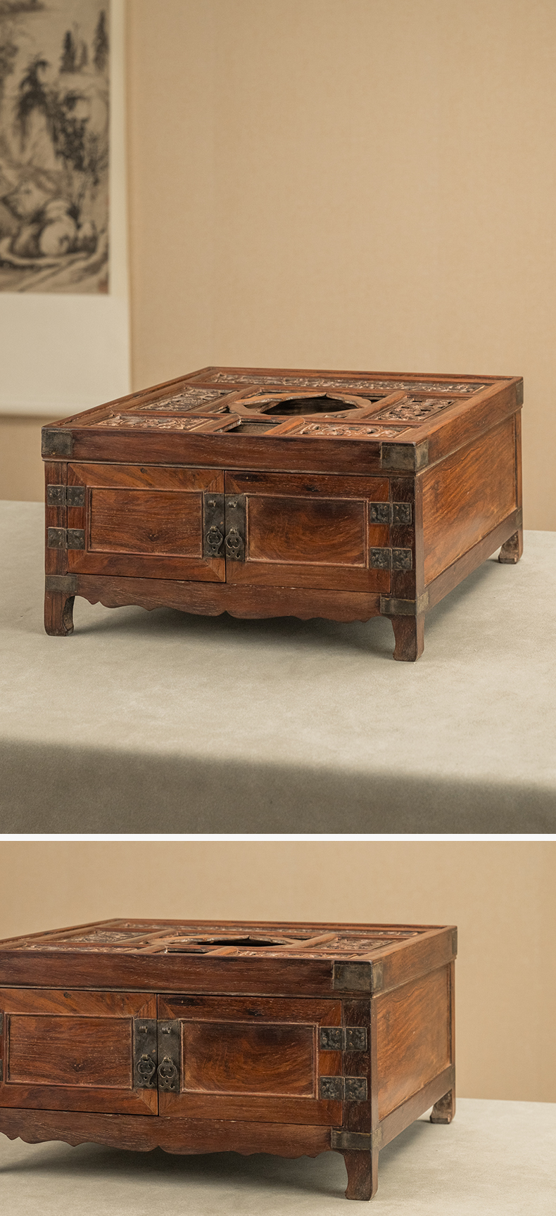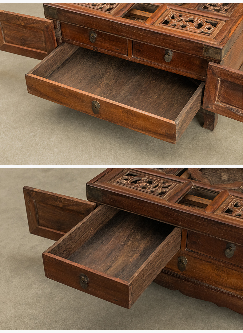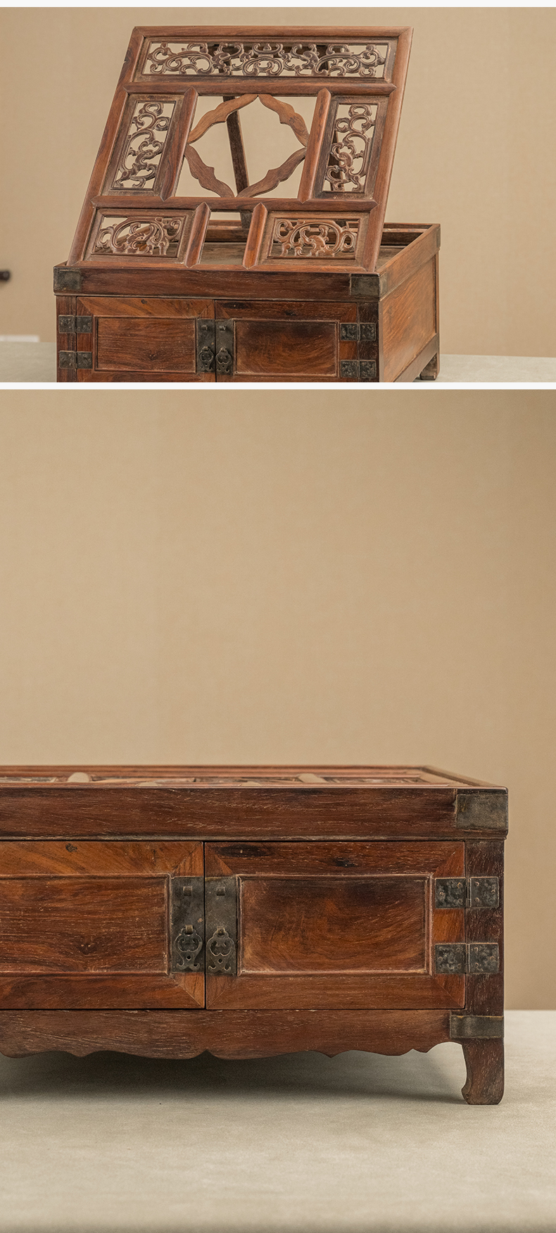 清 黄花梨透雕螭龙捧寿折叠式镜台