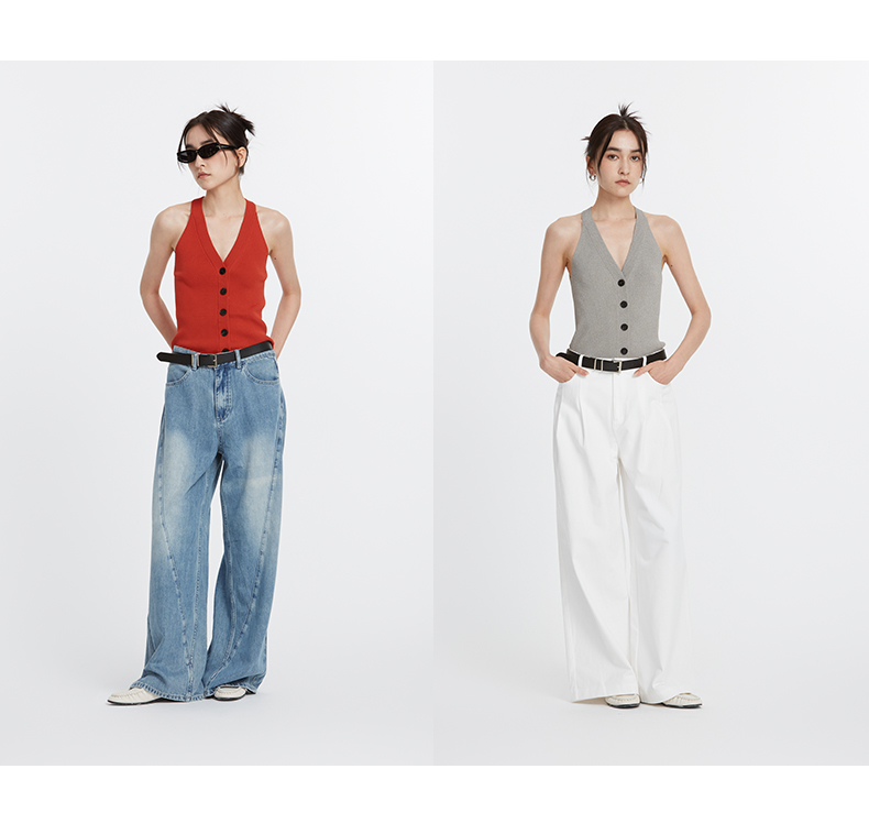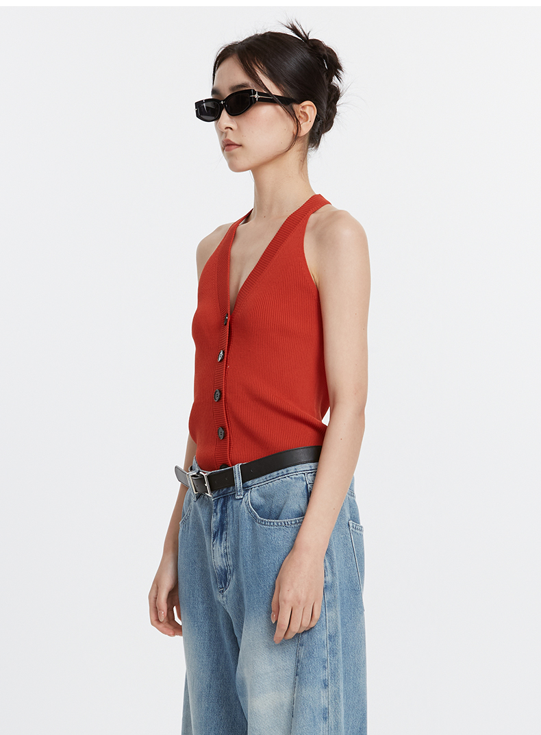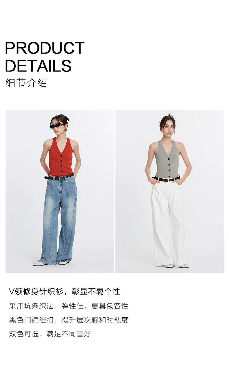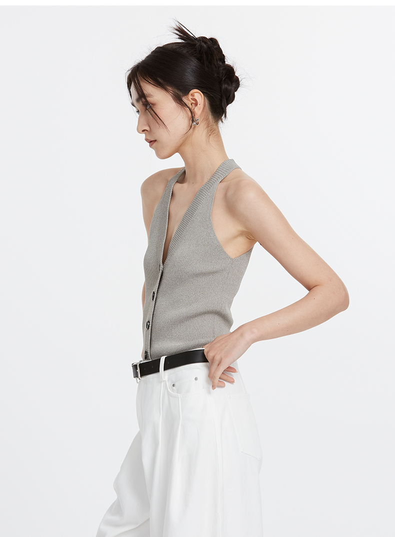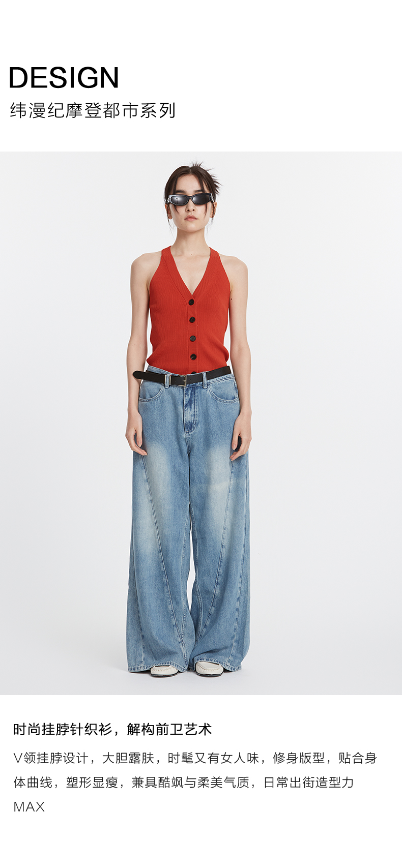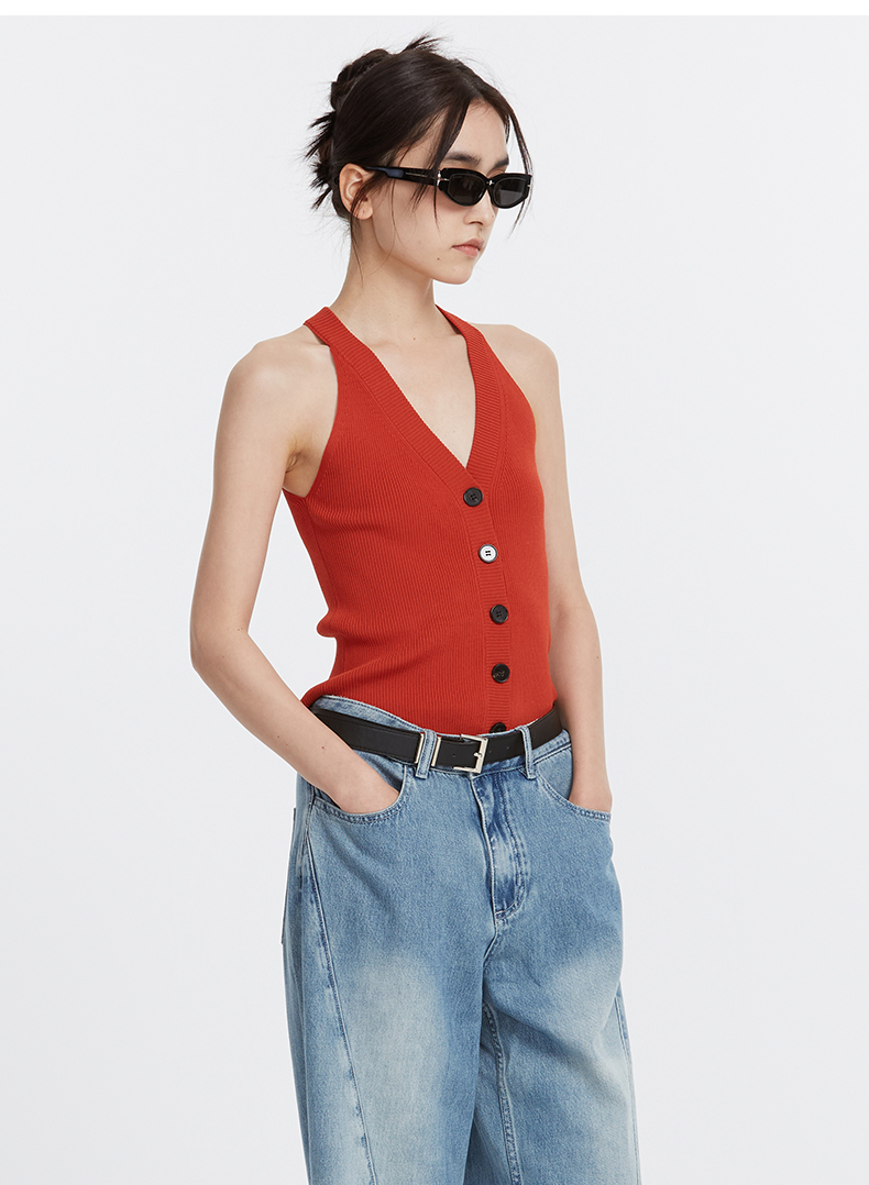 VIMAGE纬漫纪慵懒感休闲港风无袖挂脖针织吊带上衣2025夏季新款V2301933