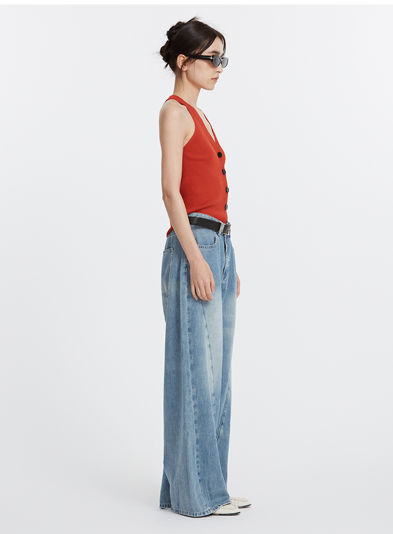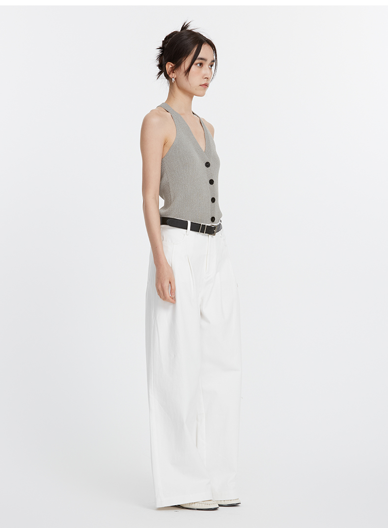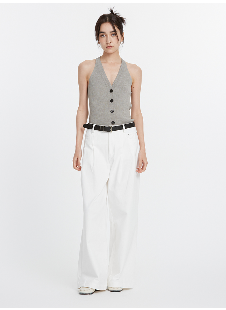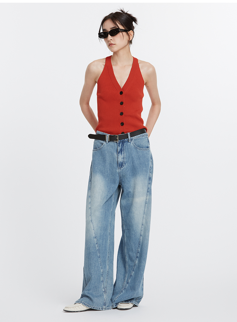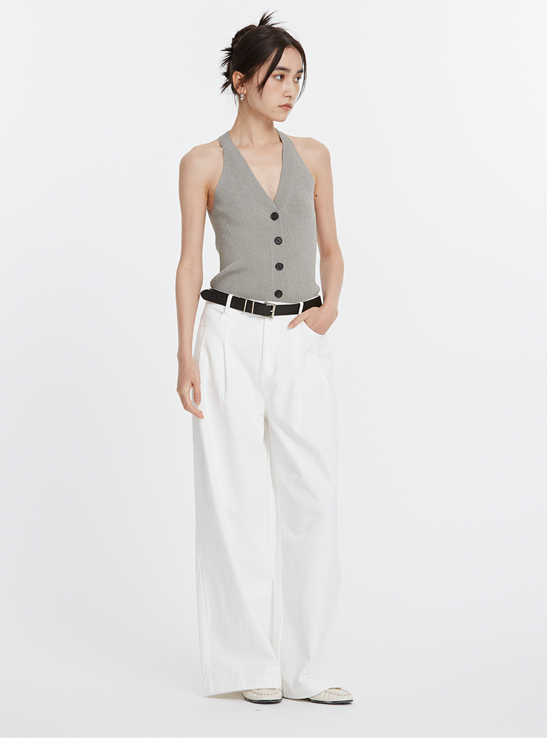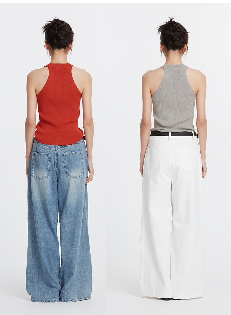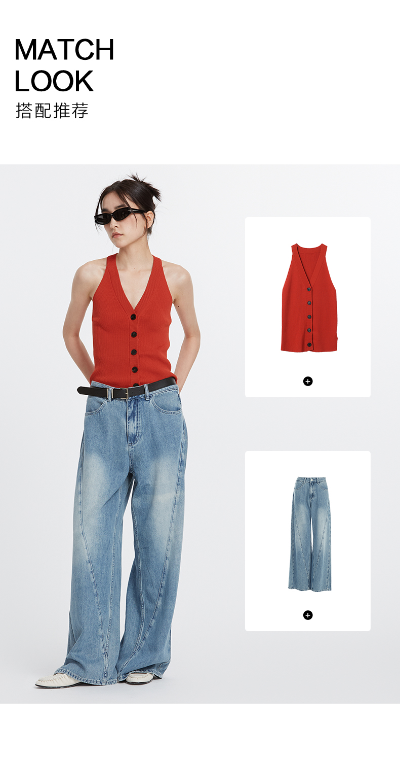 VIMAGE纬漫纪慵懒感休闲港风无袖挂脖针织吊带上衣2025夏季新款V2301933