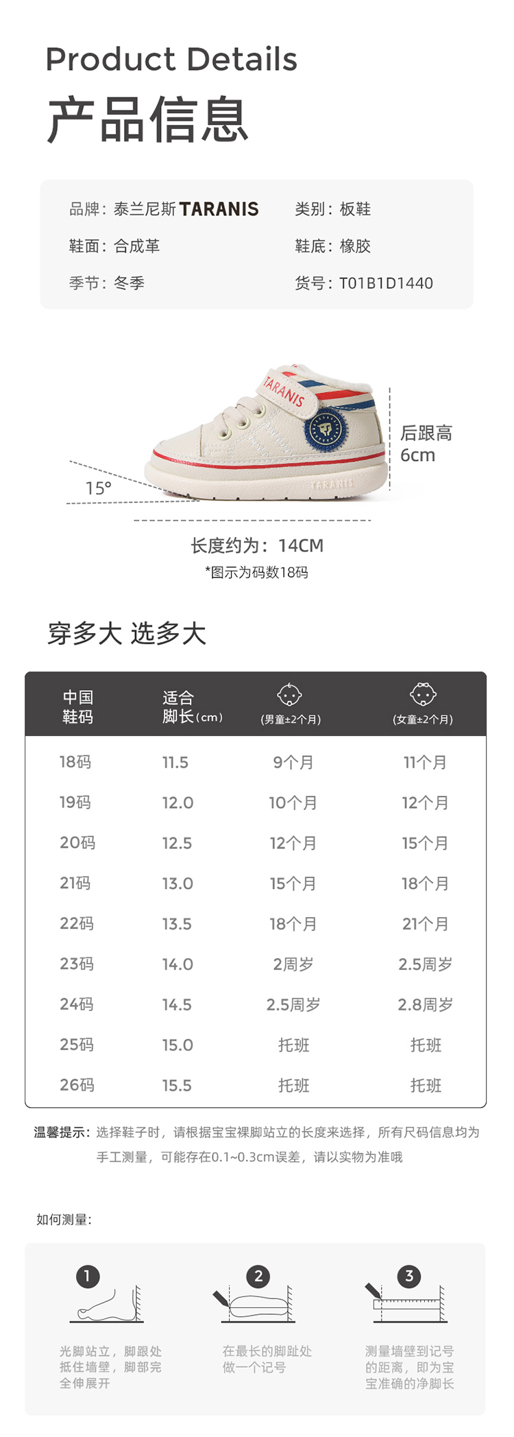【泰兰尼斯】婴童段加绒保暖学步鞋T01B1D1440