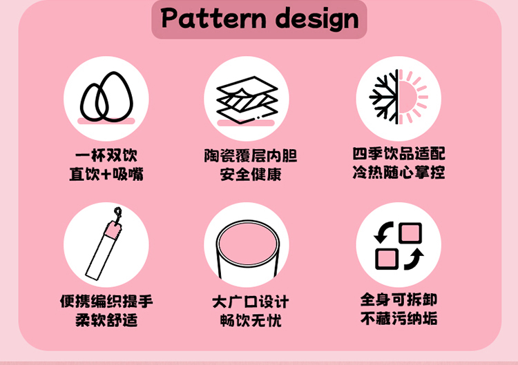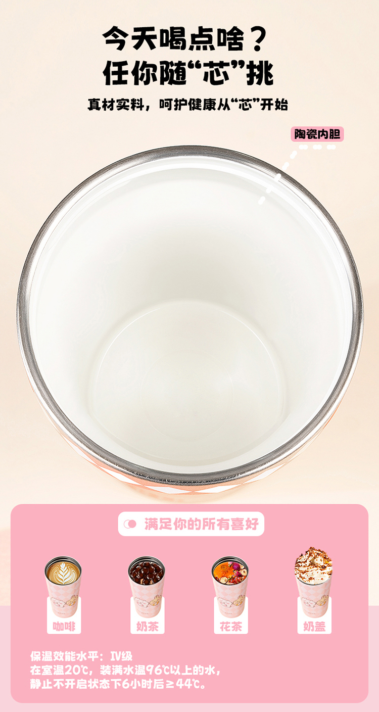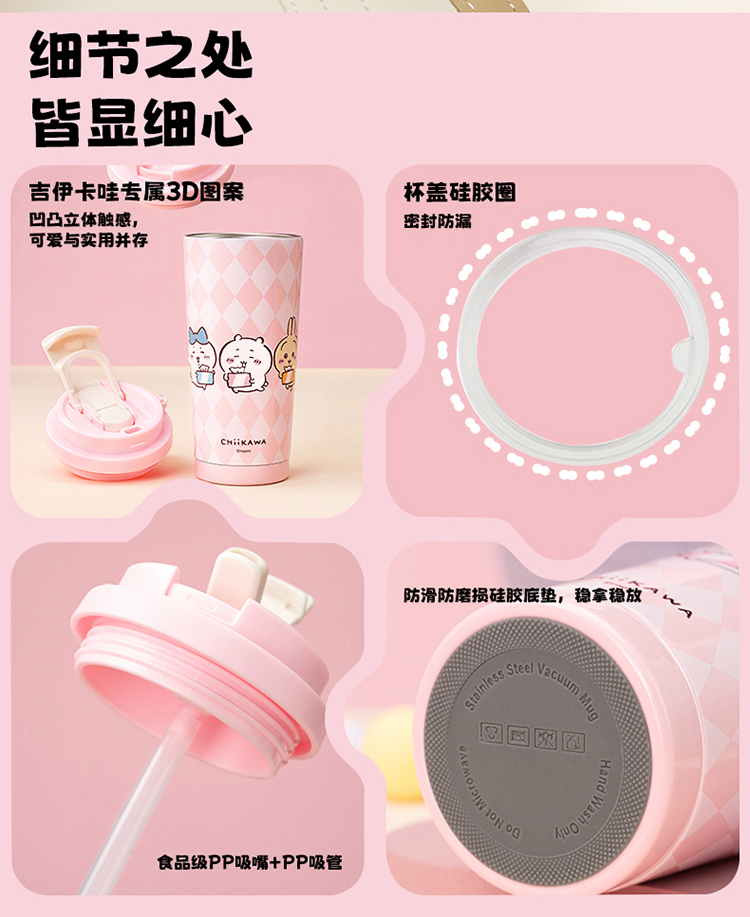 摩登主妇吉伊卡哇咖啡保温杯陶瓷内胆吸管杯子生日礼物不锈钢水杯